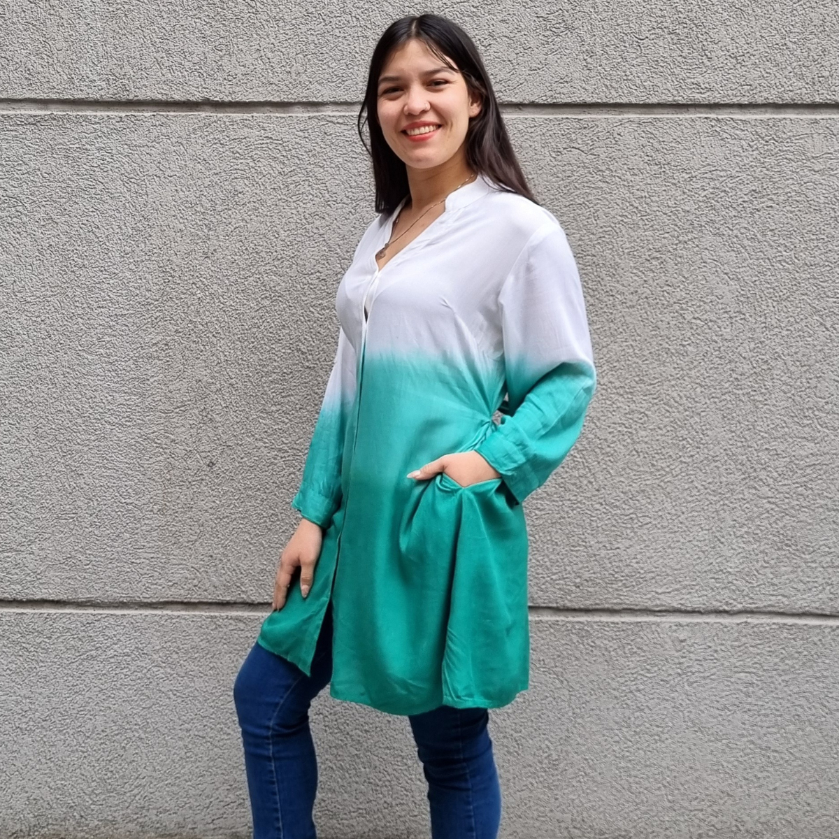 CAMISOLA ABOTONADA ESTAMPADA/DEGRADE MANGA 3/4 AJUSTABLE