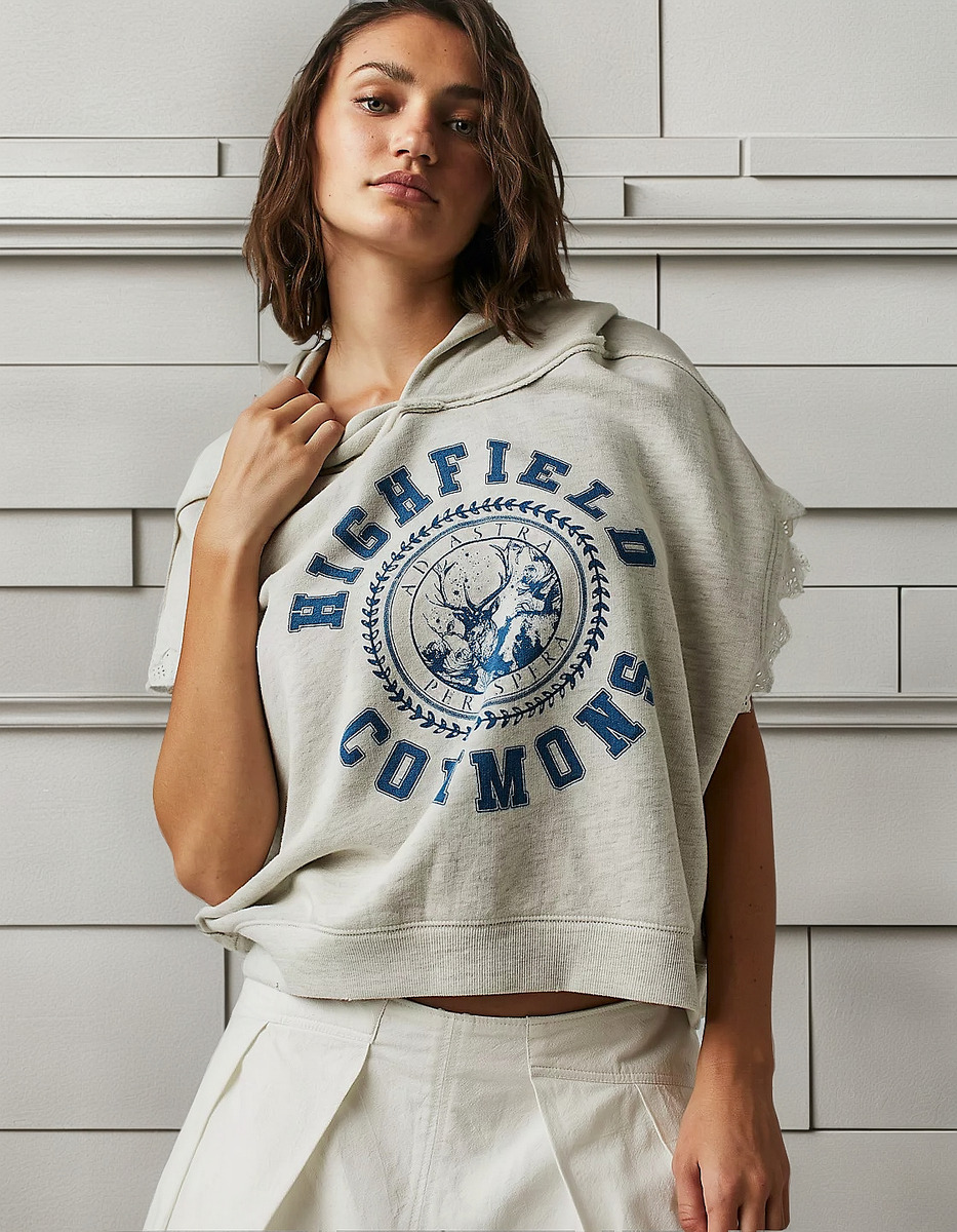 De la MARCA: FREE PEOPLE. El estilo vintage de ésta blusa combina con todo. Presenta un corte holgado y relajado con un gráfico desgastado en la parte delantera y mangas cortas con encaje para un toque especial.