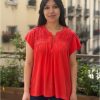 BLUSA MANGA CORTA DETALLE BORDADO CUELLO CORDON