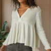 Blusa waffle peplum top TALLE GRANDE con plizas Escote en V – Manga larga
