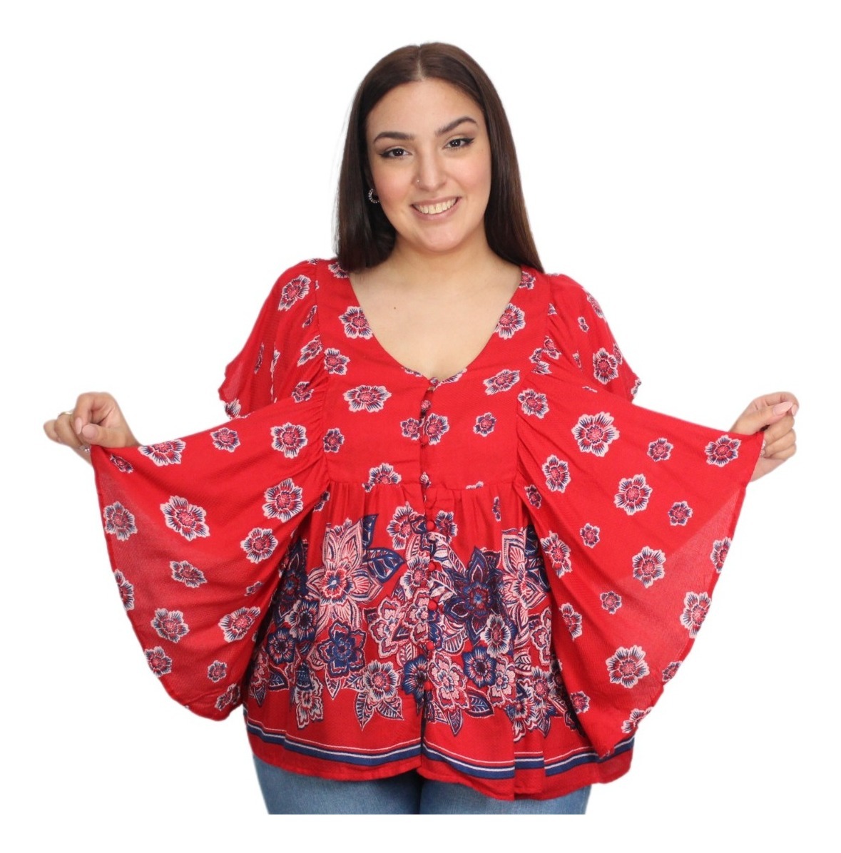 Blusa abotonada con volados.