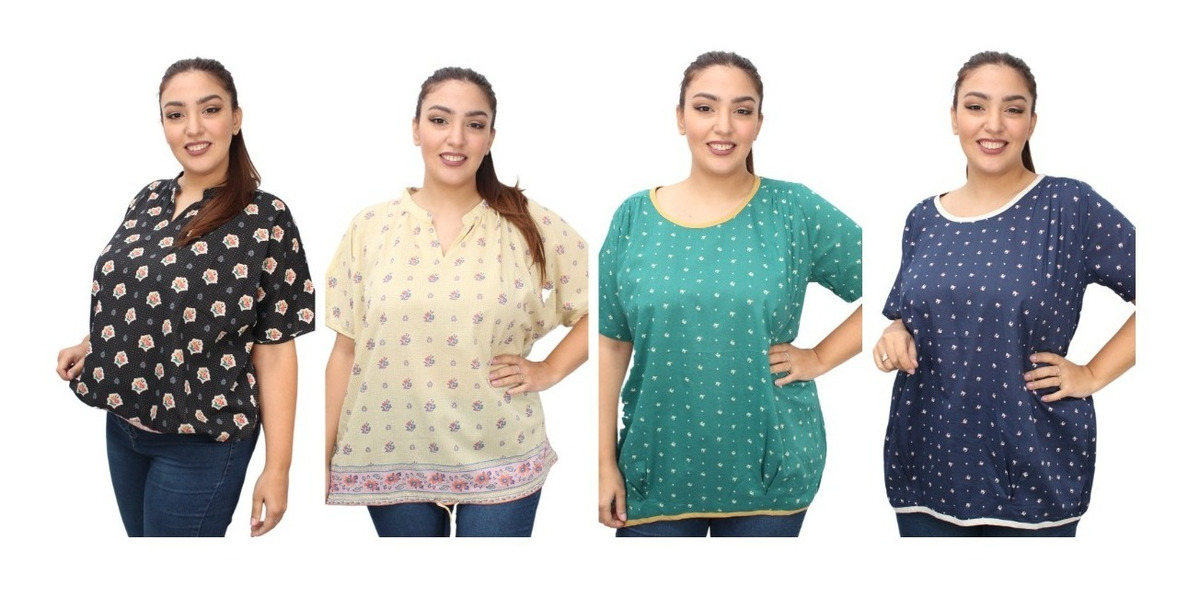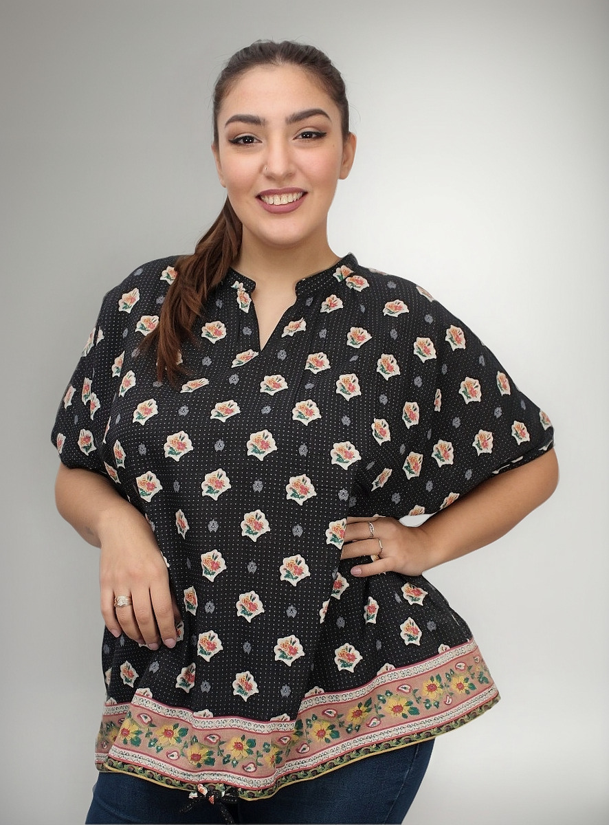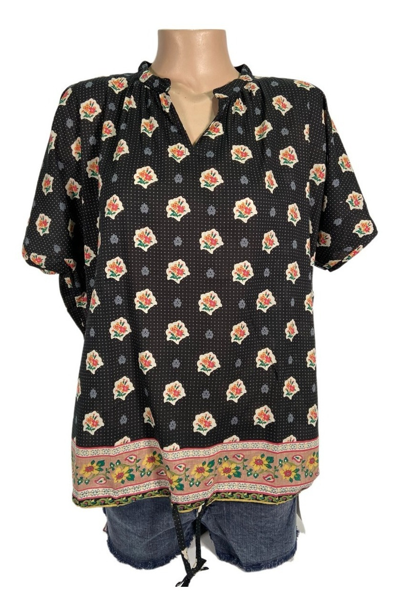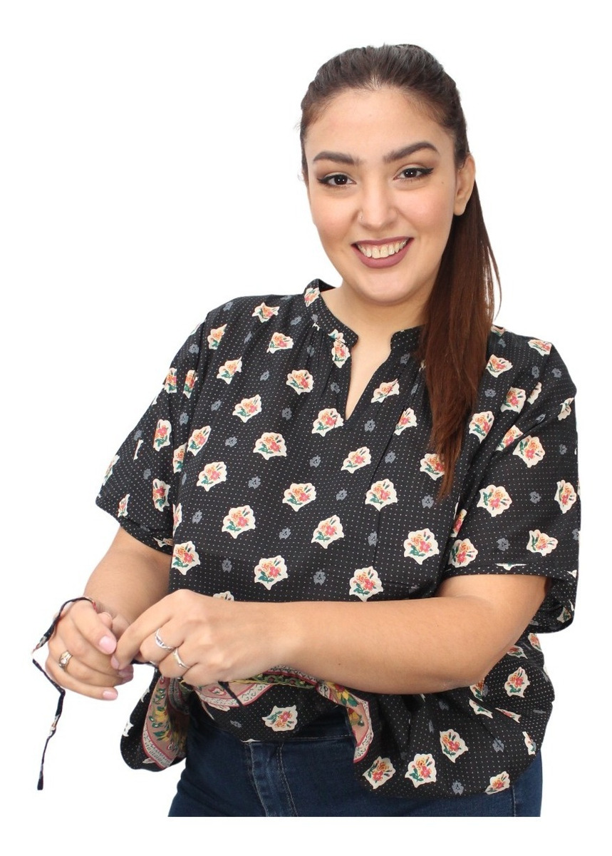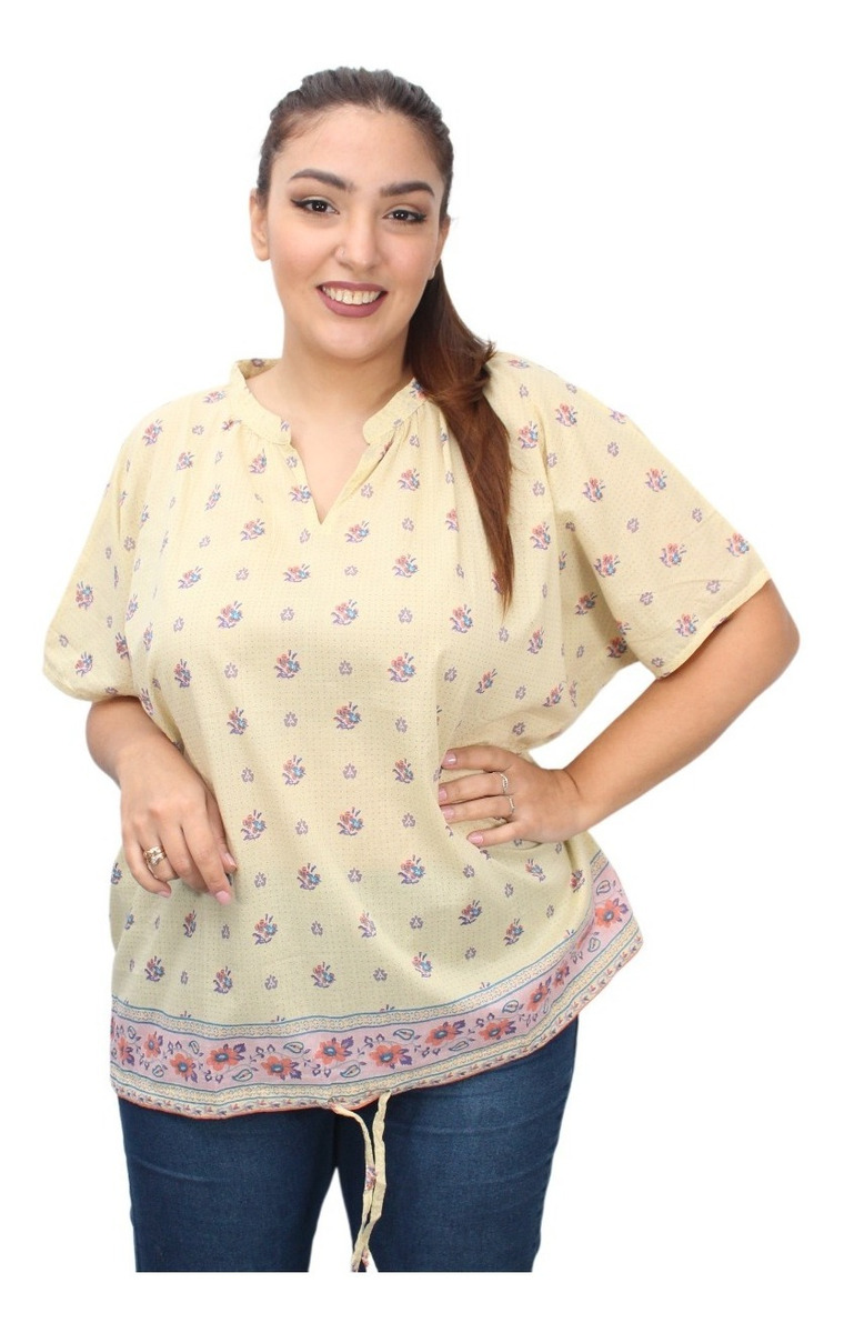 Blusas amplias estampadas con cordón para atar en la parte inferior.