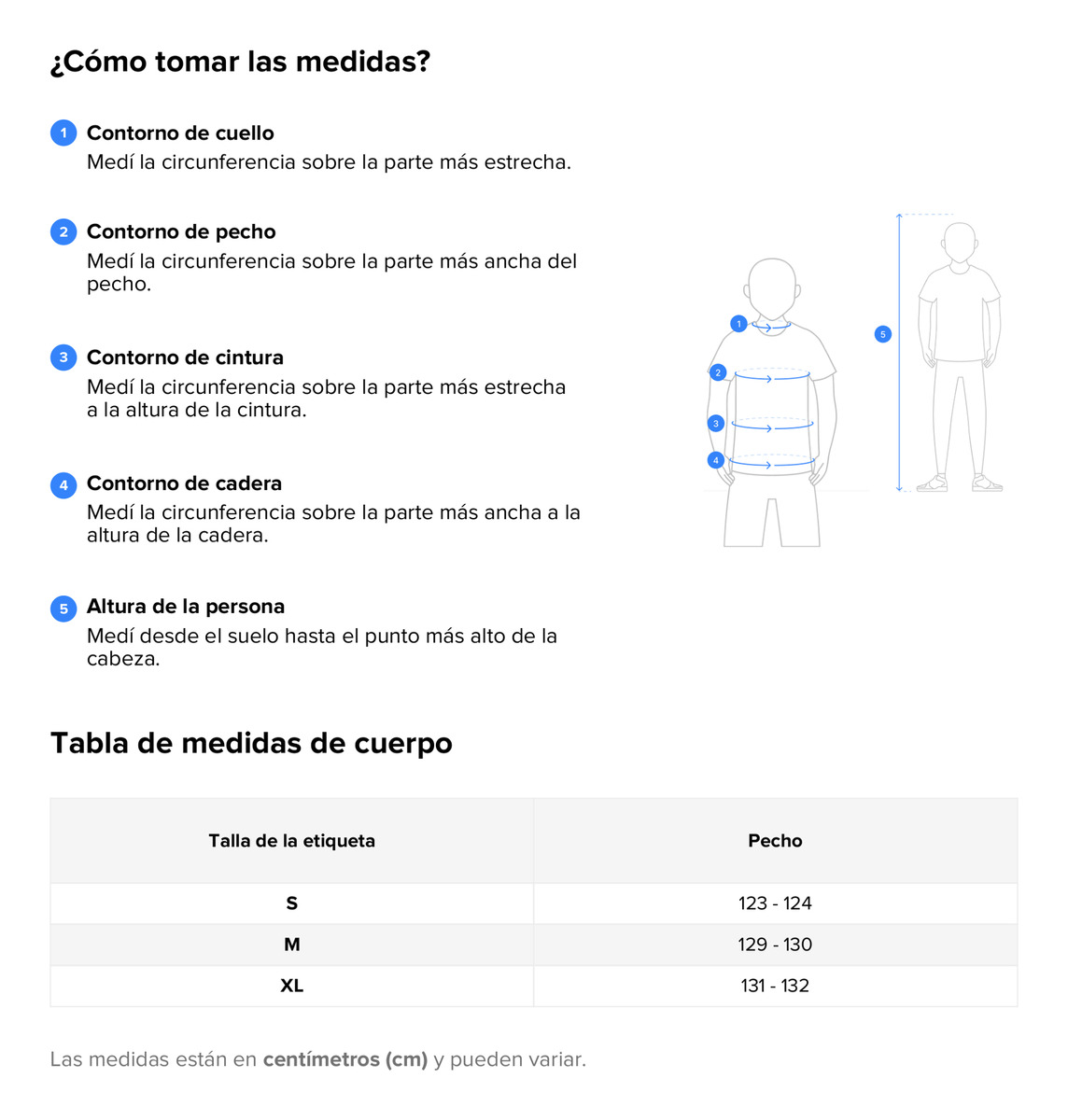 M: Siza:130cm Cadera:130cm Largo:77cm