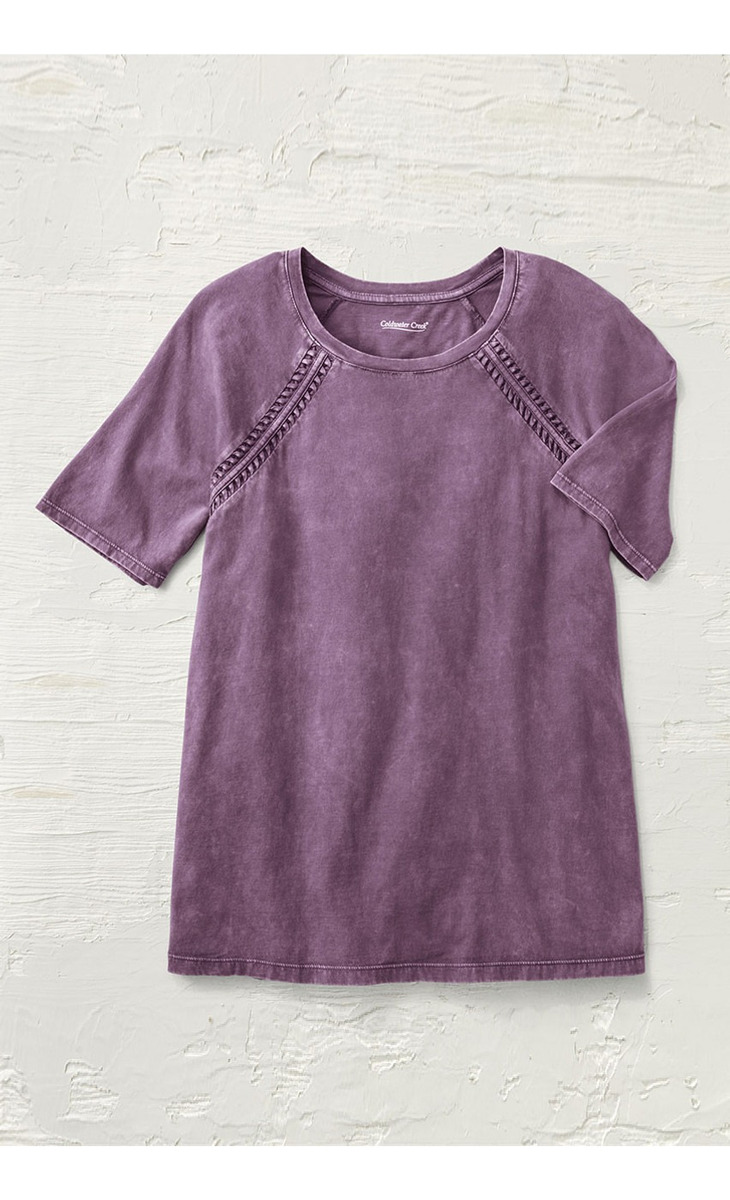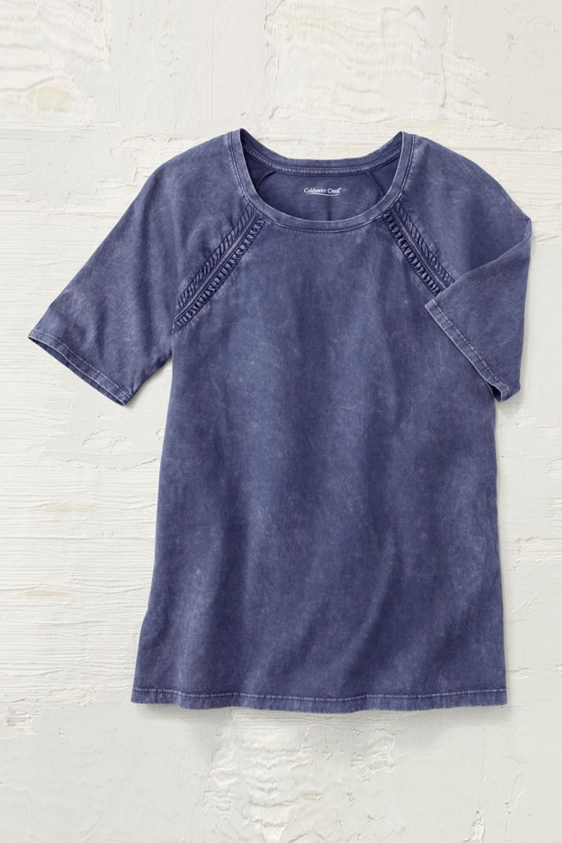 Color lavado suave con un toque artístico. Nuestra camiseta de estilo vintage está ribeteada en las costuras de los hombros para un efecto favorecedor y teñida especialmente para lograr variaciones de color sutiles y únicas.