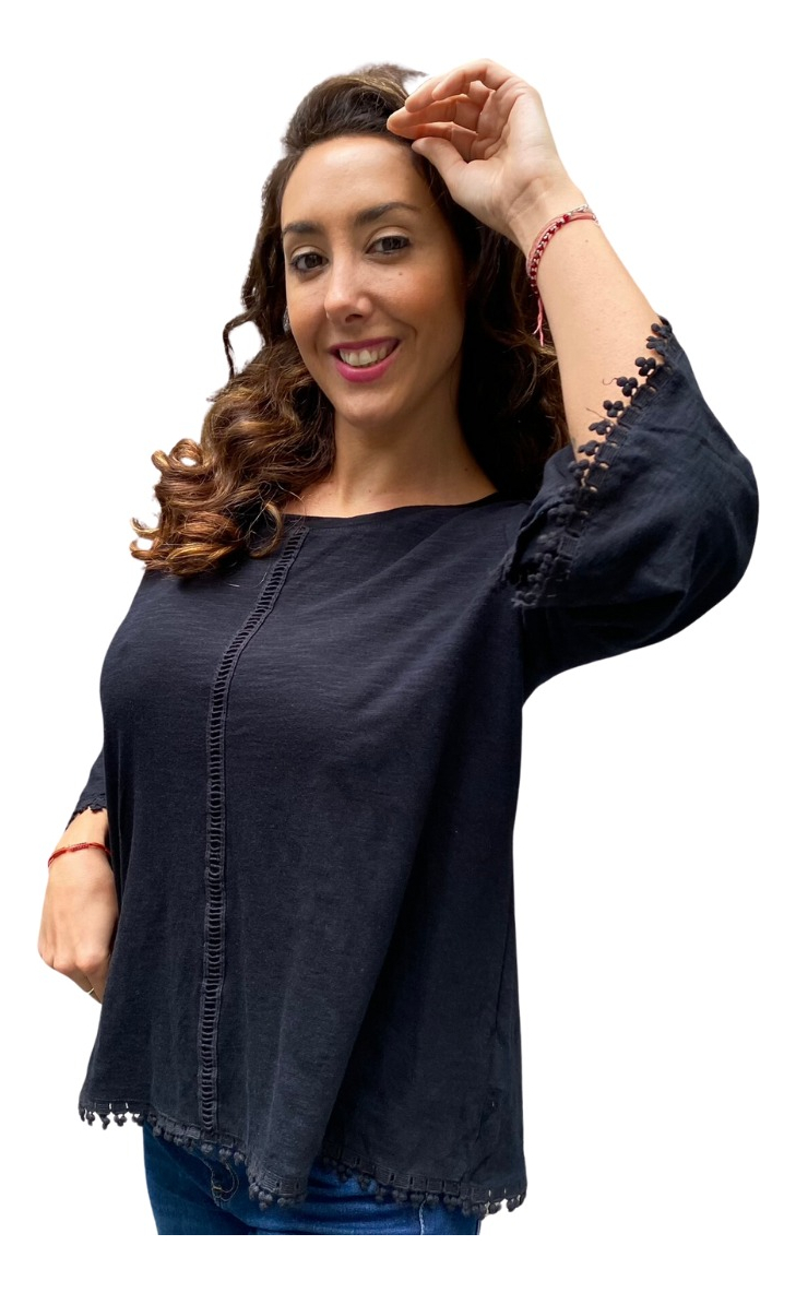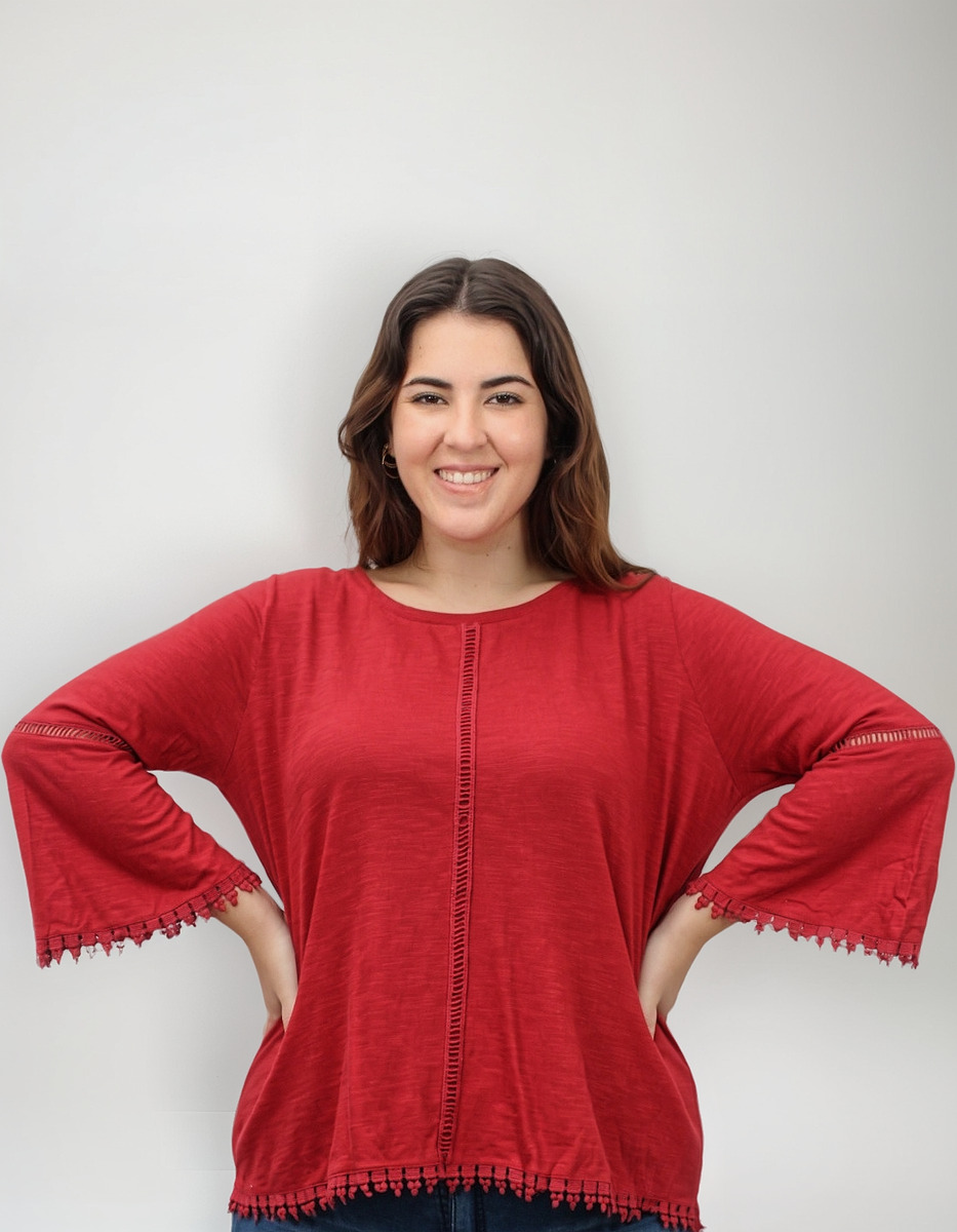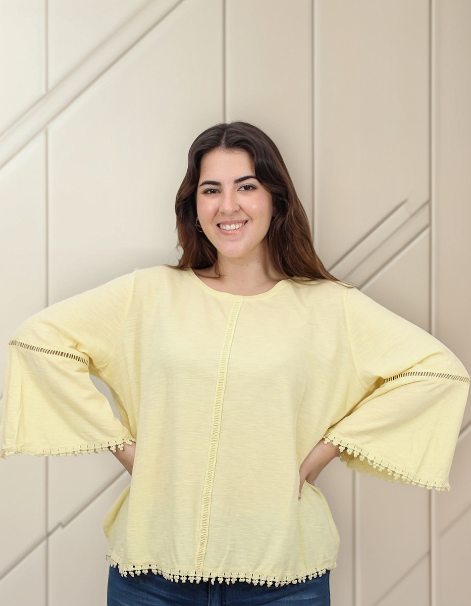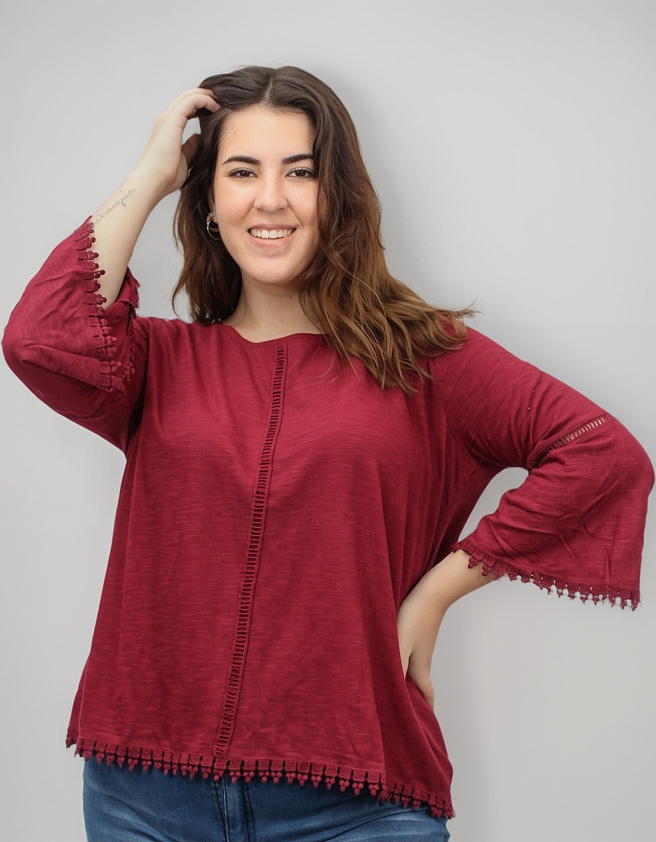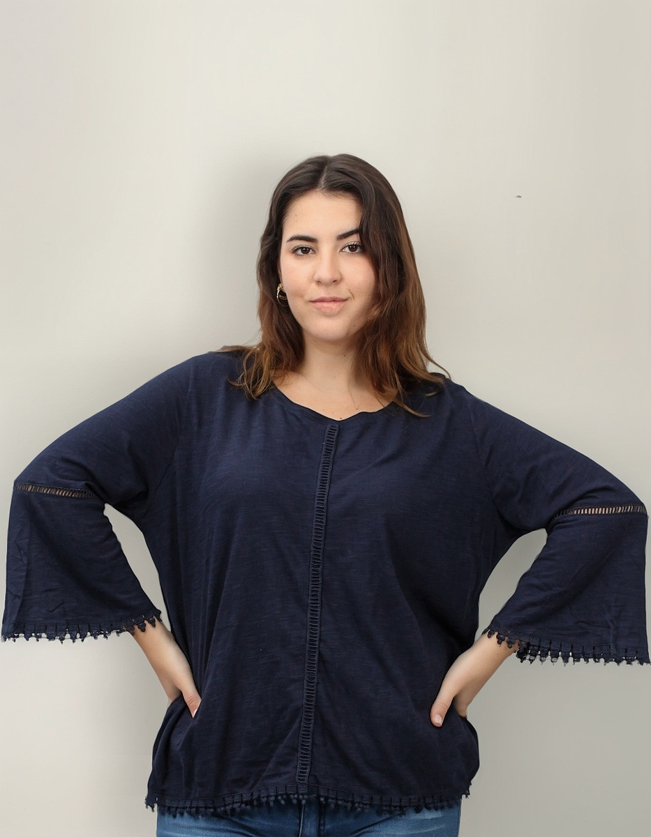 Remera lisa con detalles de puntilla y manga oxford.