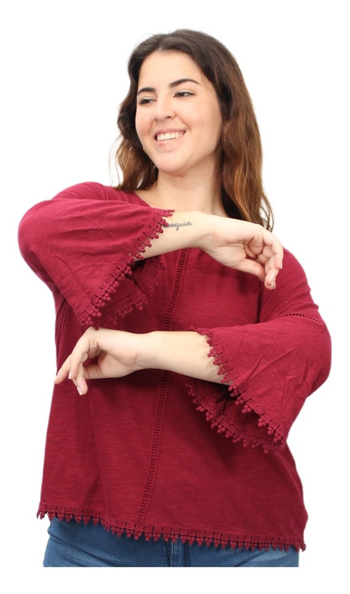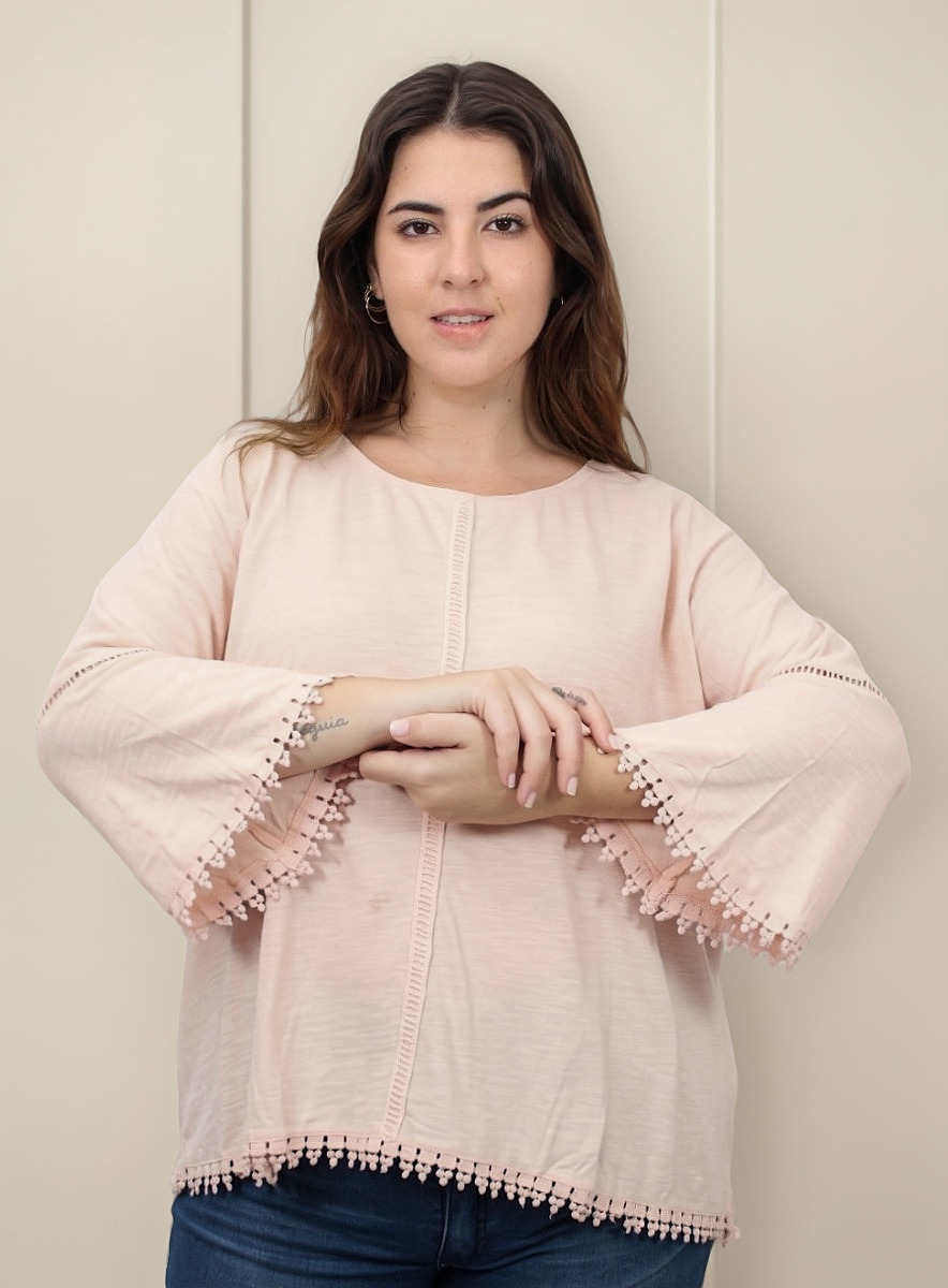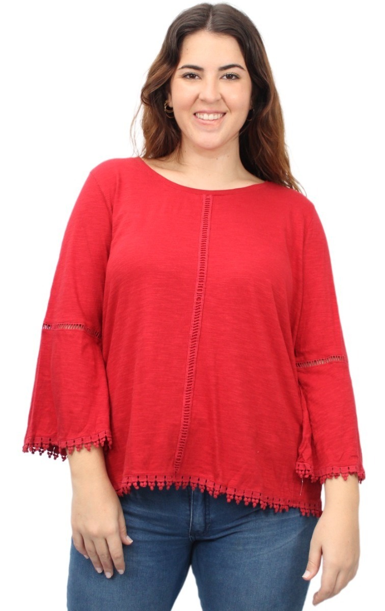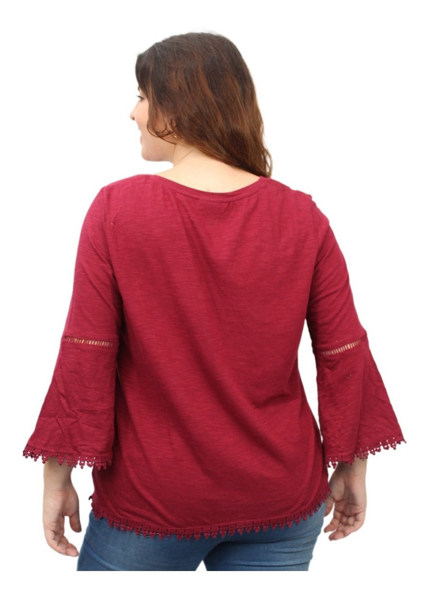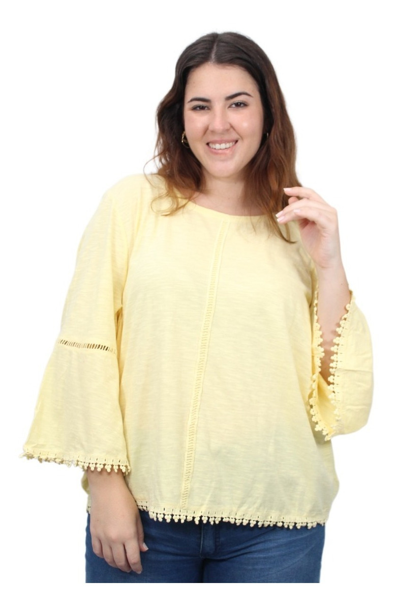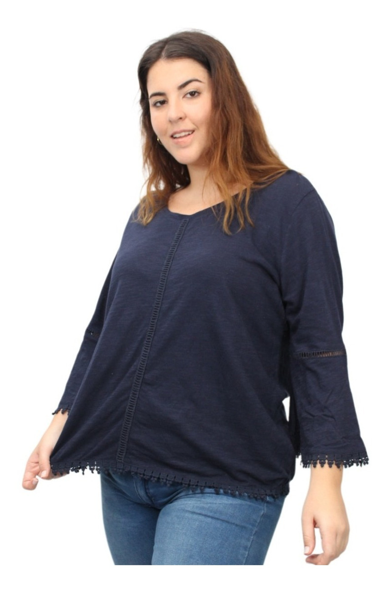 Remera lisa con detalles de puntilla y manga oxford.