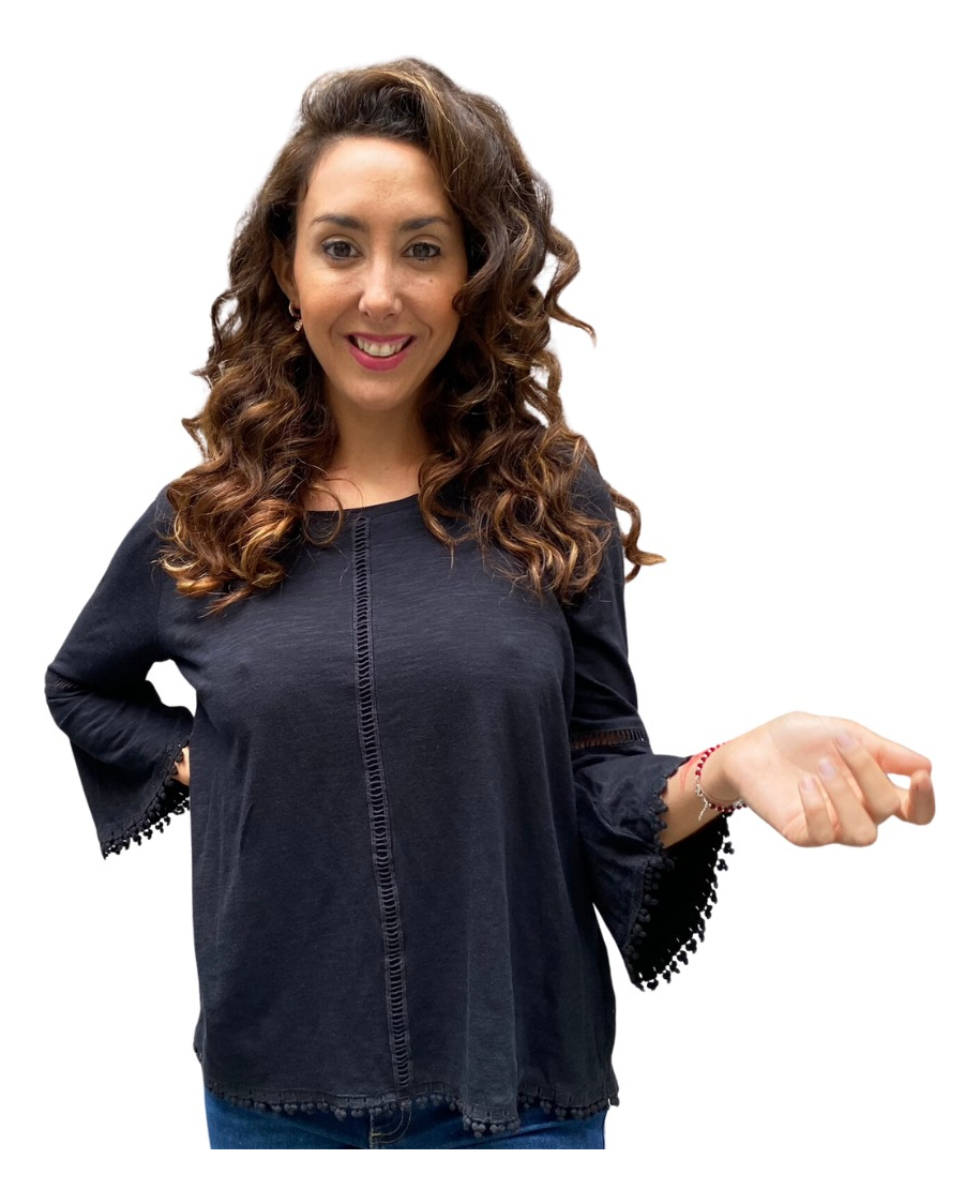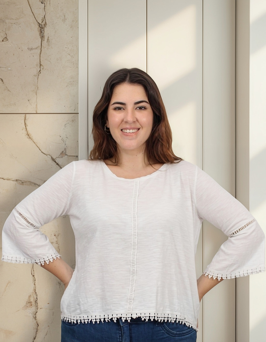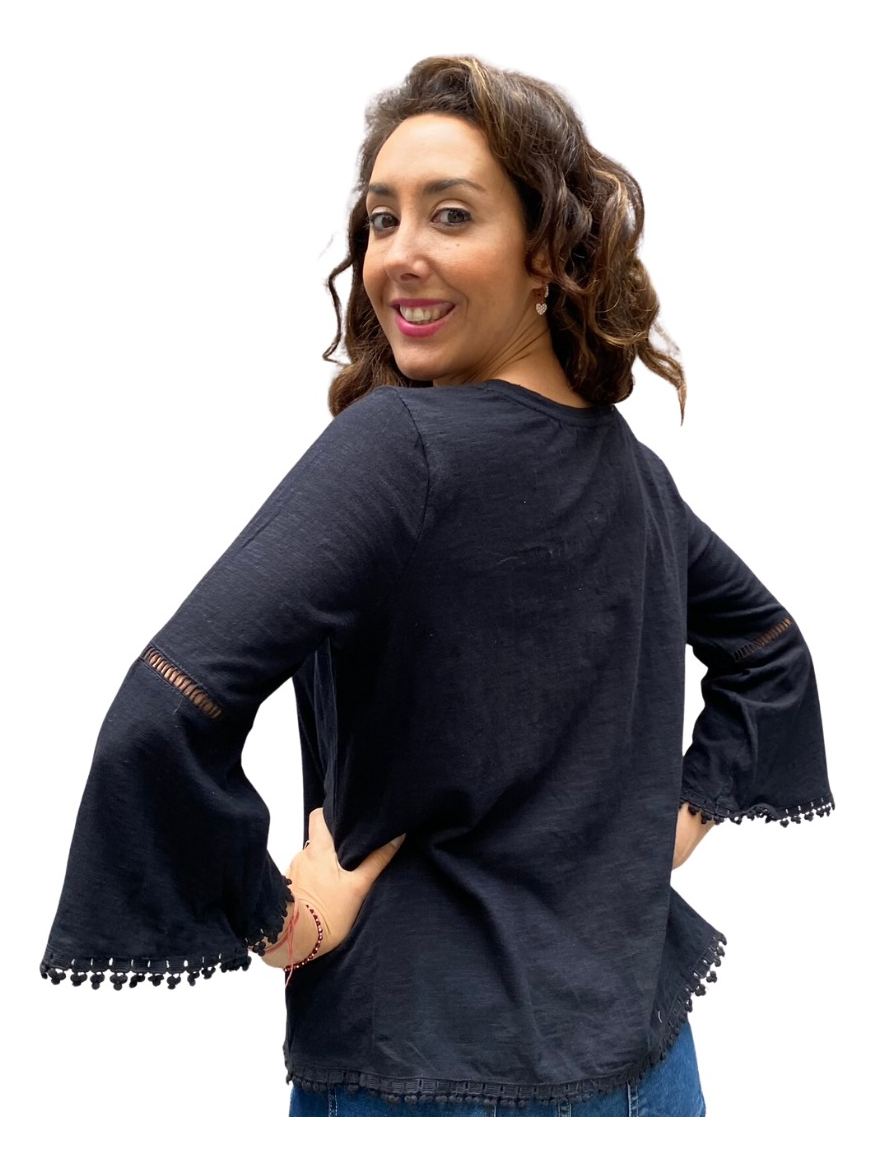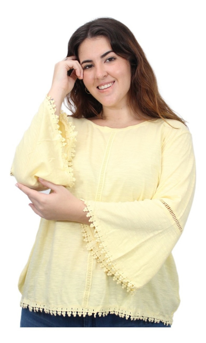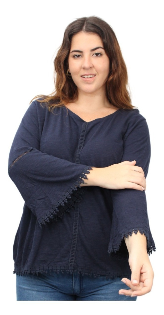 Remera lisa con detalles de puntilla y manga oxford.