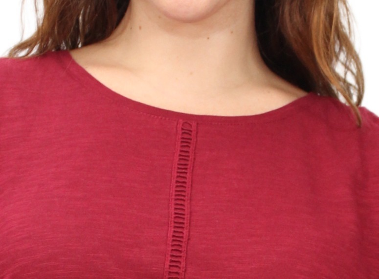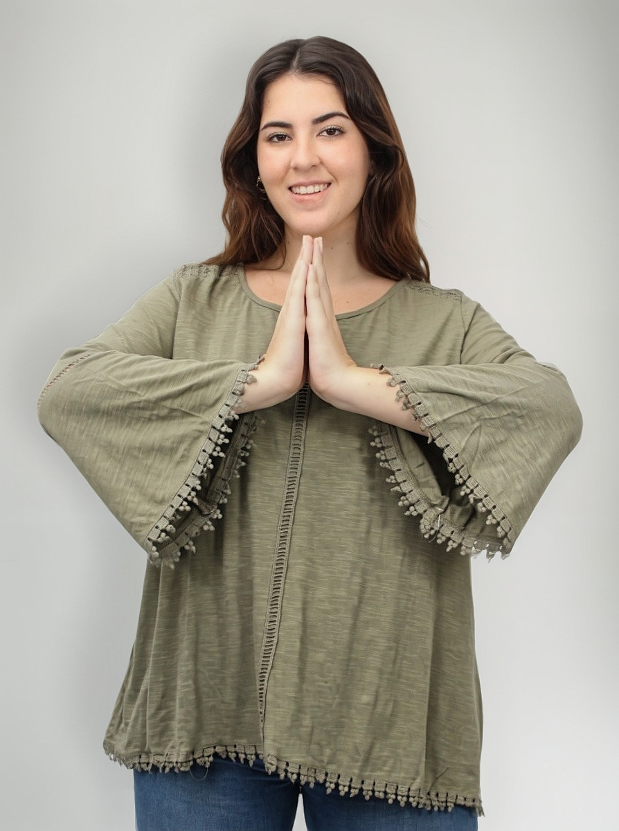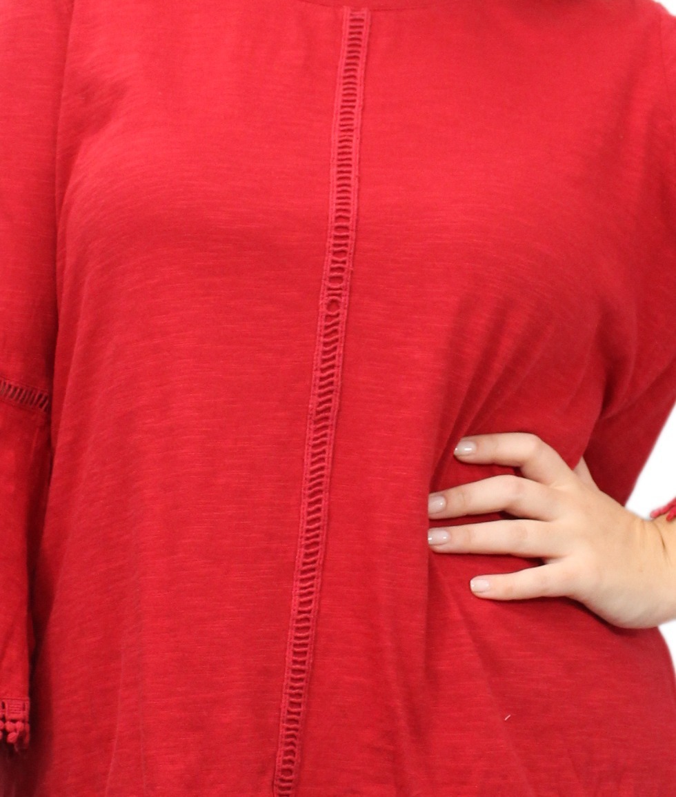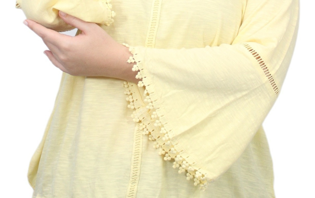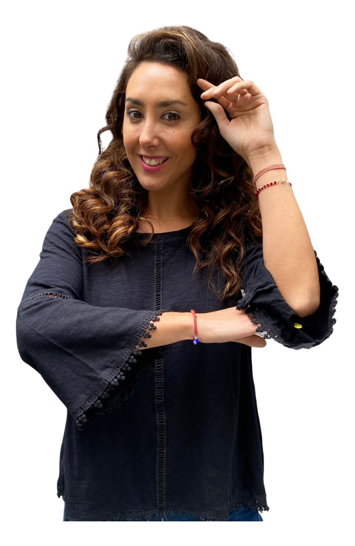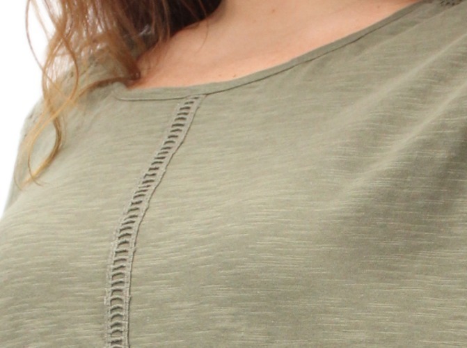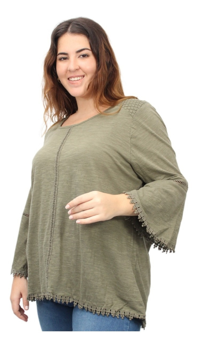 Remera lisa con detalles de puntilla y manga oxford.