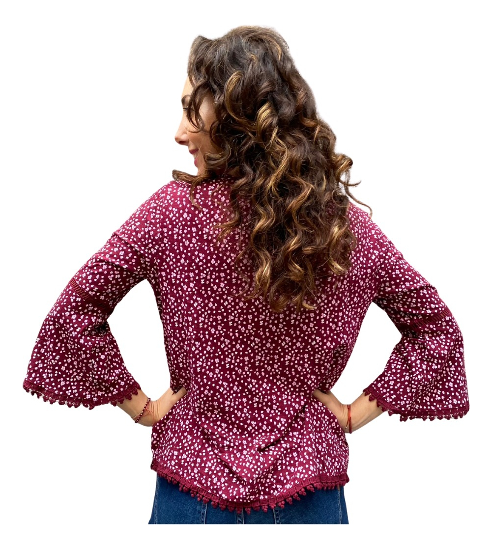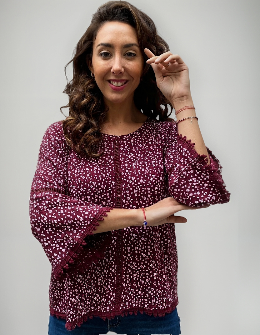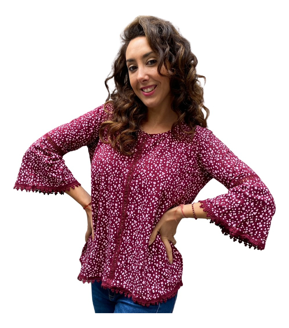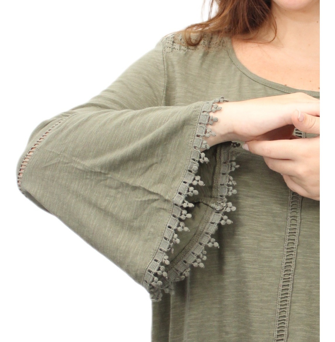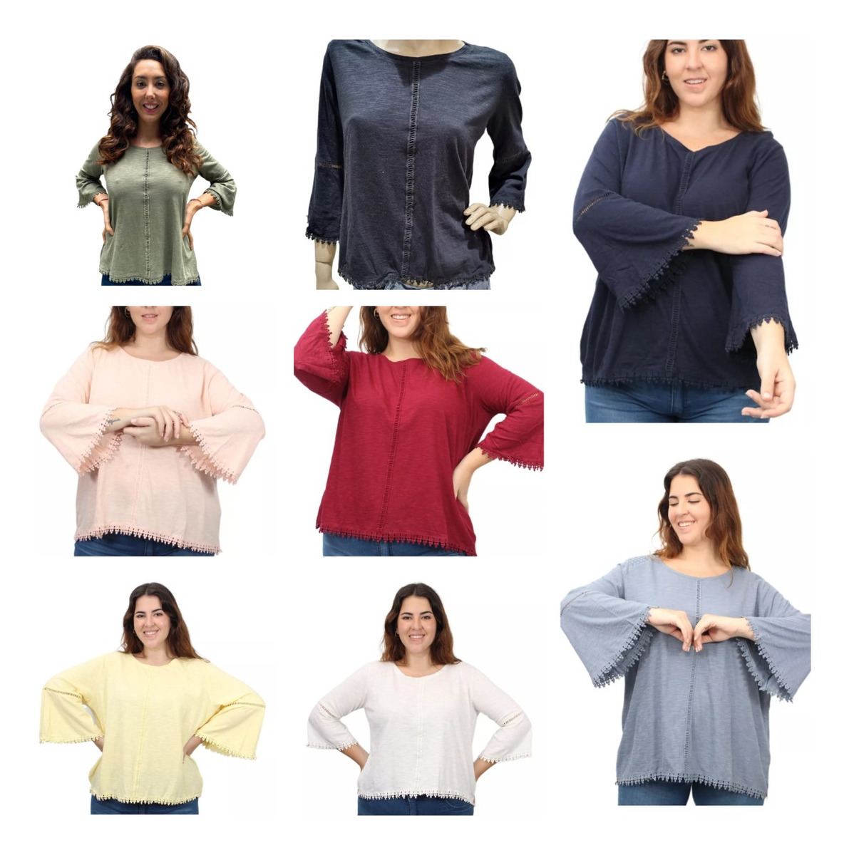 Remera lisa con detalles de puntilla y manga oxford.