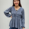 BLUSA REMERA MANGA LARGA BRODERIE cuello v botones