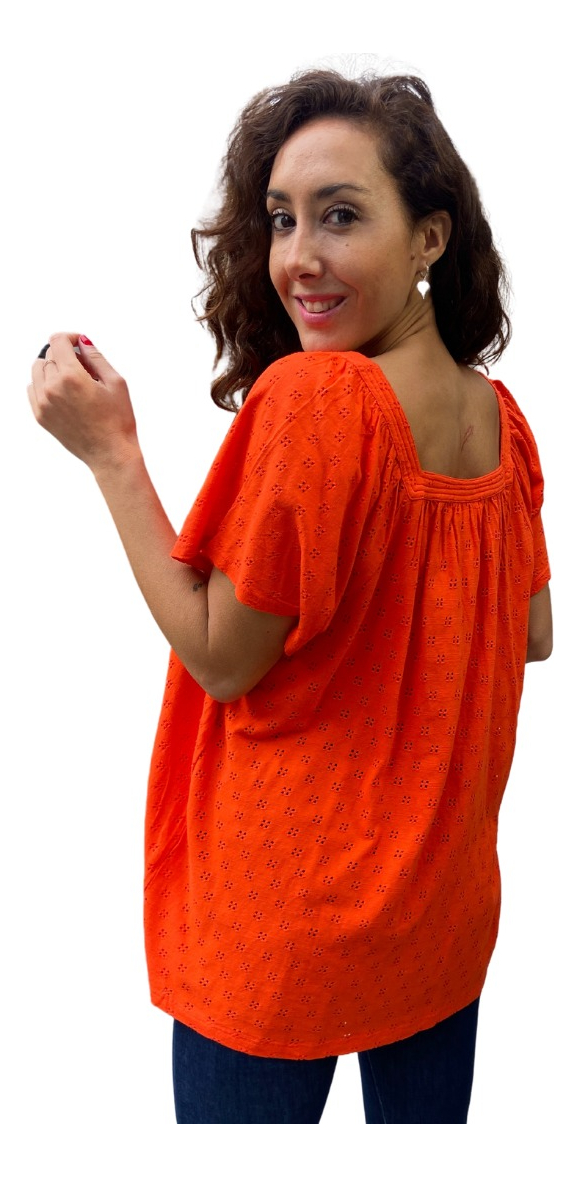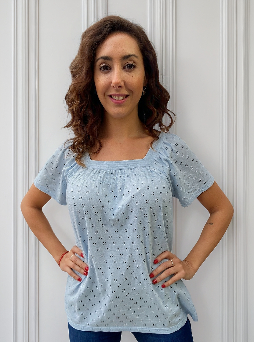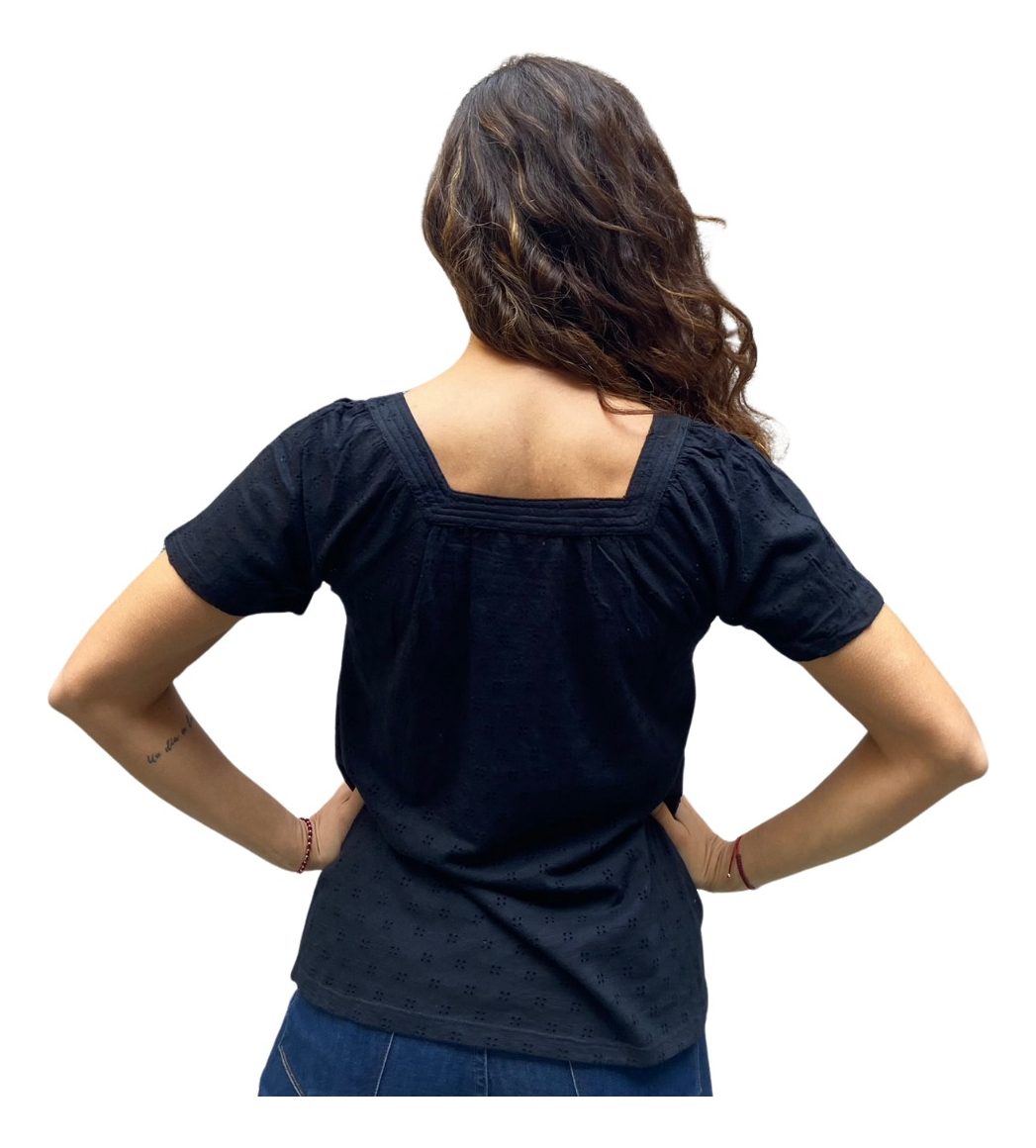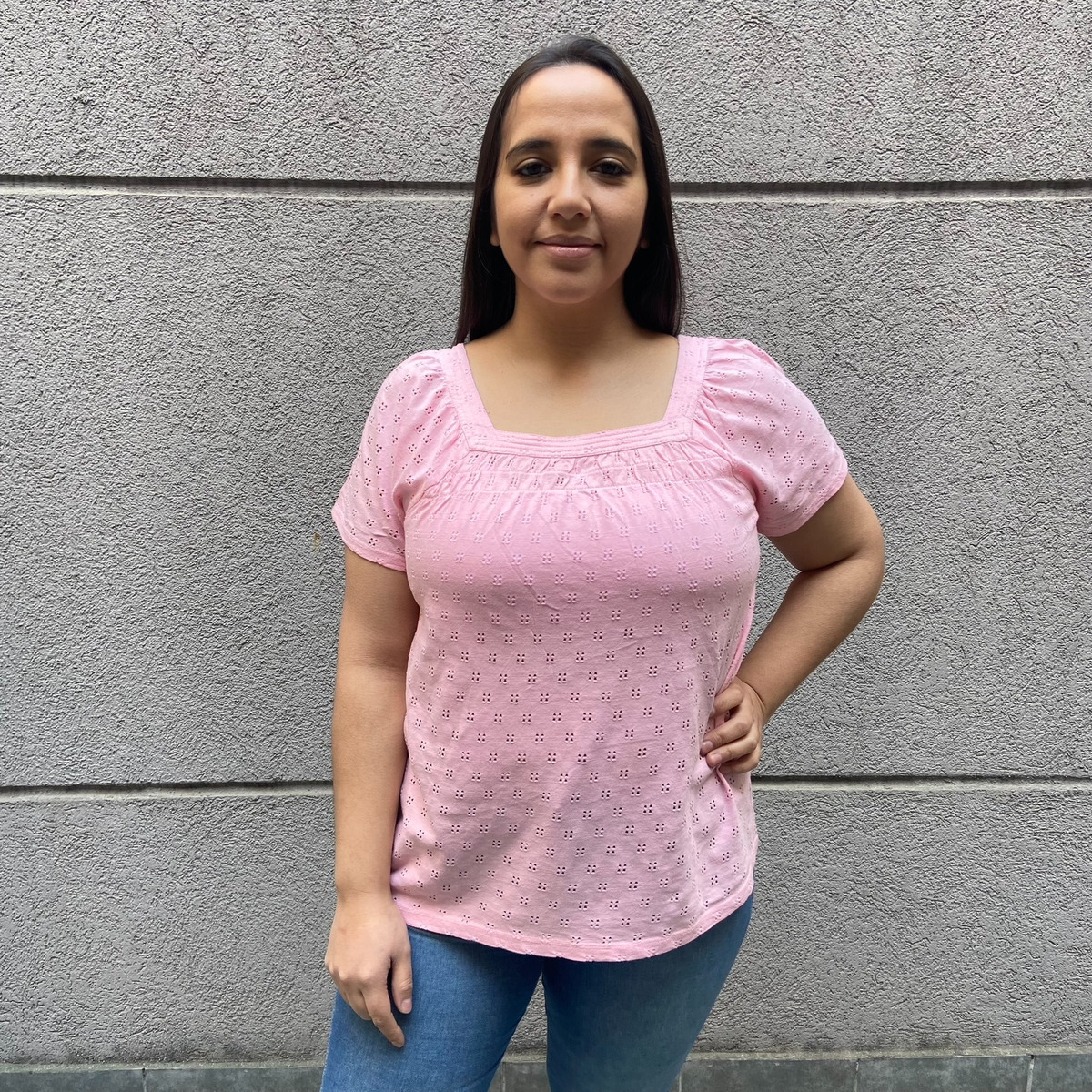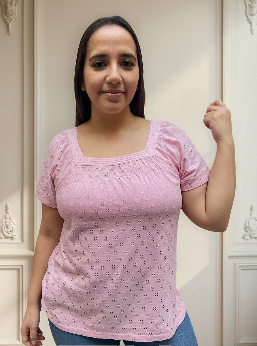 BLUSA STYLE&CO MANGA CORTA BRODERIE CUELLO CUADRADO