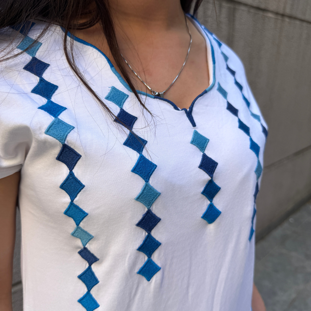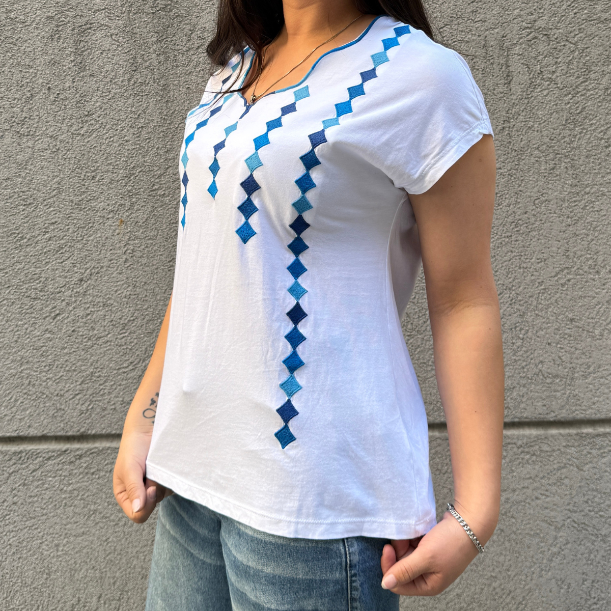 BLUSA REEMERA MANGA CORTA BORDADO ROMBOS