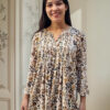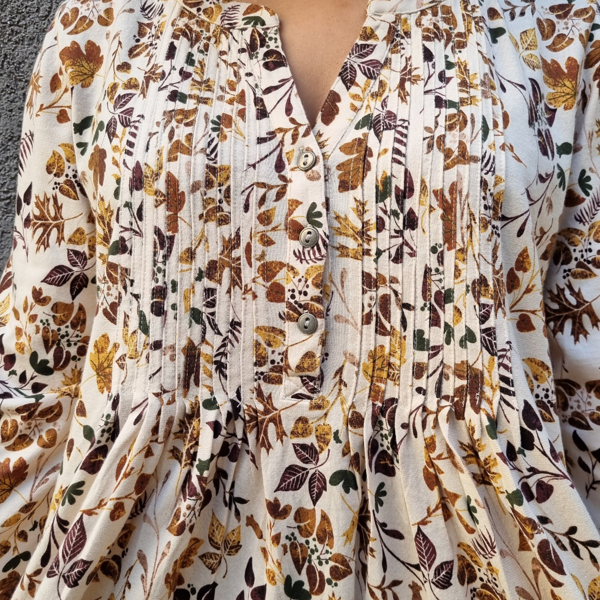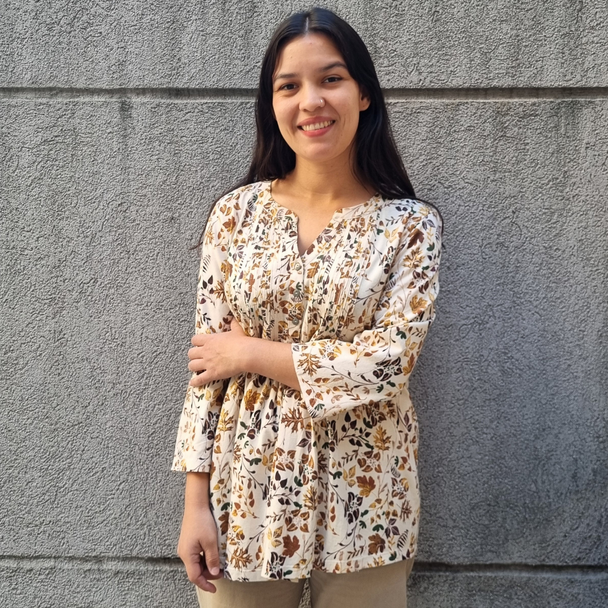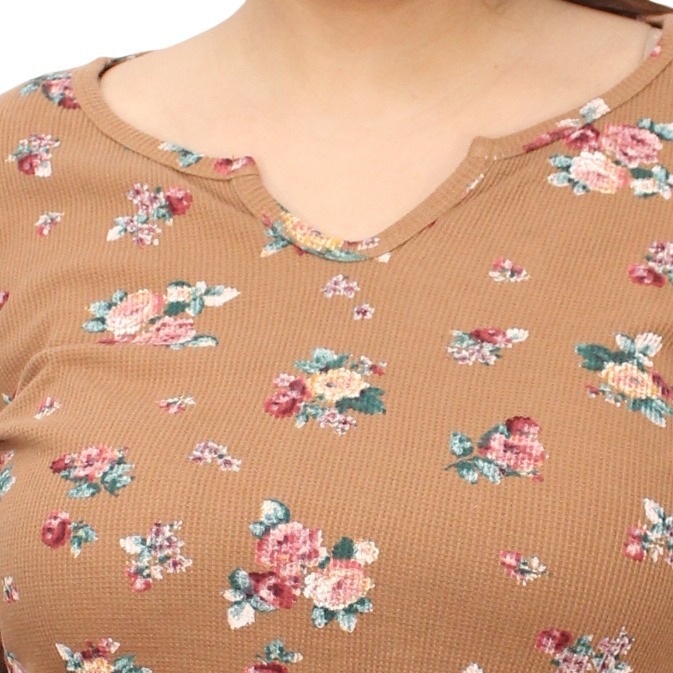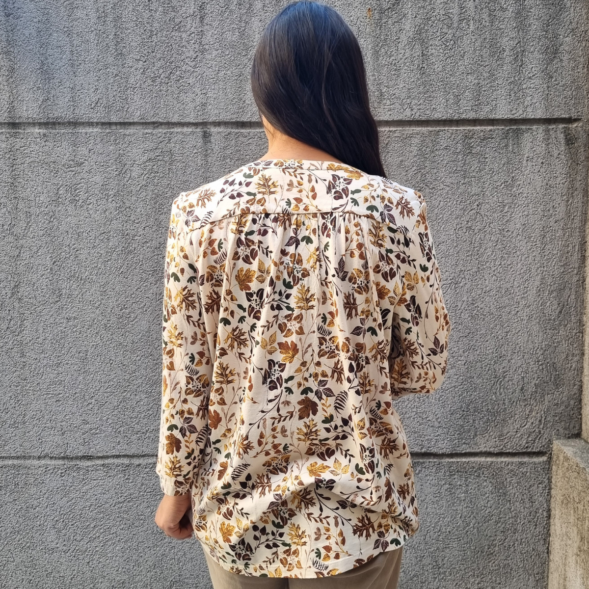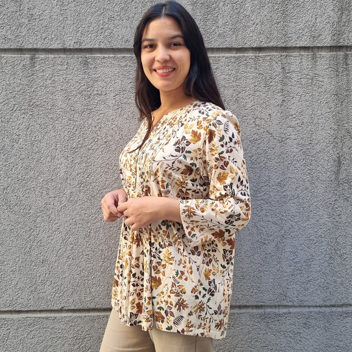 Blusa manga 3/4 con PLIZAS ESTAMPADO FLORAL cuello V