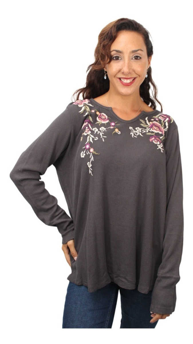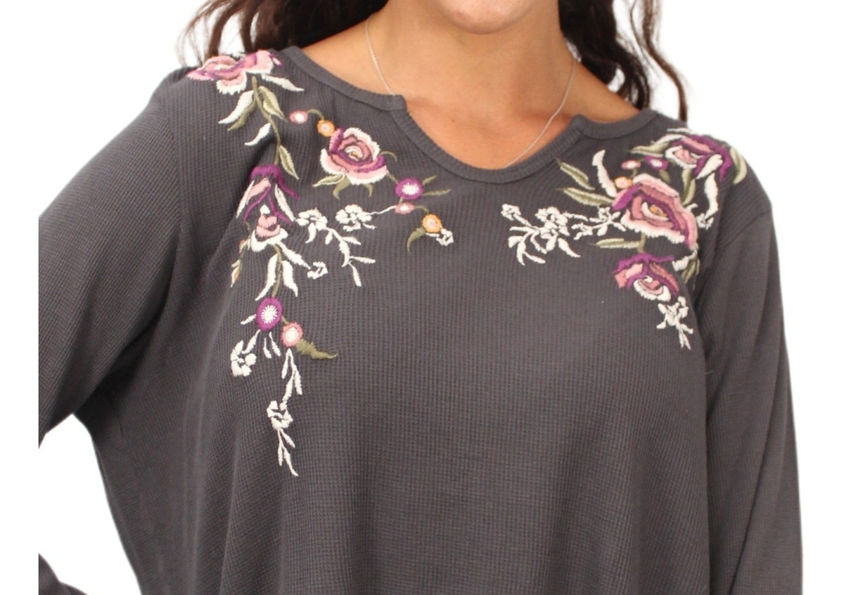 Modelo Gris oscuro con flores bordadas: