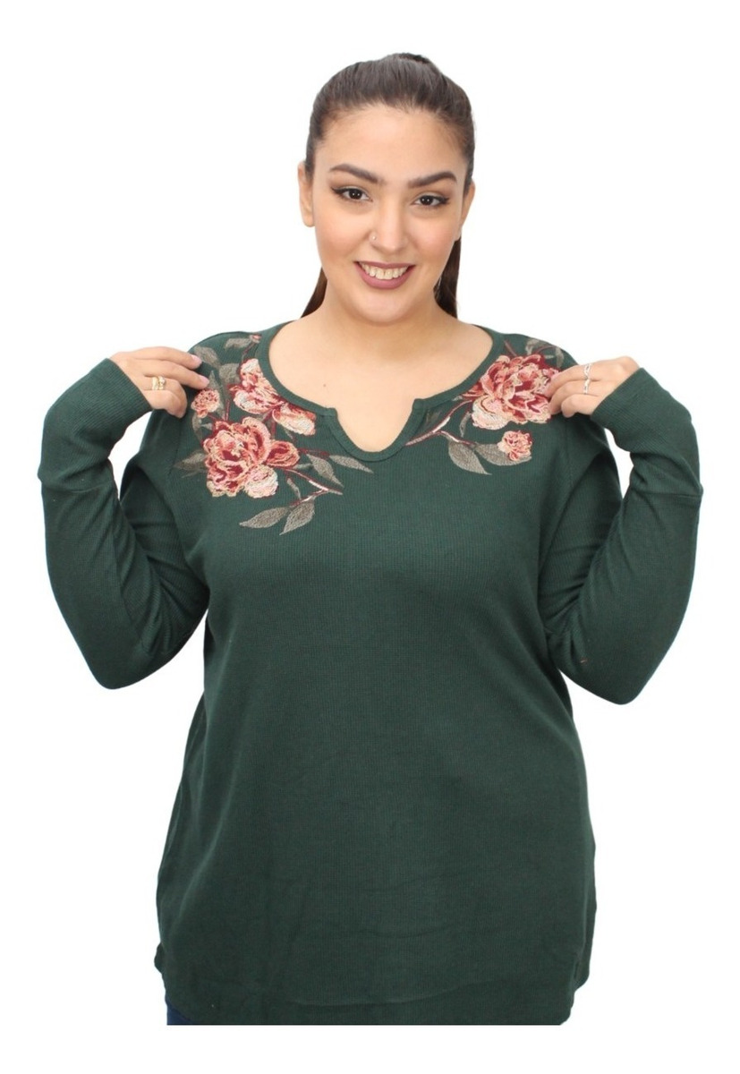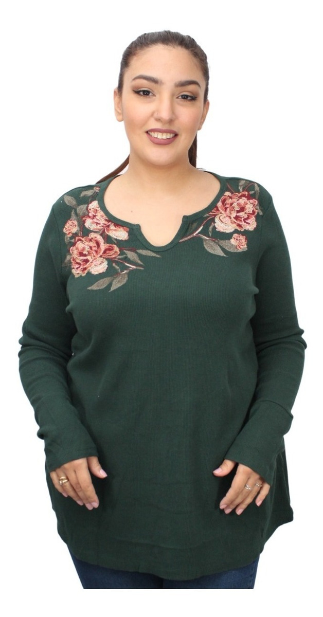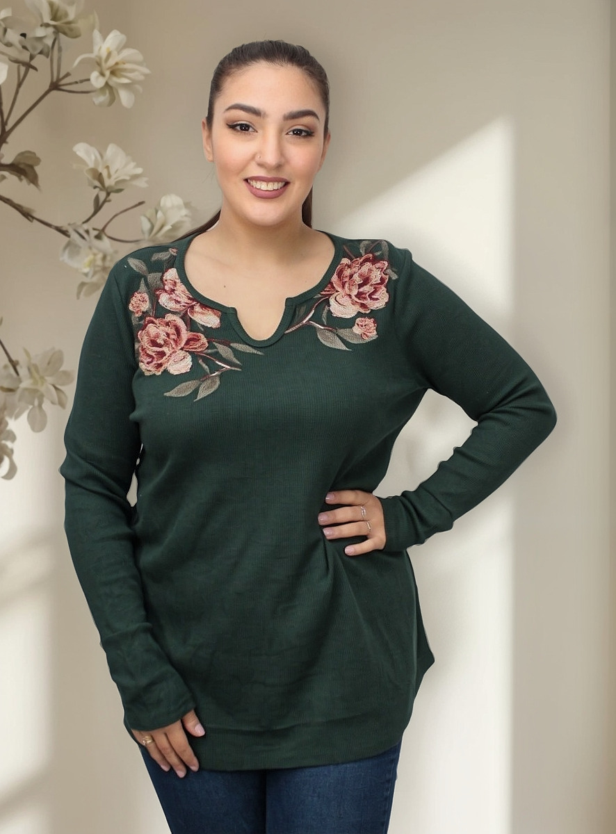 Modelo Verde con flores bordadas: