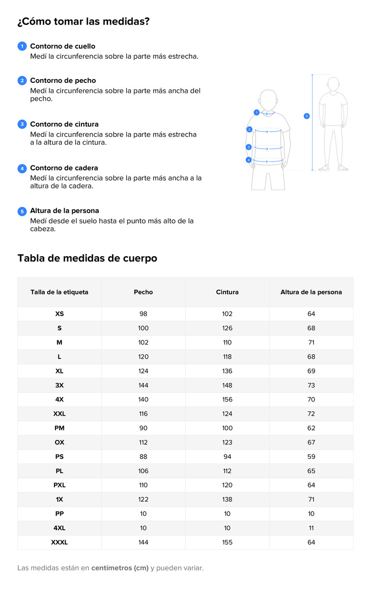 Contorno de busto / contorno de cadera / largo.