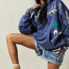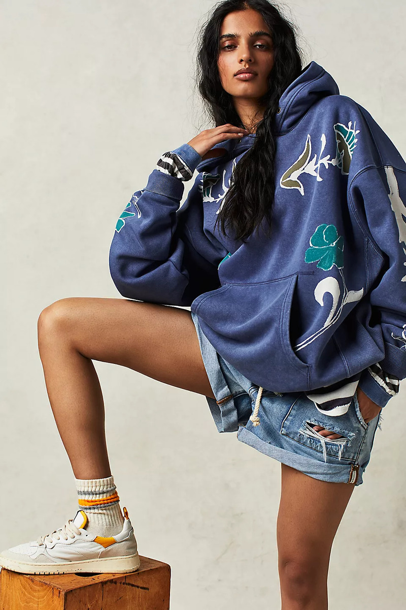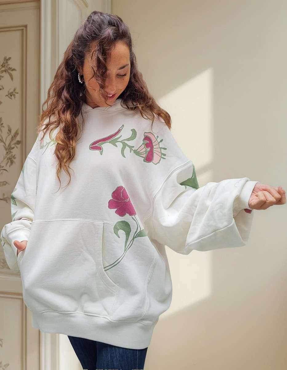 Lleva tu colección de Hoodie a otro nivel con este Buzo con capucha de corte holgado y extragrande, con un impresionante estampado floral que le da un toque único y auténtico, pintado a mano. Desgastado.