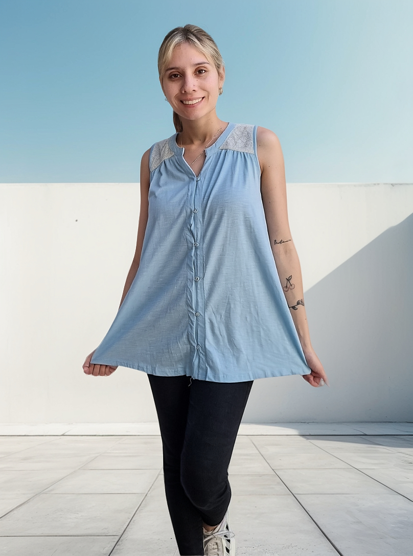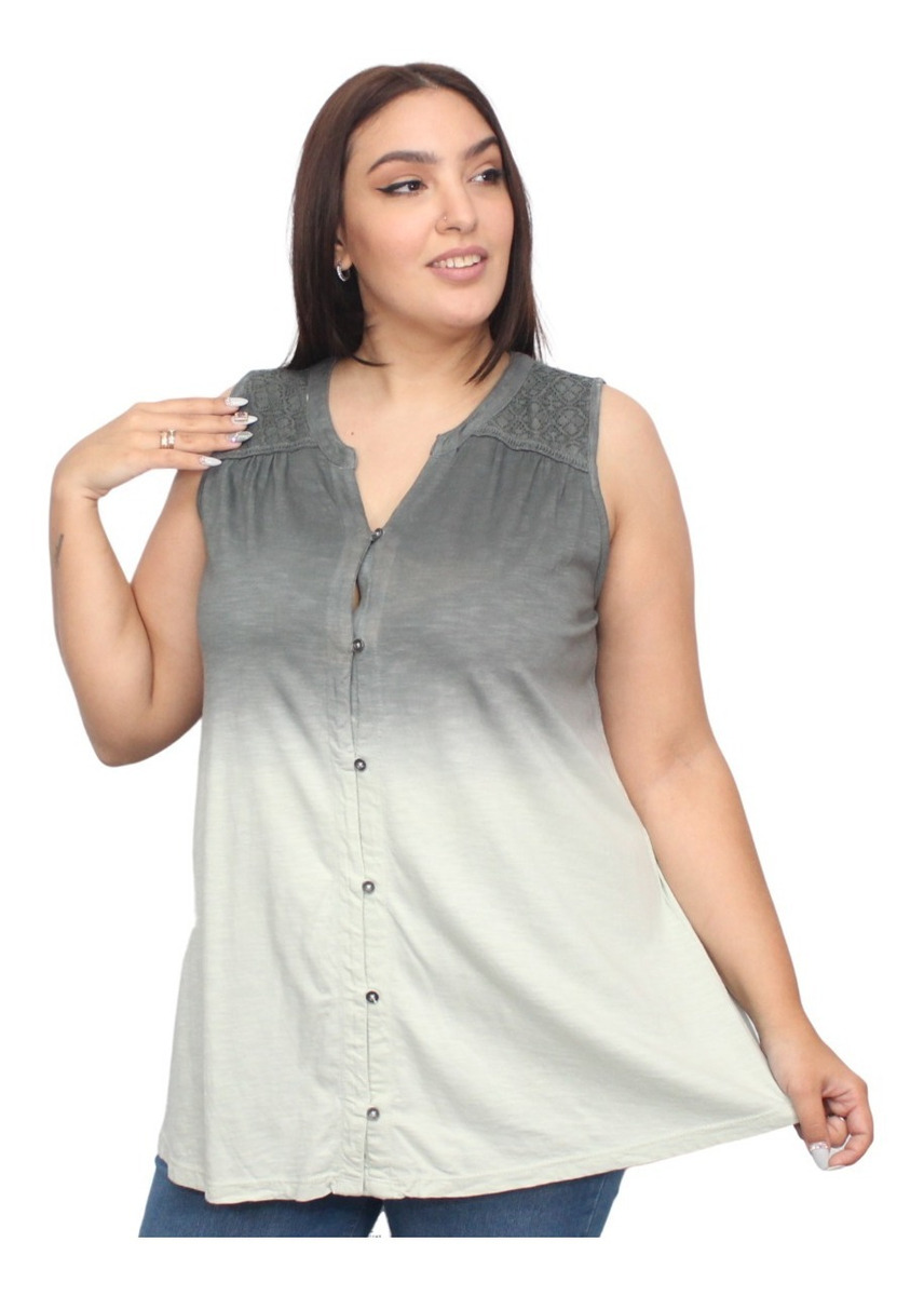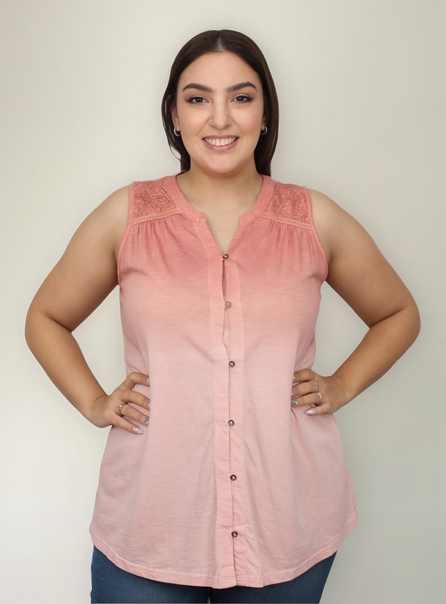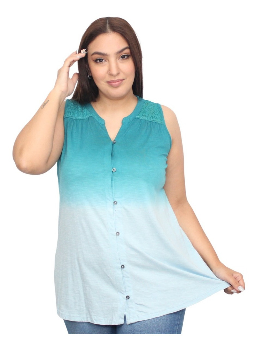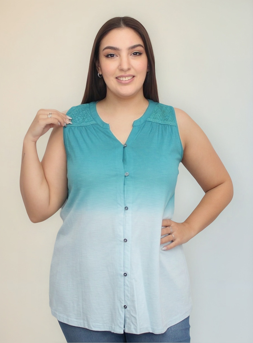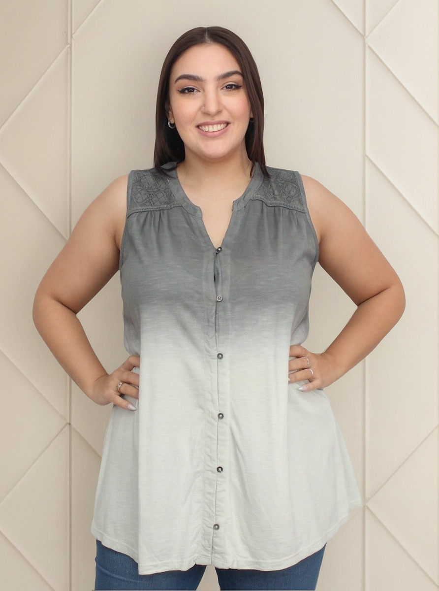 Camisa sin mangas degradé con detalle de puntilla en los hombros.