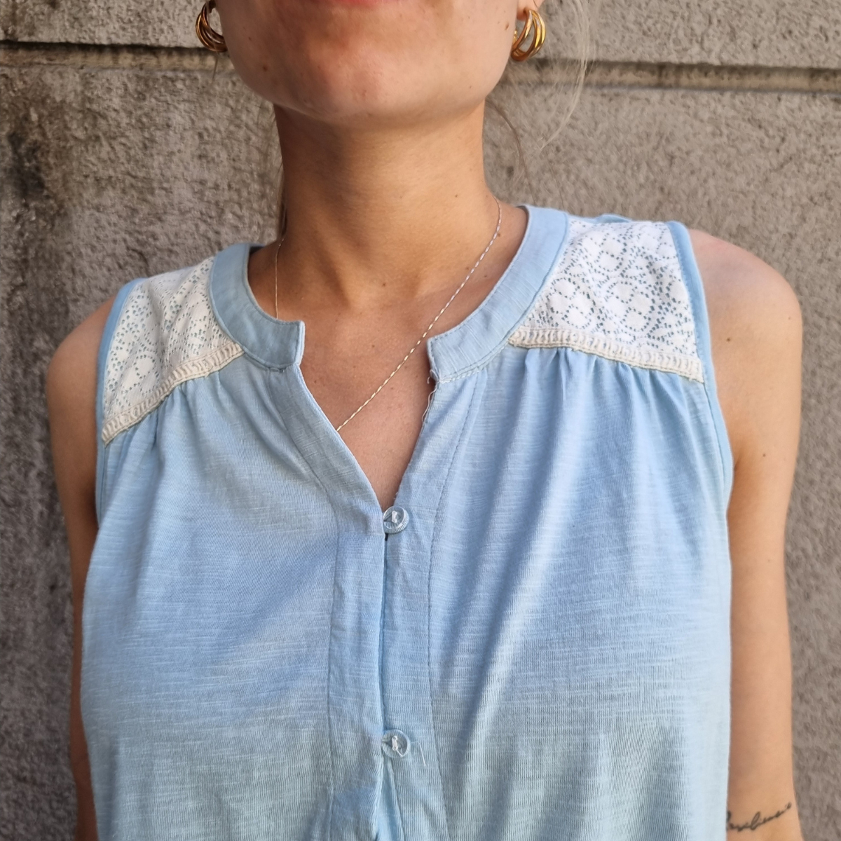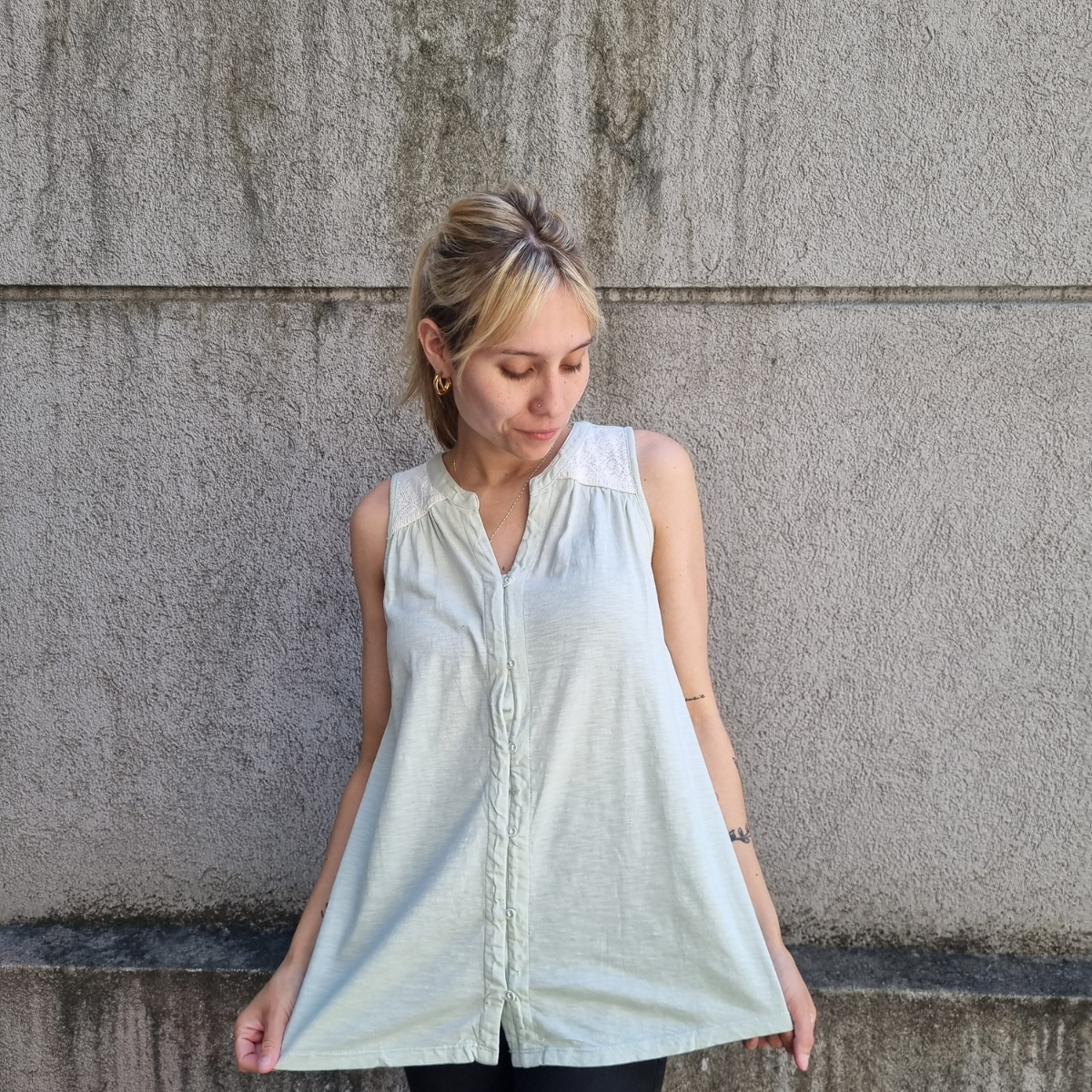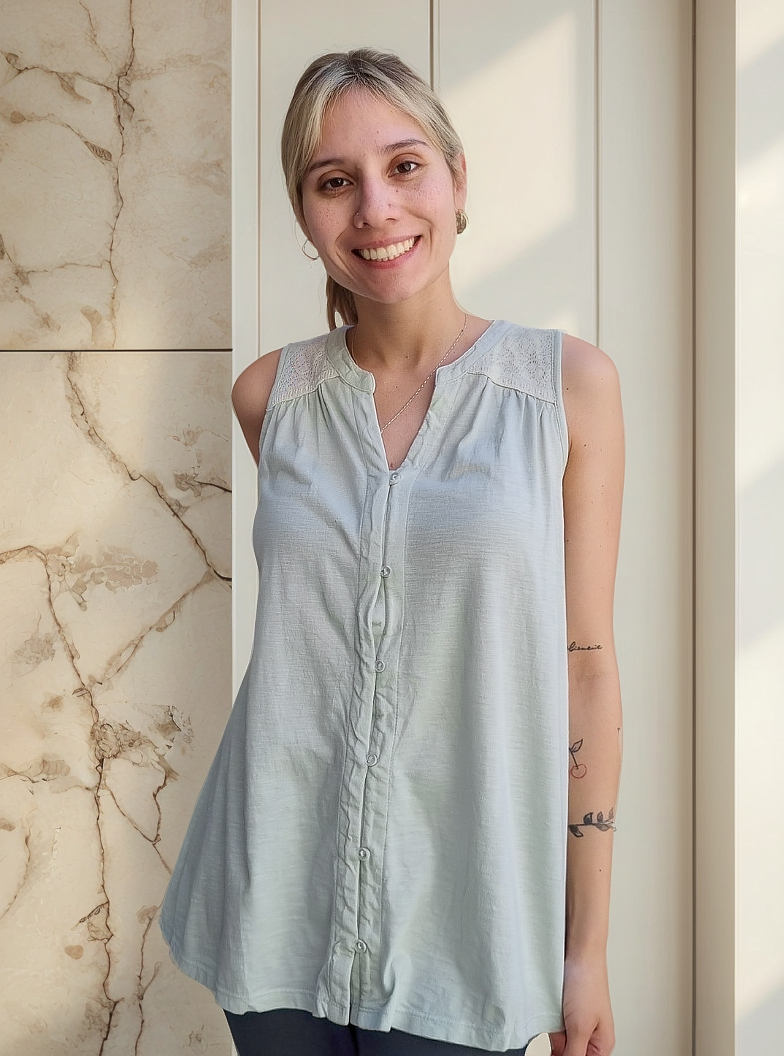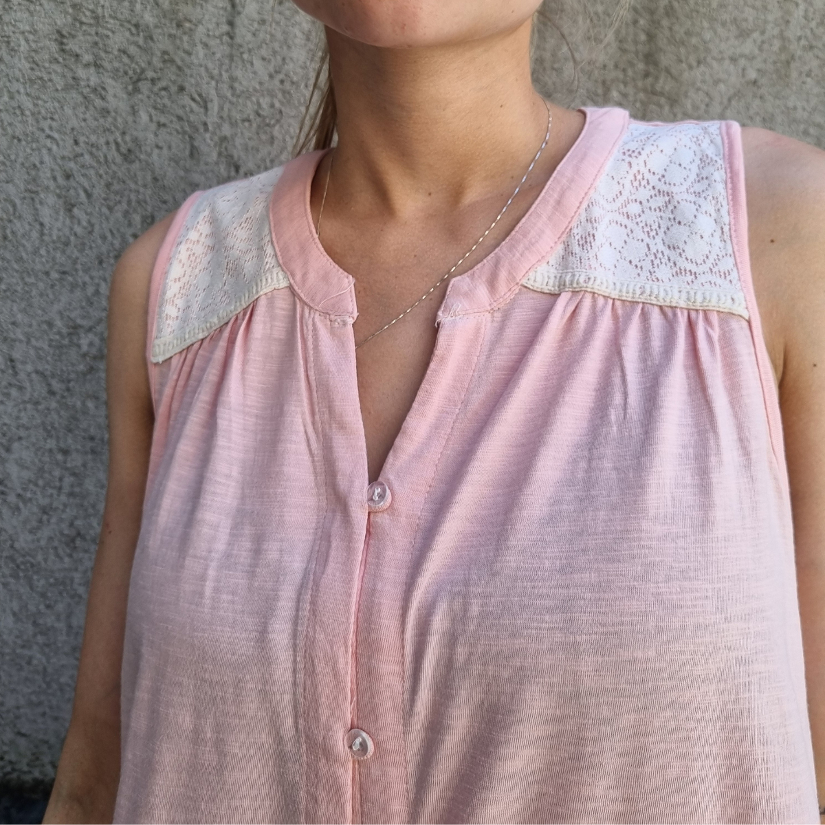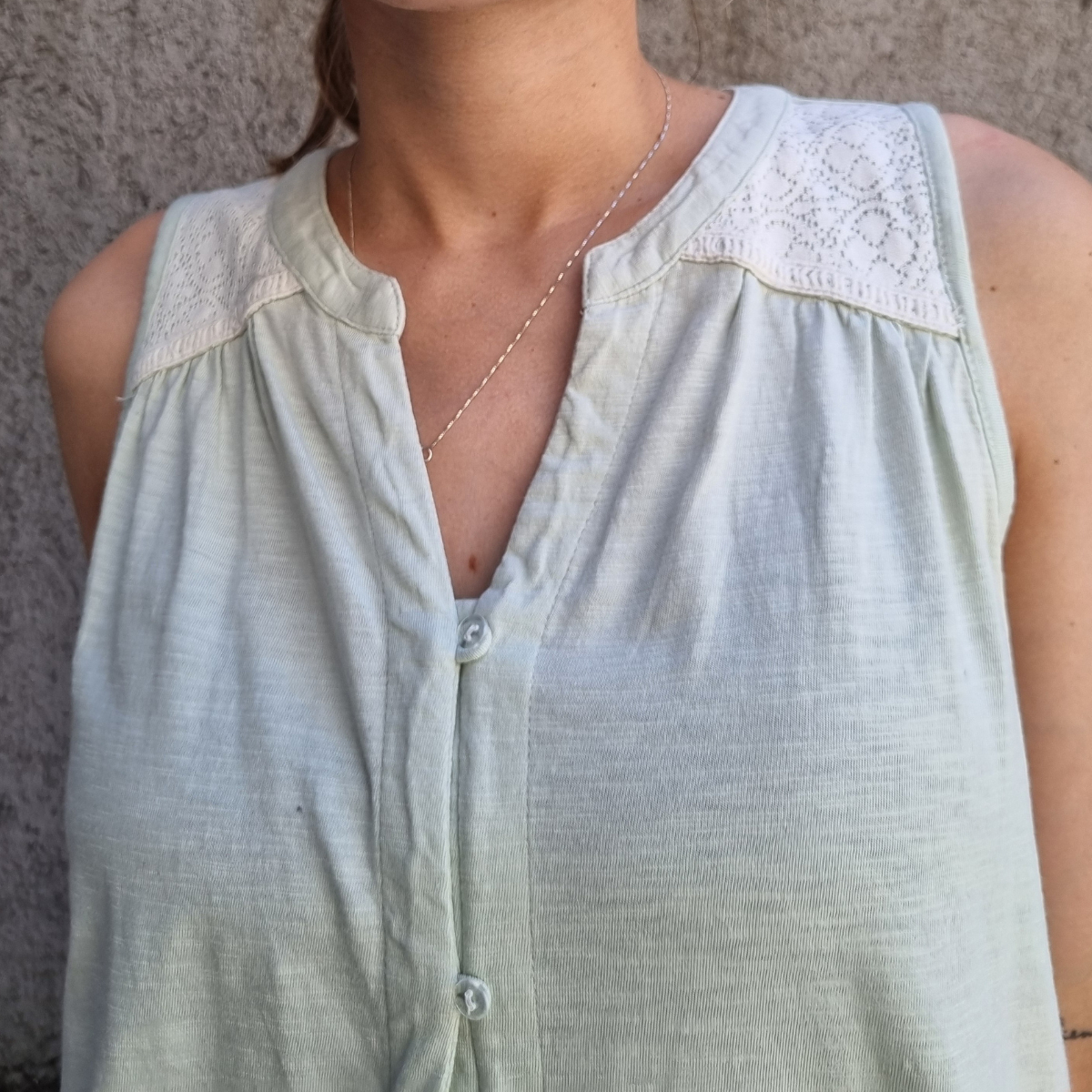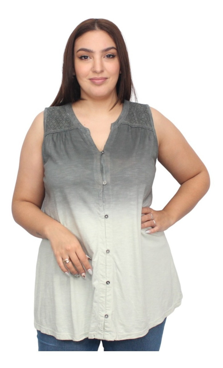Camisa sin mangas degradé con detalle de puntilla en los hombros.