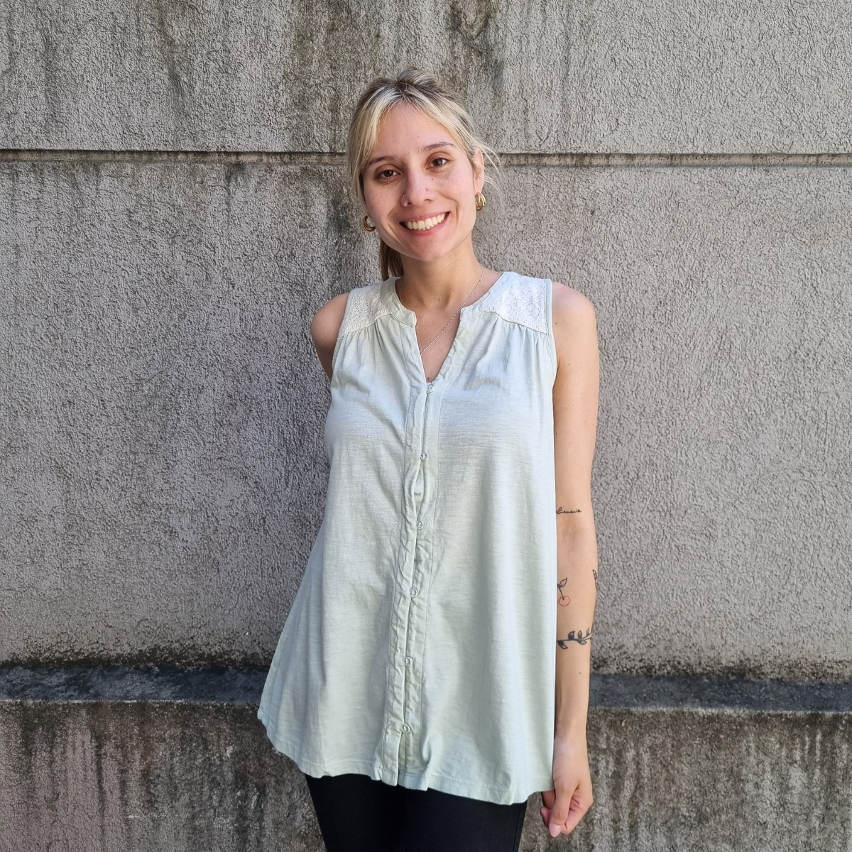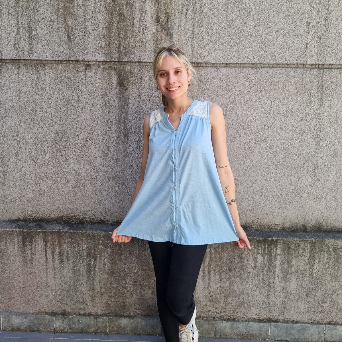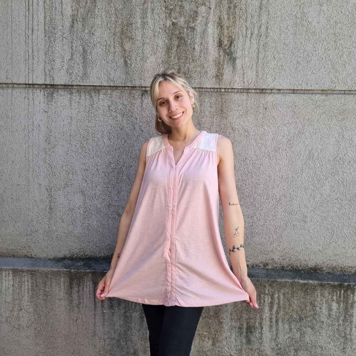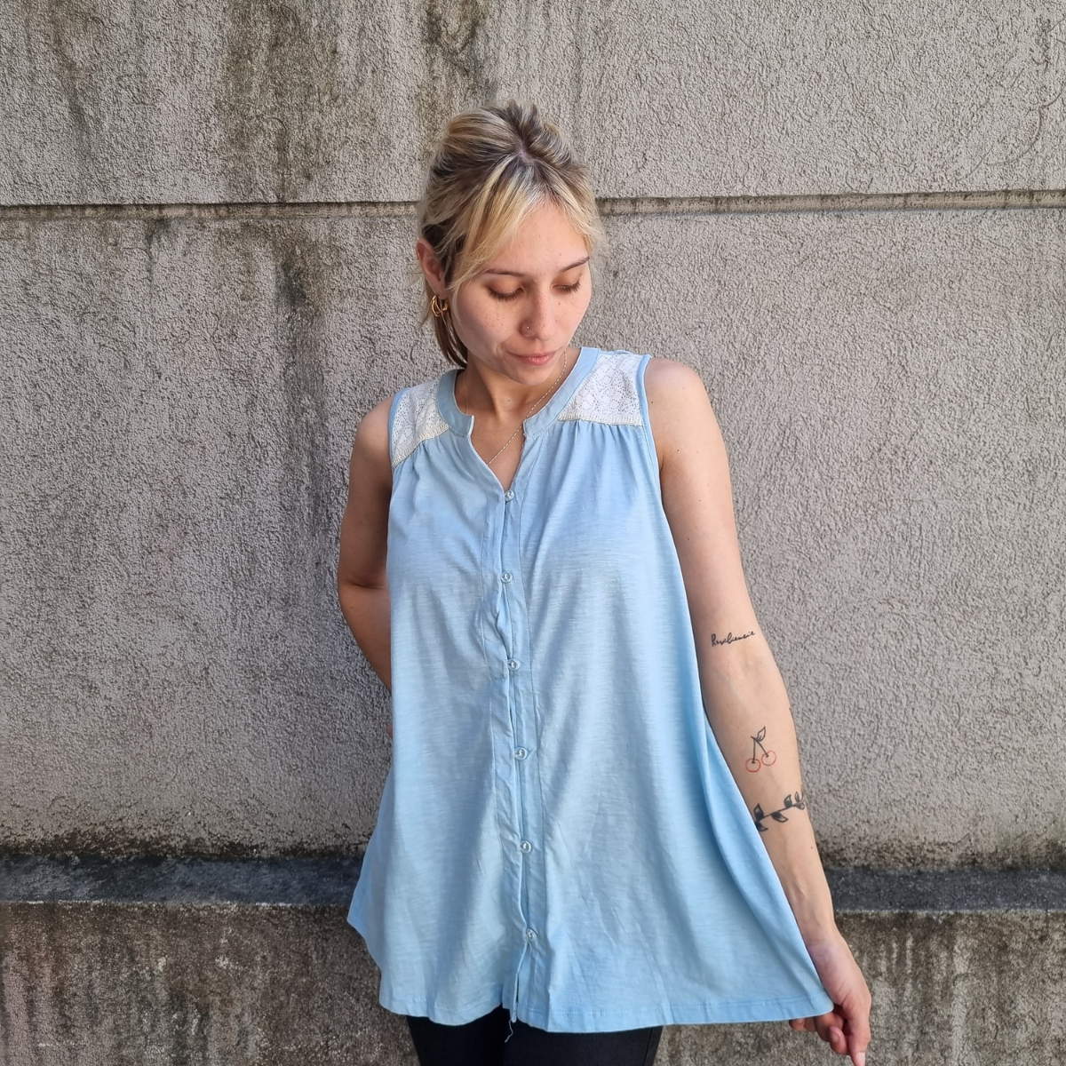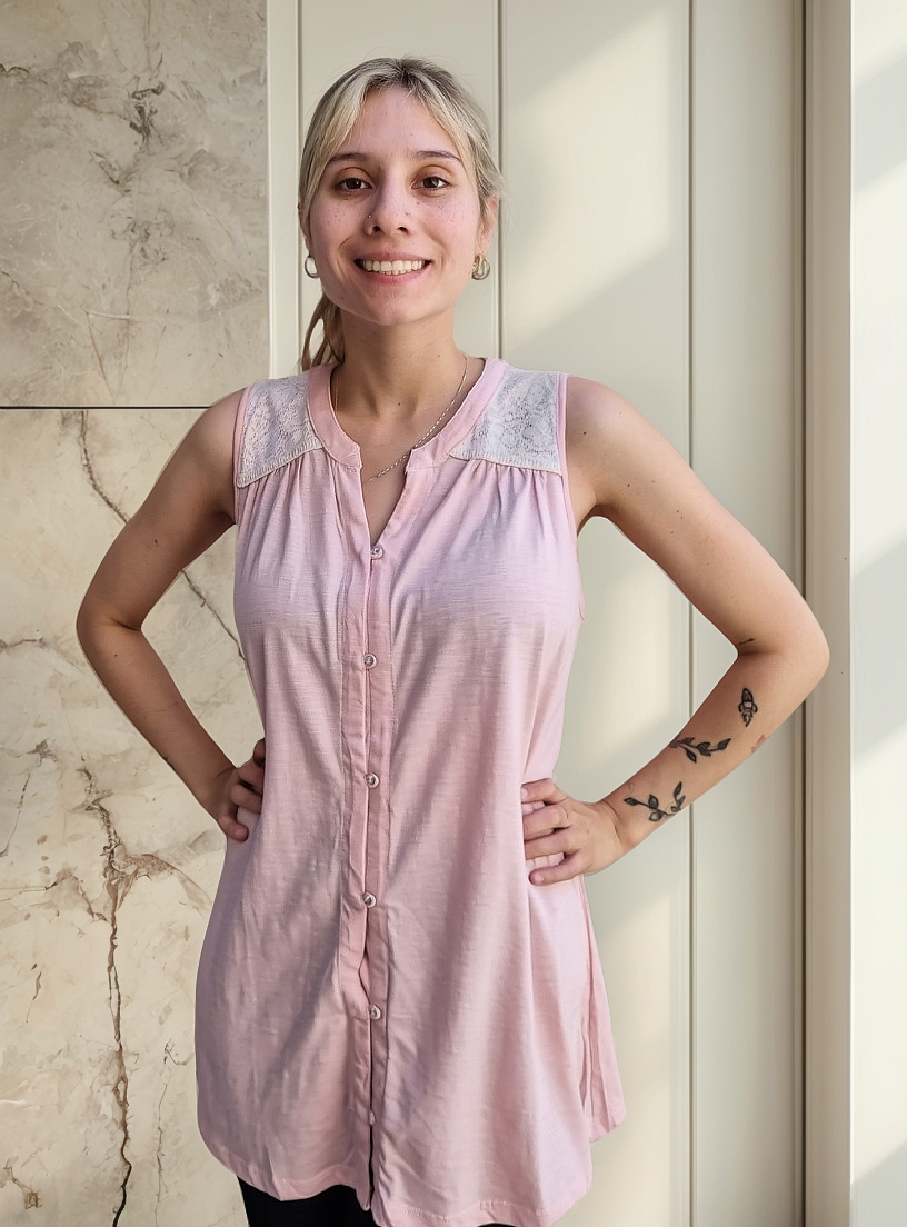 Camisa sin mangas degradé con detalle de puntilla en los hombros.