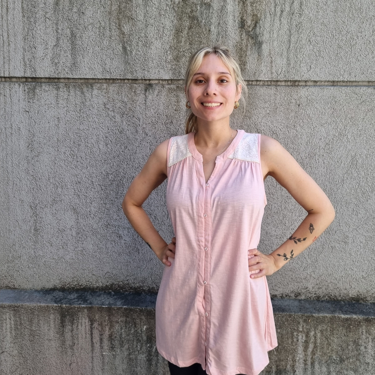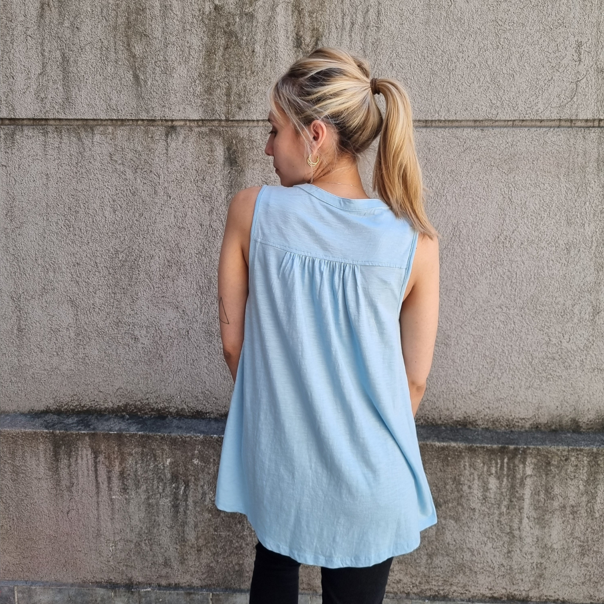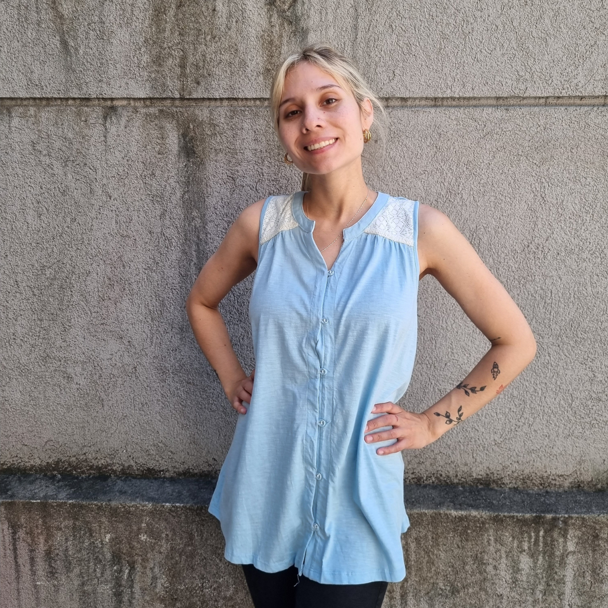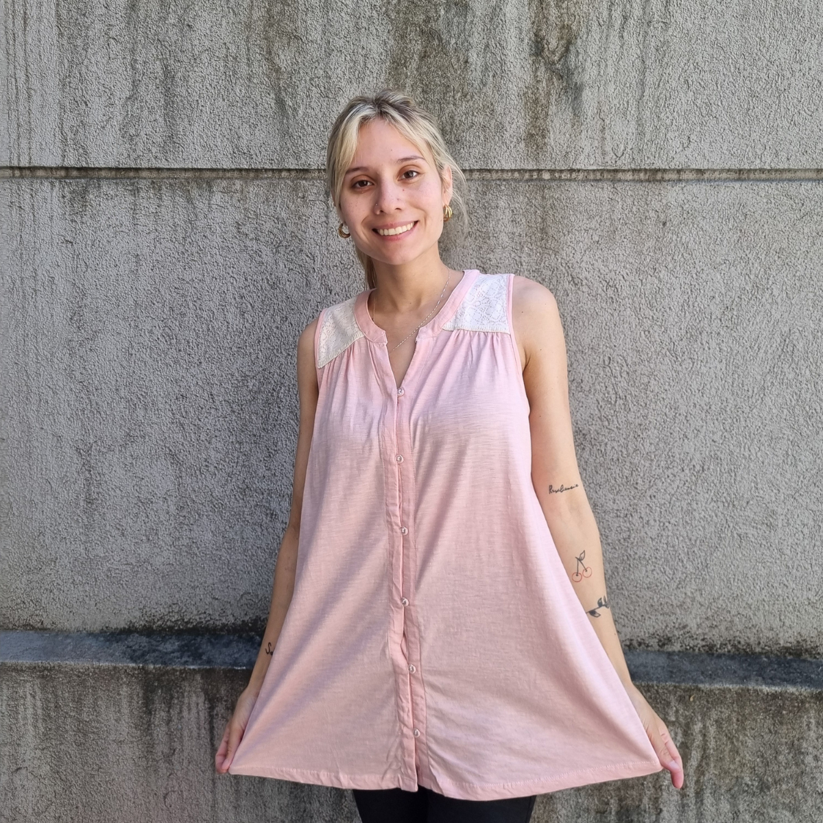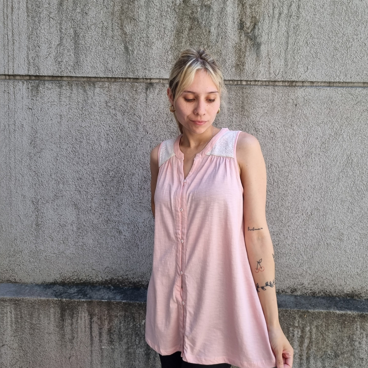Camisa sin mangas degradé con detalle de puntilla en los hombros.