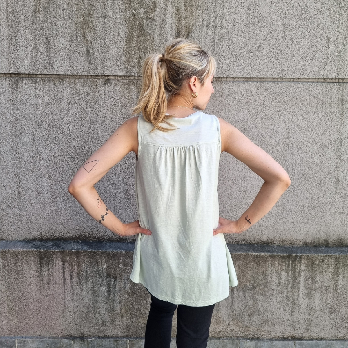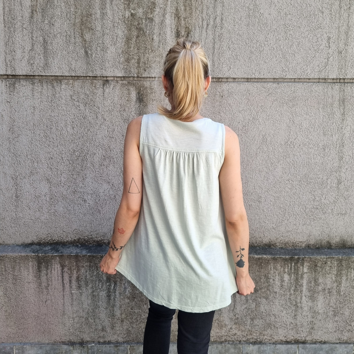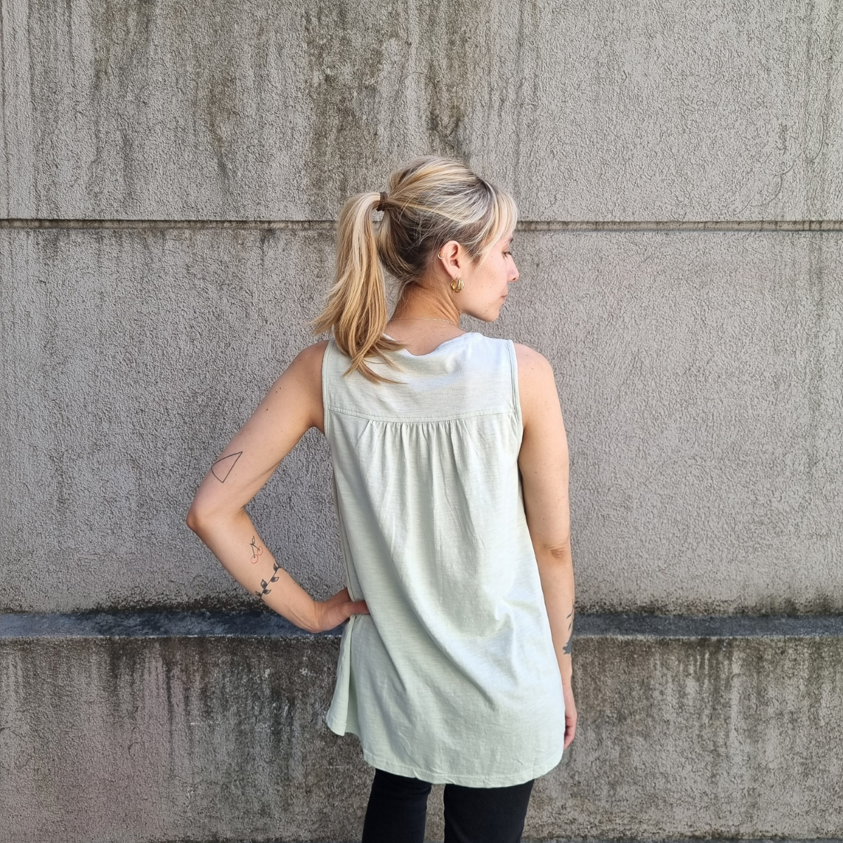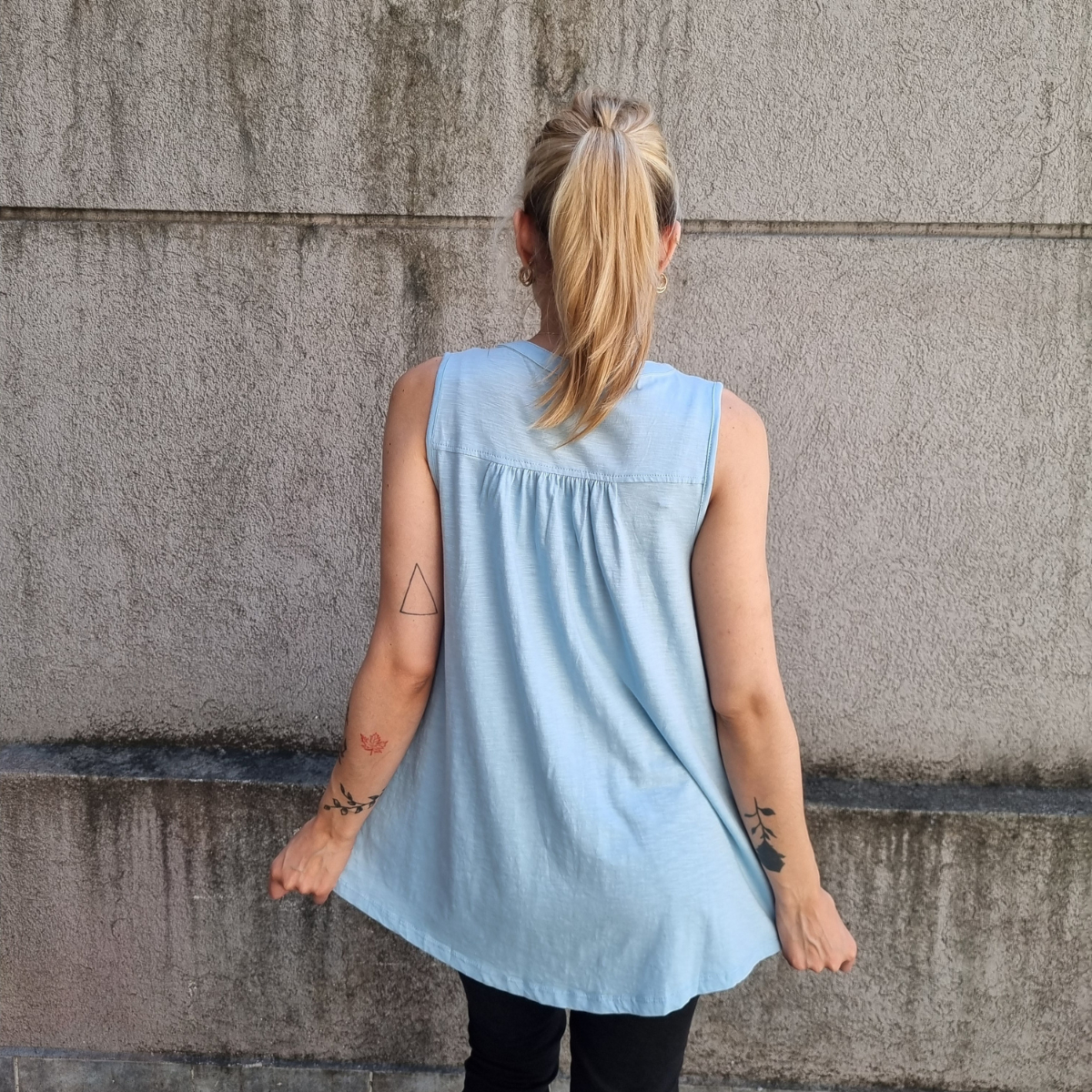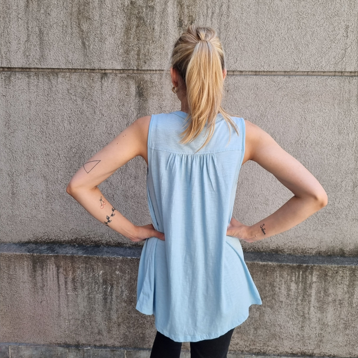 Camisa sin mangas degradé con detalle de puntilla en los hombros.