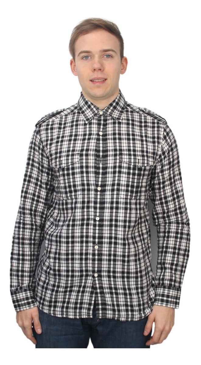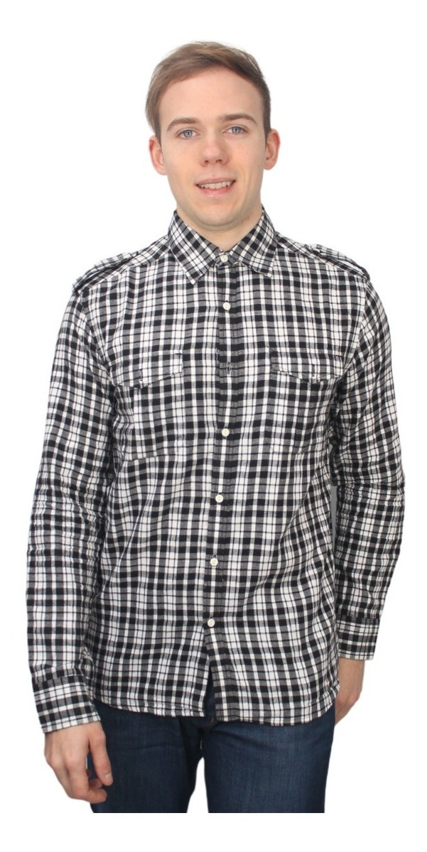 Camisa Kenneth Cole cuadrillé con dos bolsillos importada.