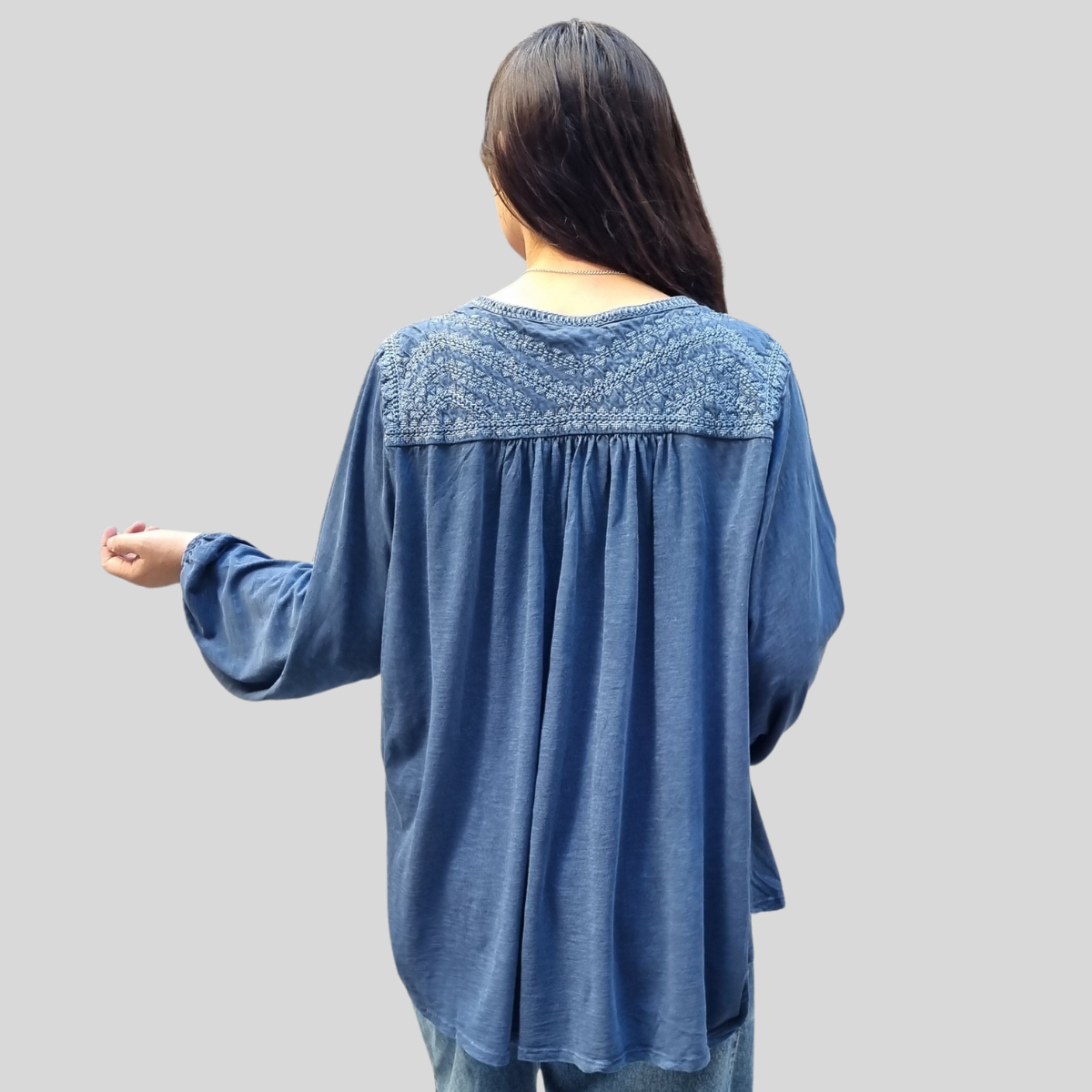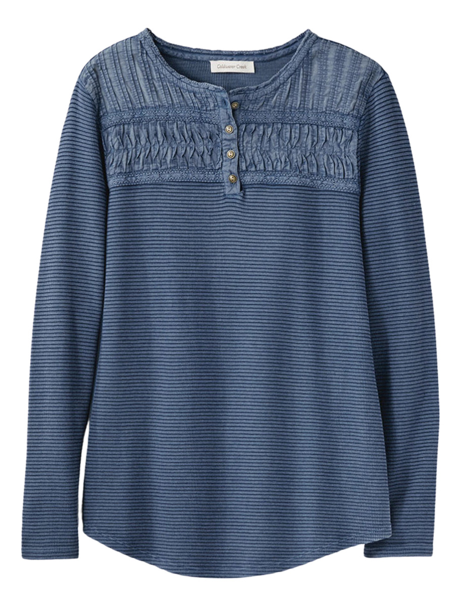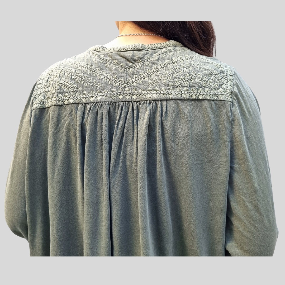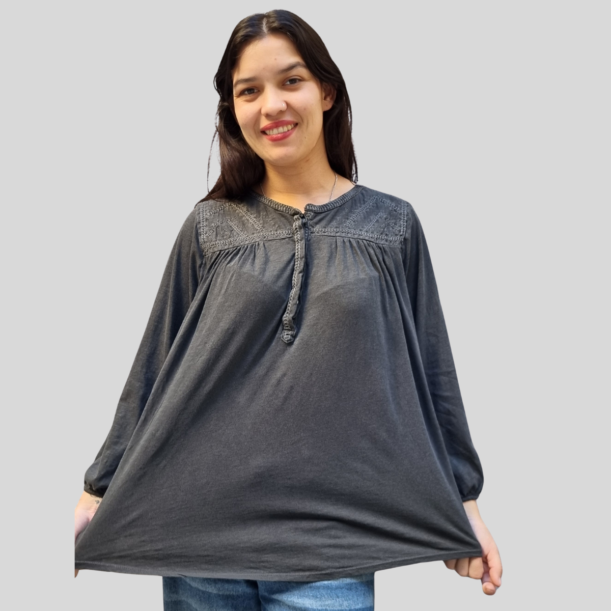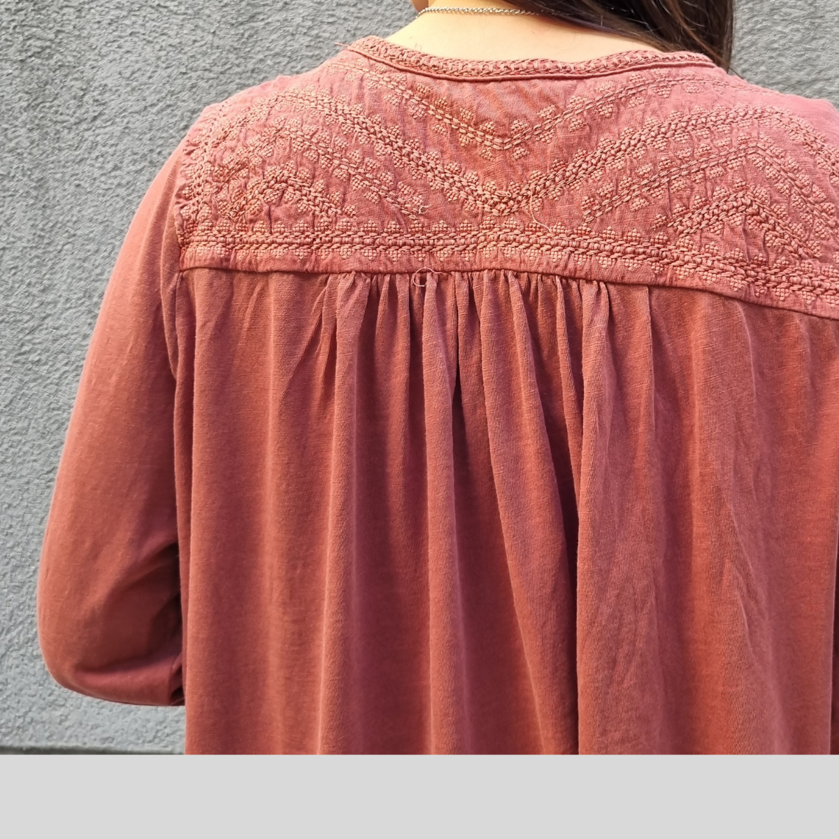 CAMISETA TEXTURADA MANGA LARGA CUELLO BORDADO 4 BOTONES