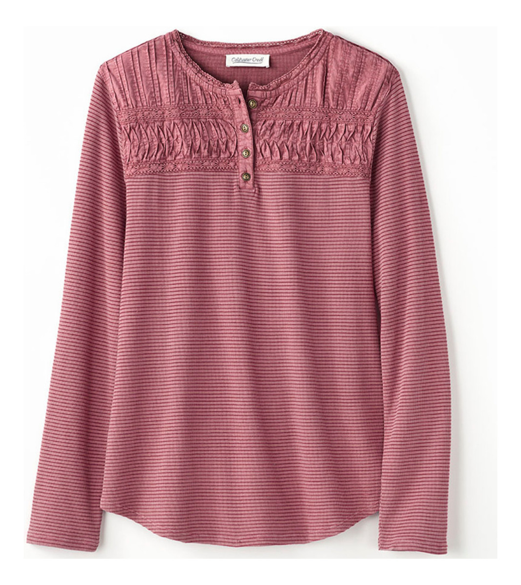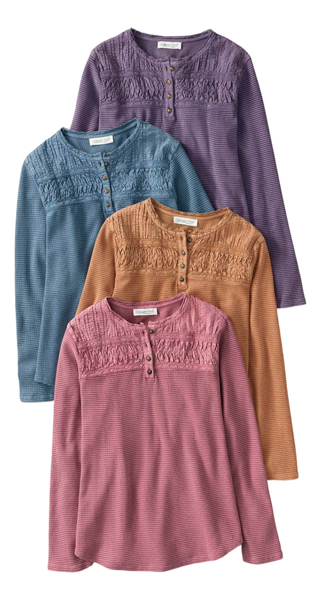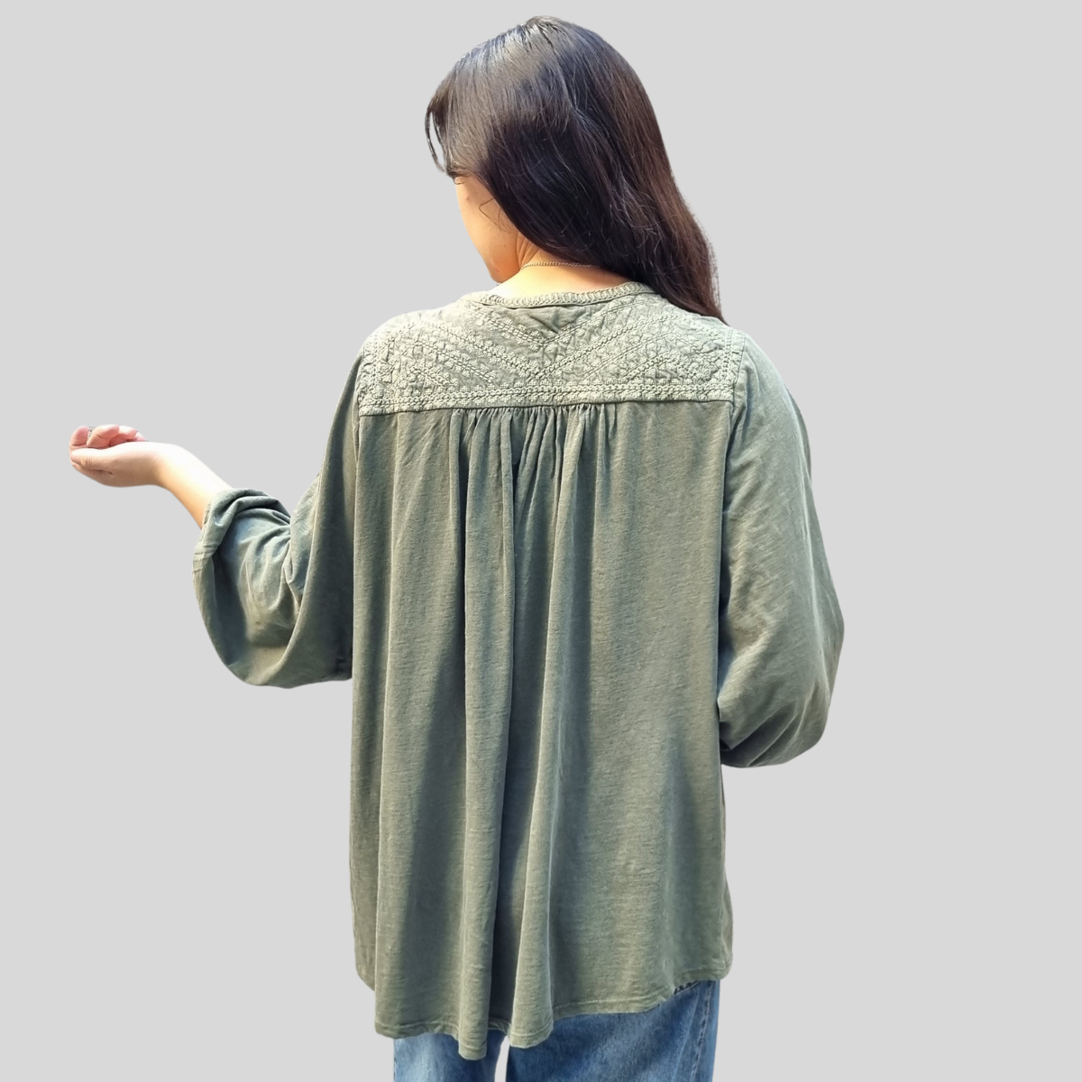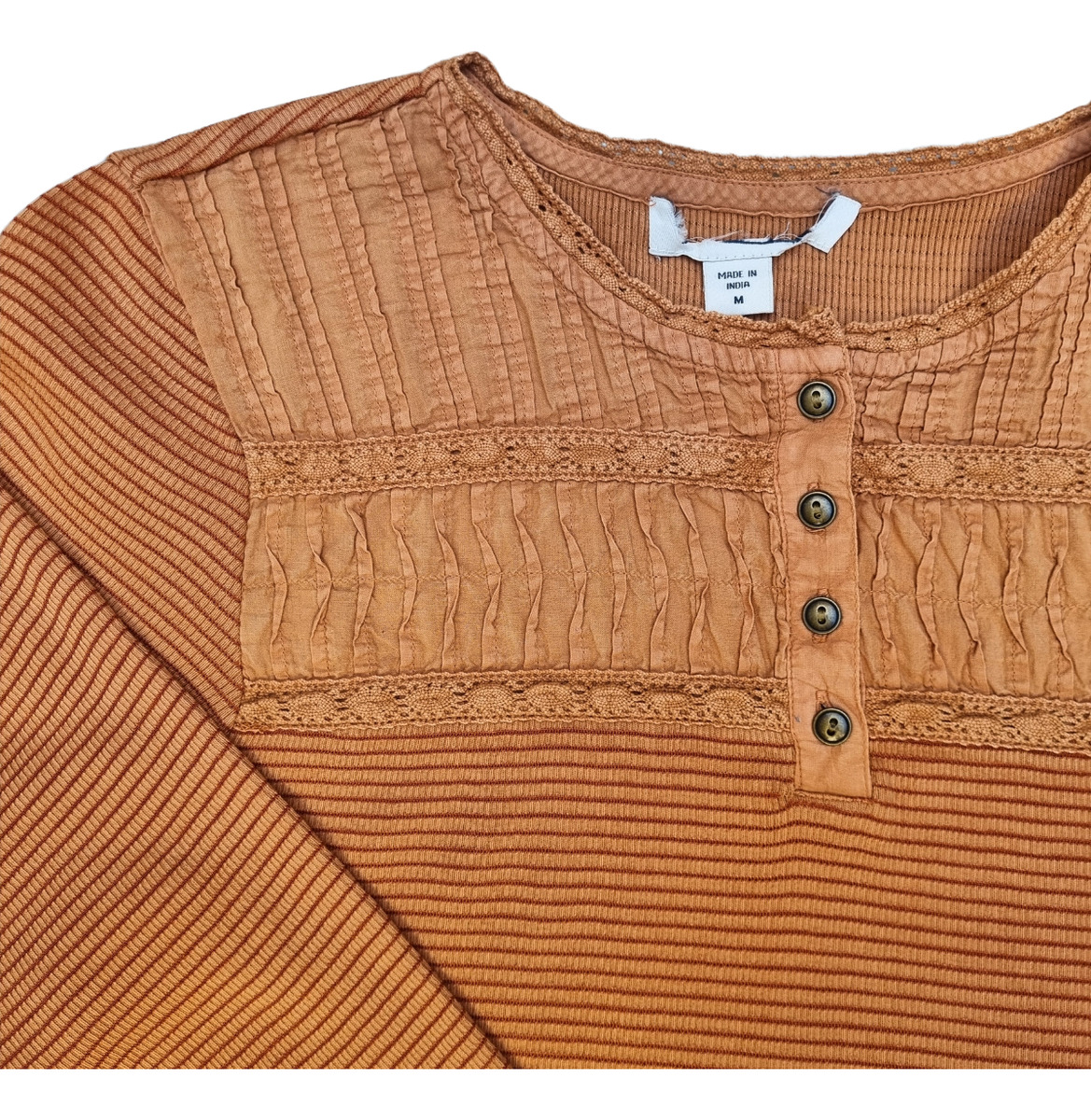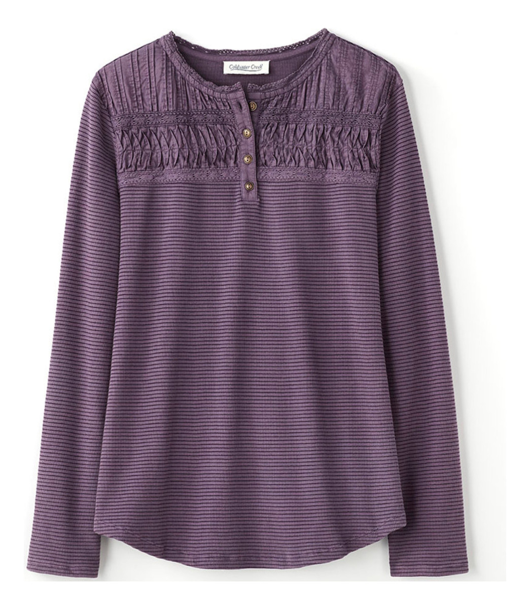 CAMISETA TEXTURADA MANGA LARGA CUELLO BORDADO 4 BOTONES