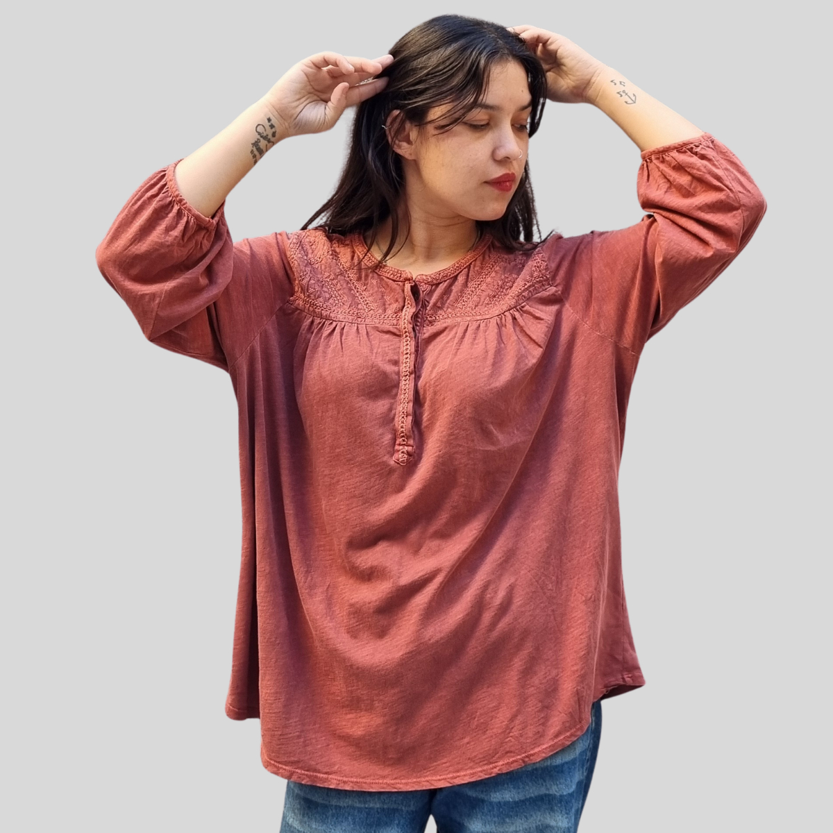 BLUSA PECHERA BORDADA ML