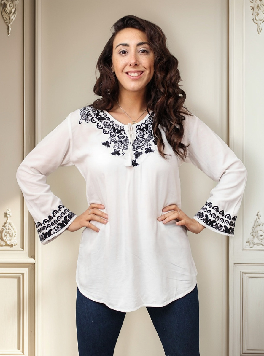 Manteca con bordado en negro.