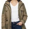 Modelo Verde con parches: tiene cierre y capucha, 4 bolsillos externos con botones.