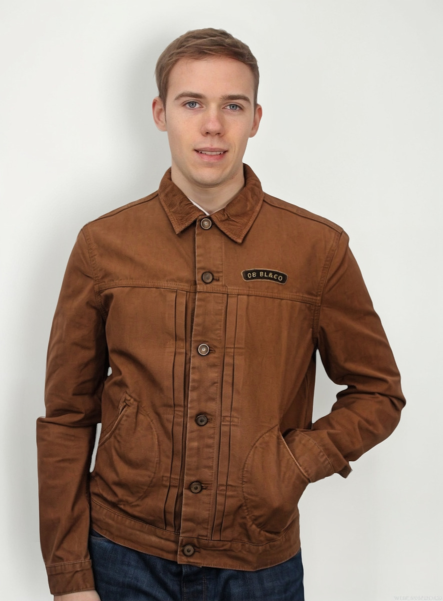 Modelo Marrón: con 6 botones y 2 bolsillos externos, cuello de corderoy.
