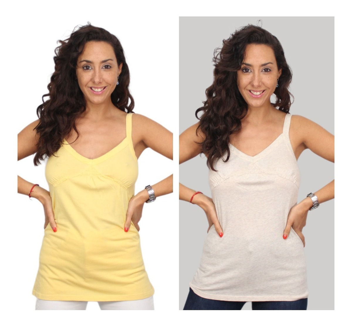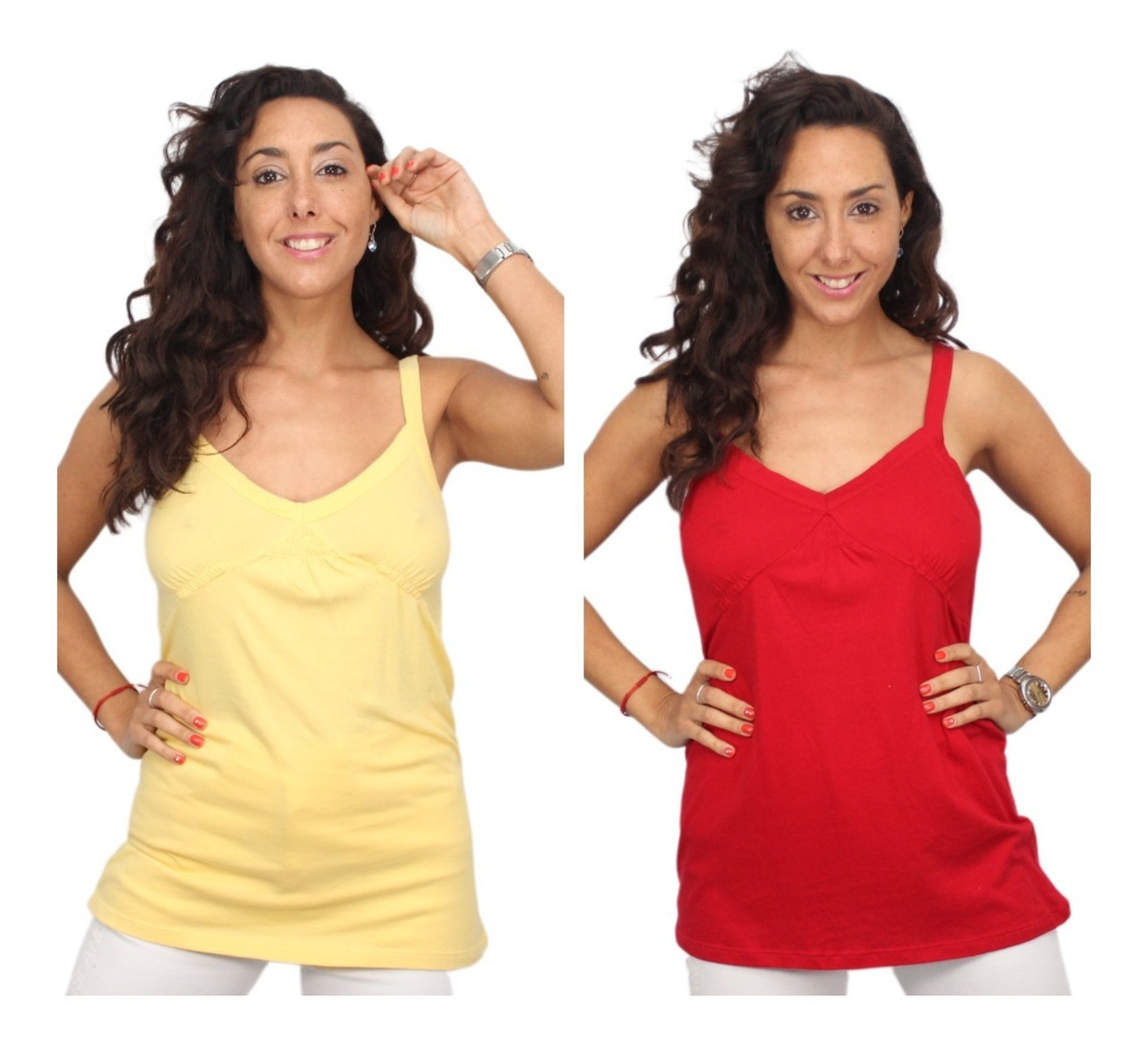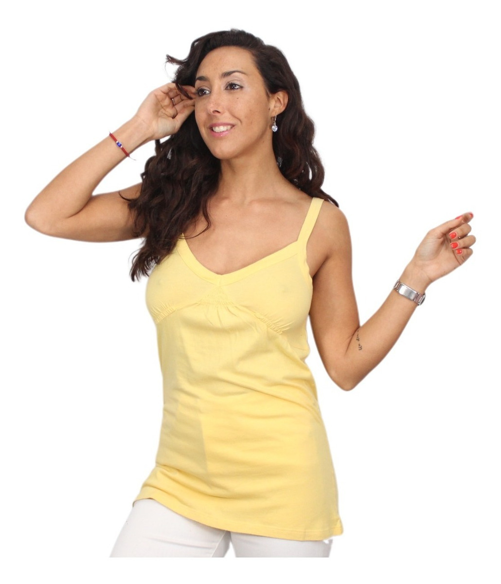 Musculosa lisa básica con detalle fruncido en el pecho.