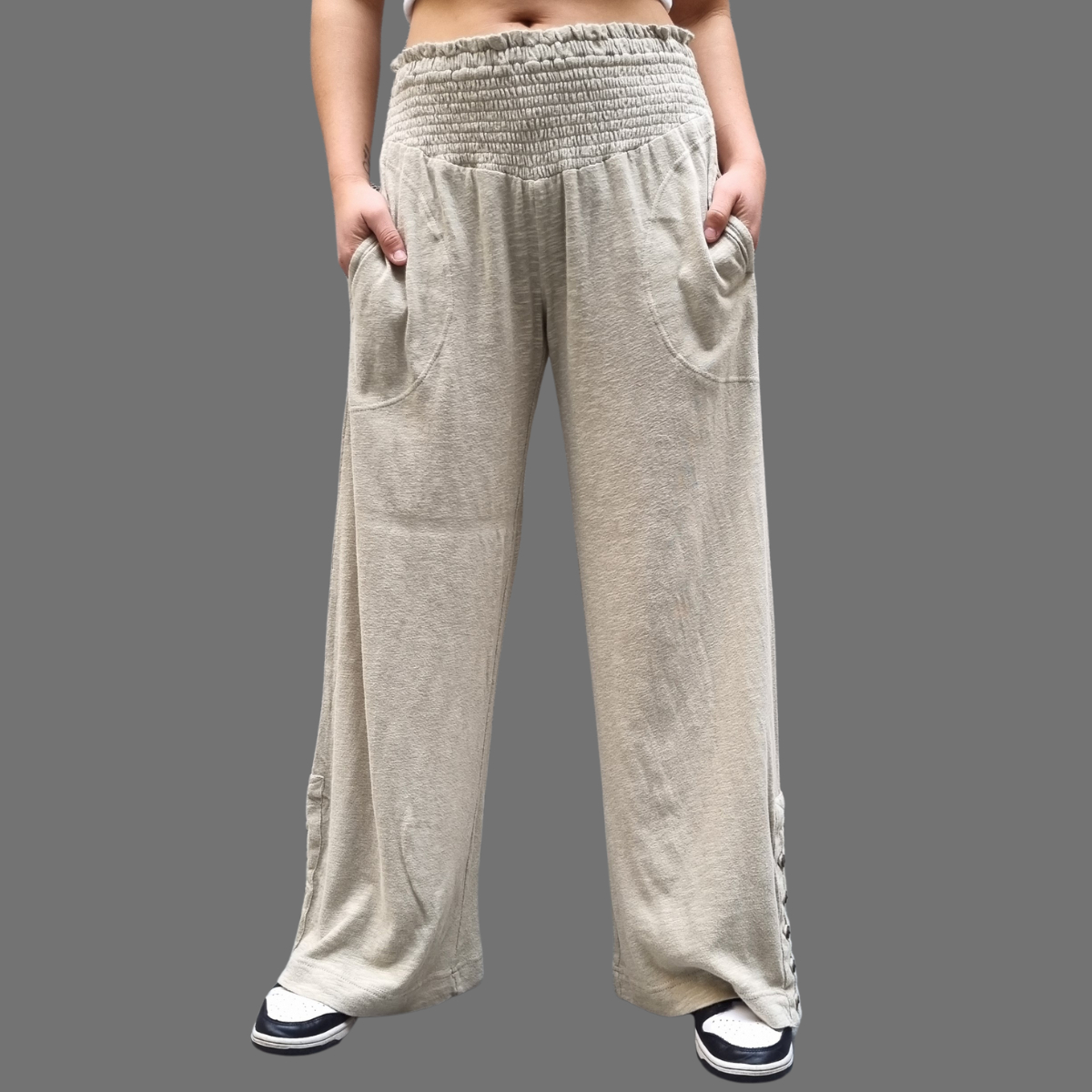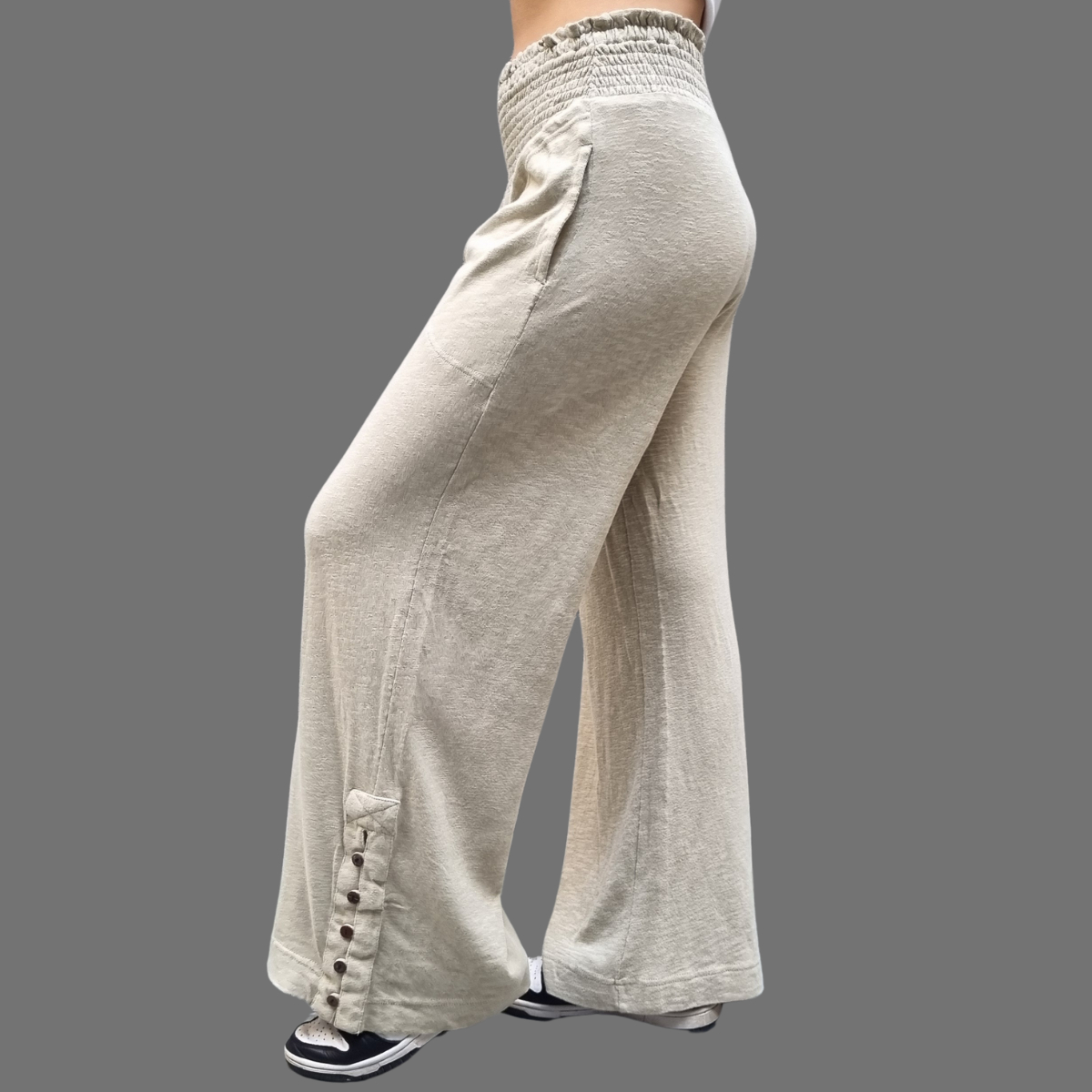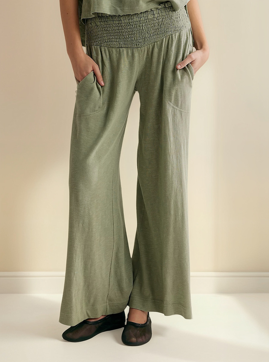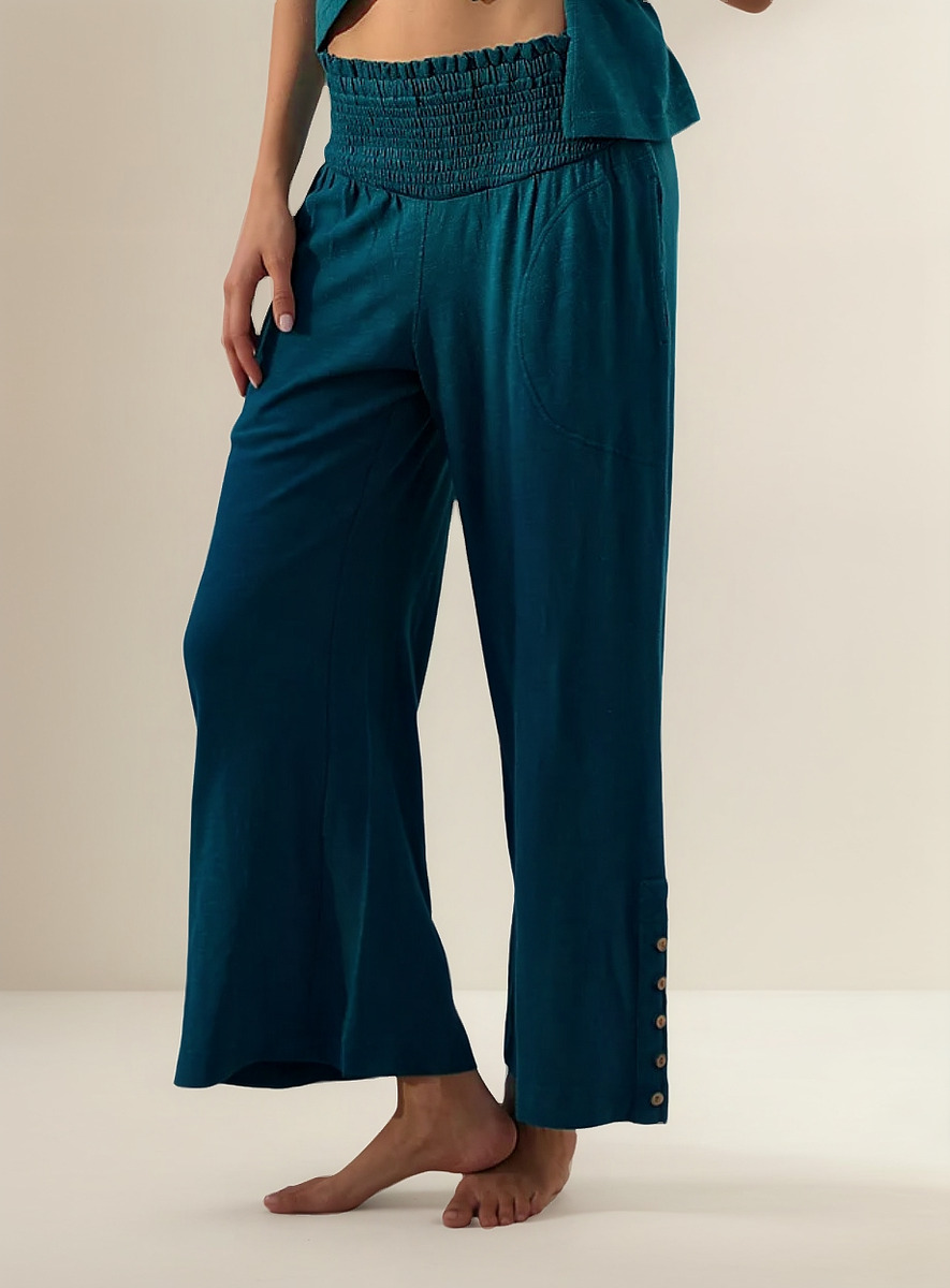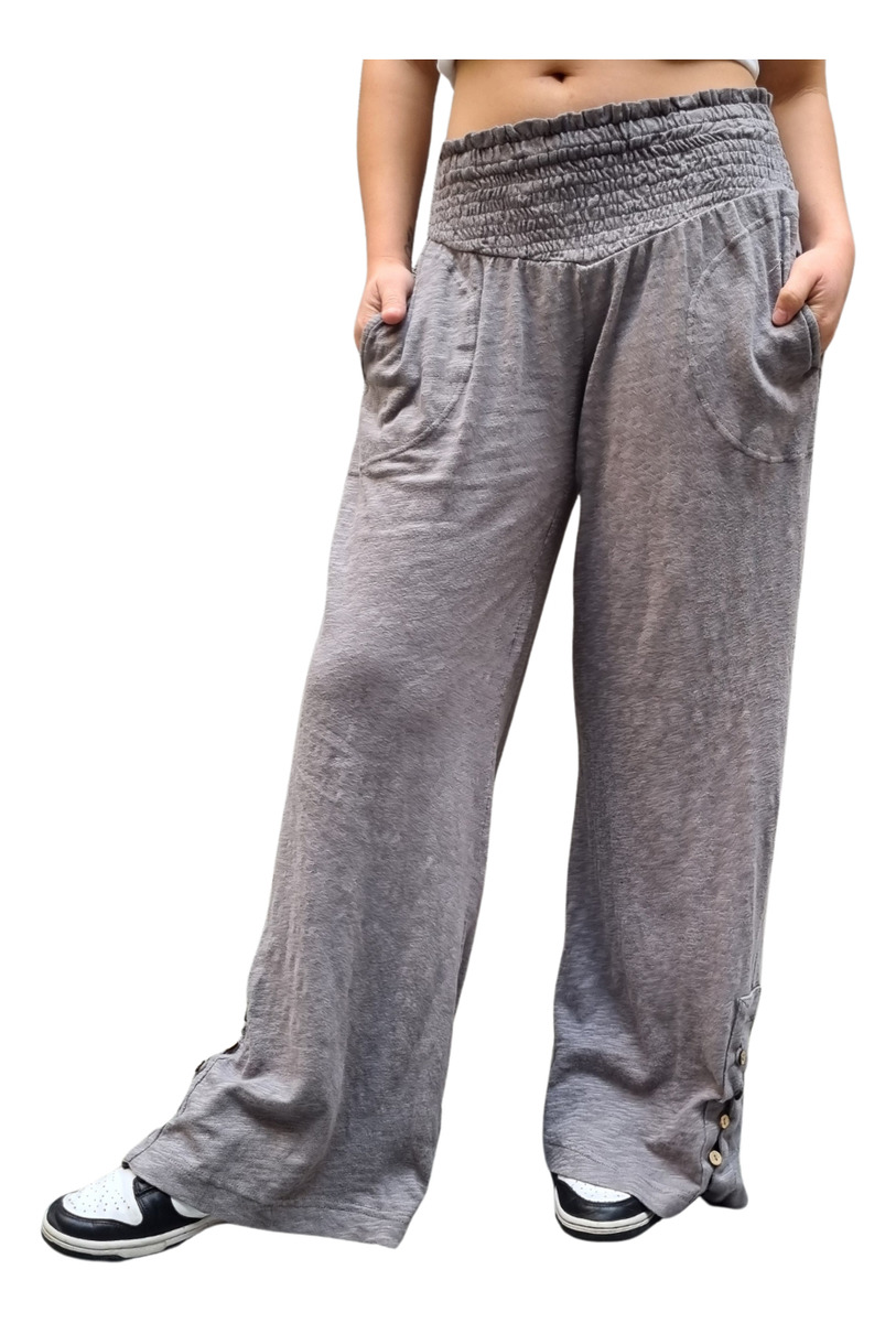 PANTALÓN PALAZZO MANGA ABOTONADA CINTURA ELASTICO