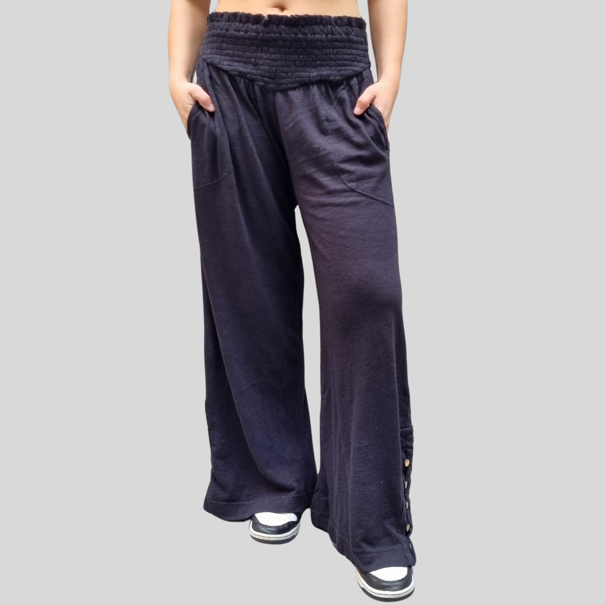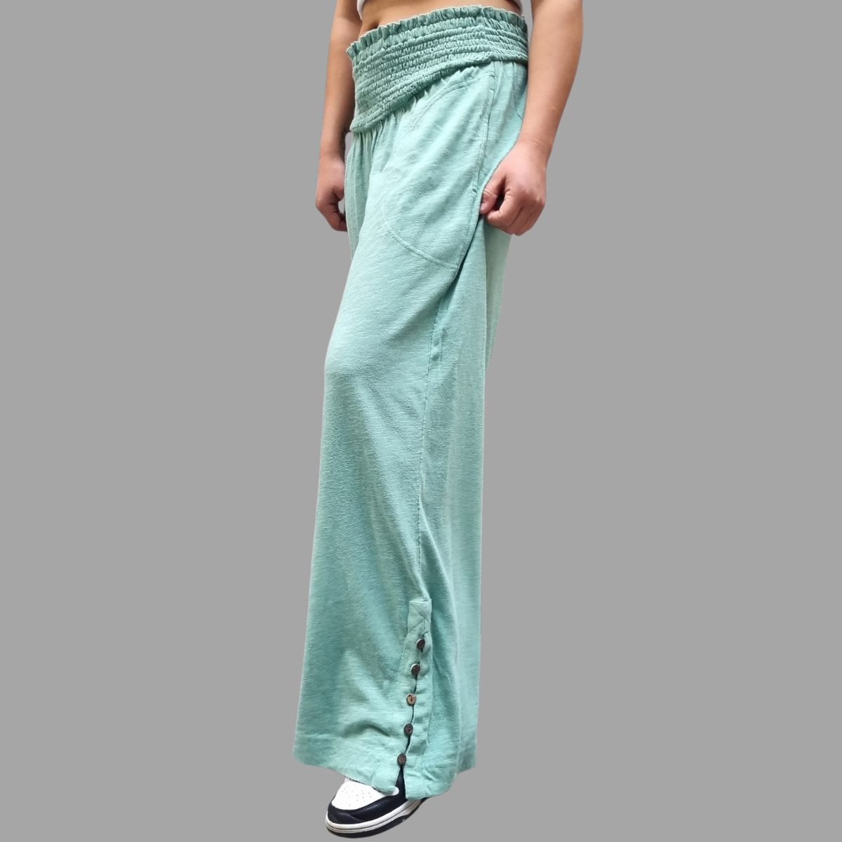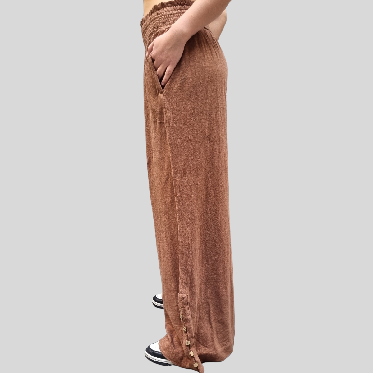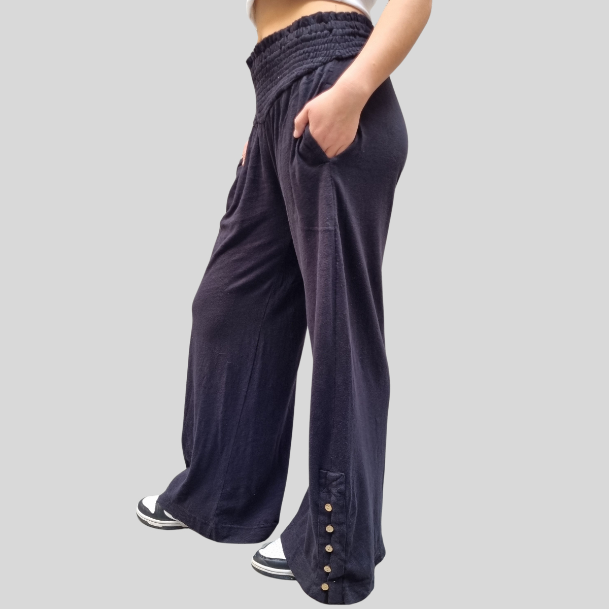 PANTALÓN PALAZZO MANGA ABOTONADA CINTURA ELASTICO