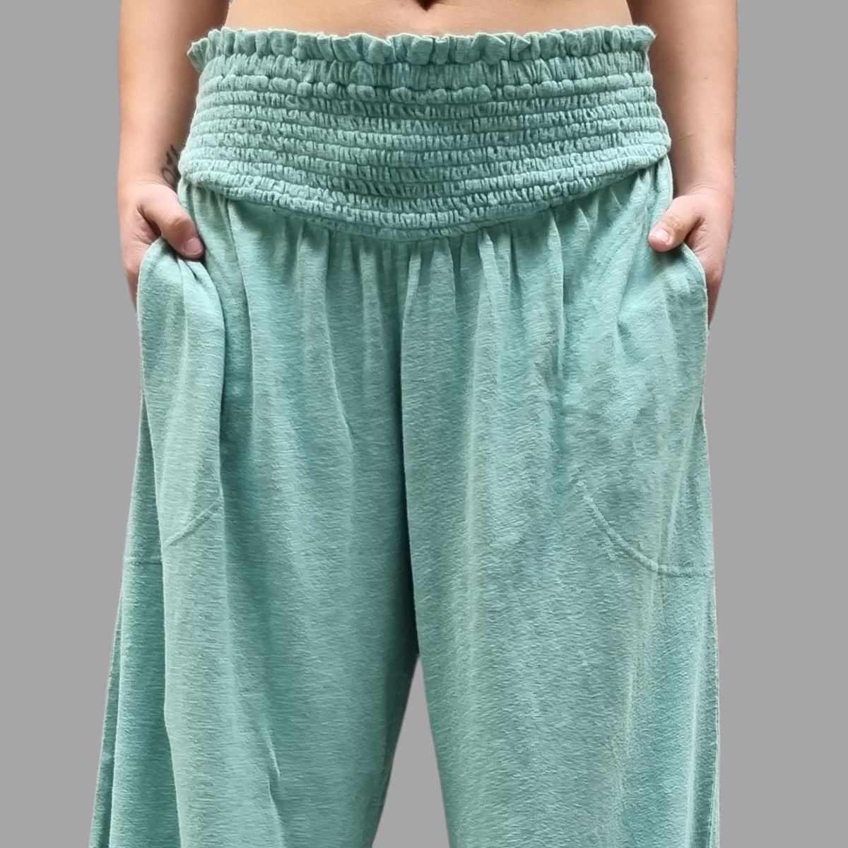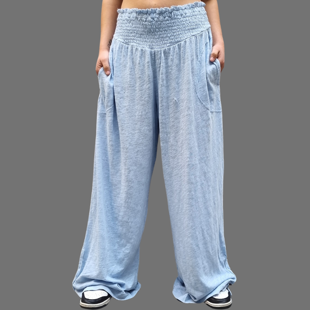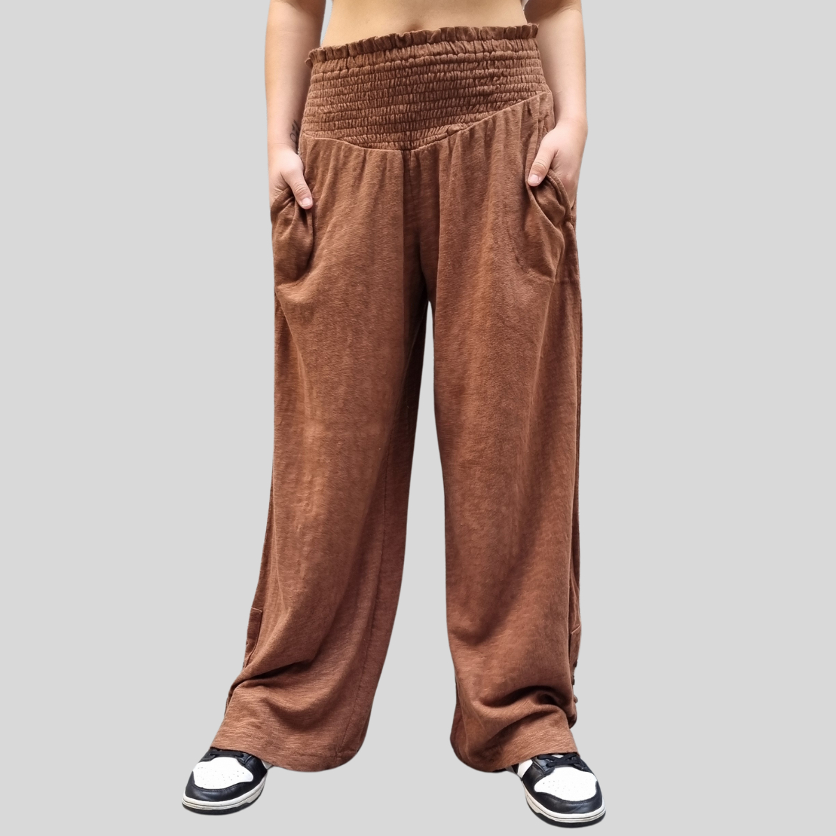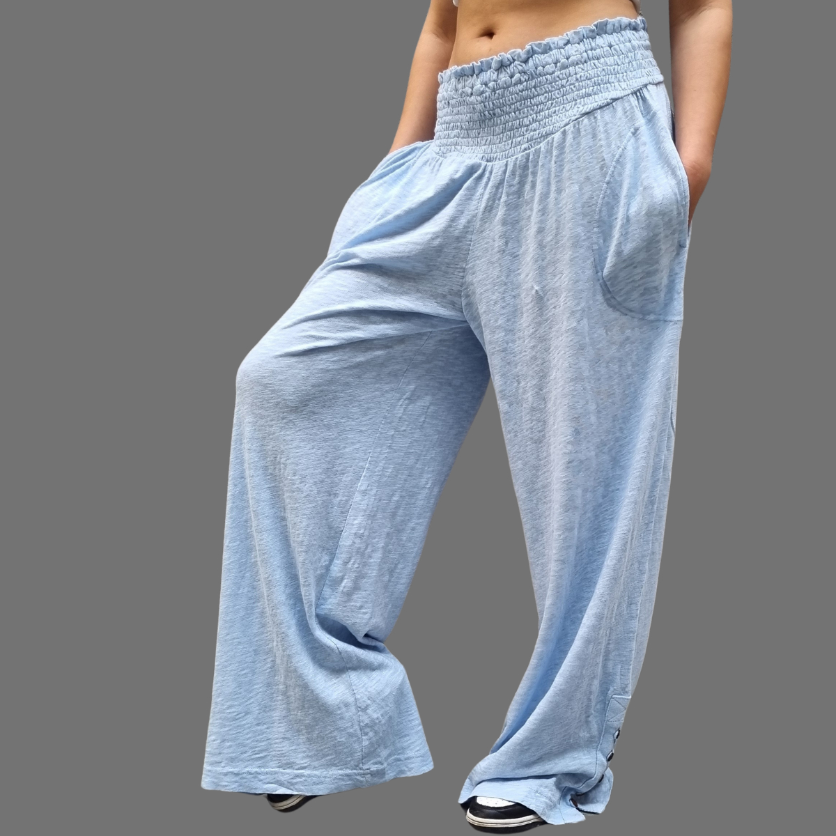 PANTALÓN PALAZZO MANGA ABOTONADA CINTURA ELASTICO