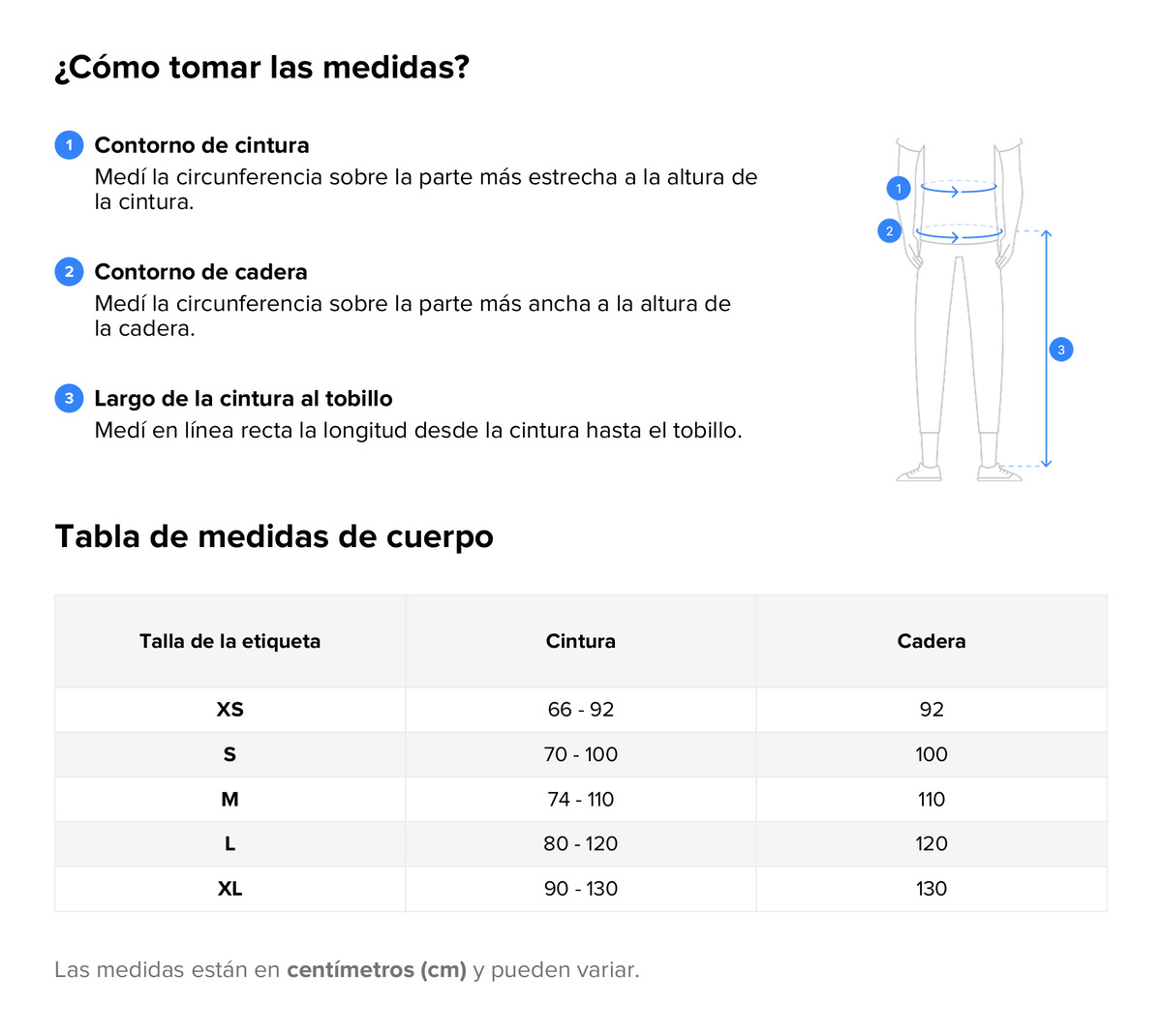 CINTURA estirado/sin estirar – LARGO