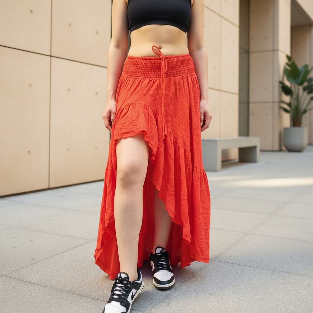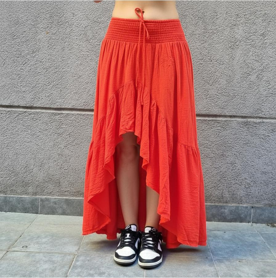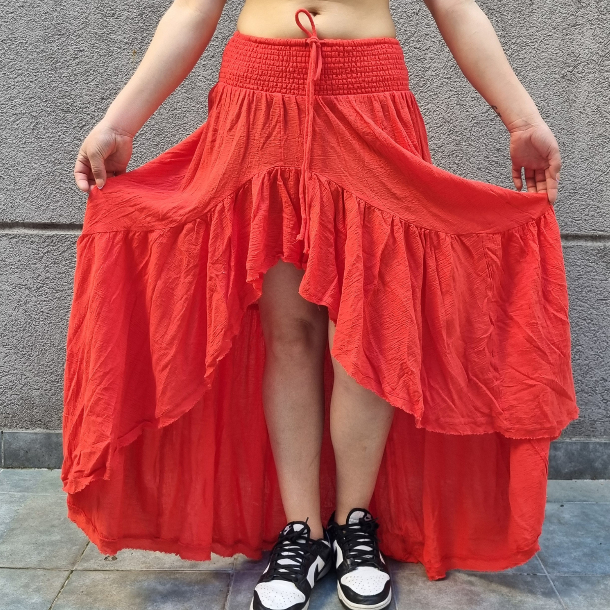POLLERA MAXI LARGO VOLADOS VINATGE CINTURA ELASTIZADO CON CORDON
