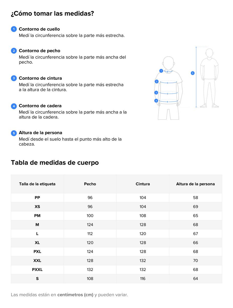 Contorno de busto / contorno cadera / largo.