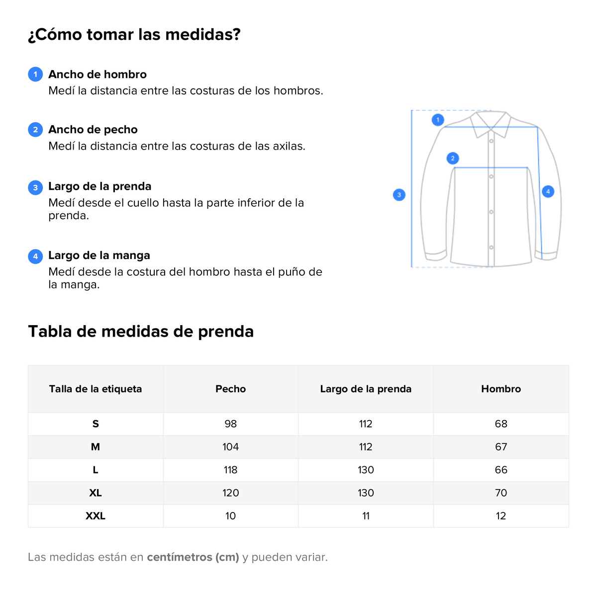 | Talle | L, M, S, XL, XXL |