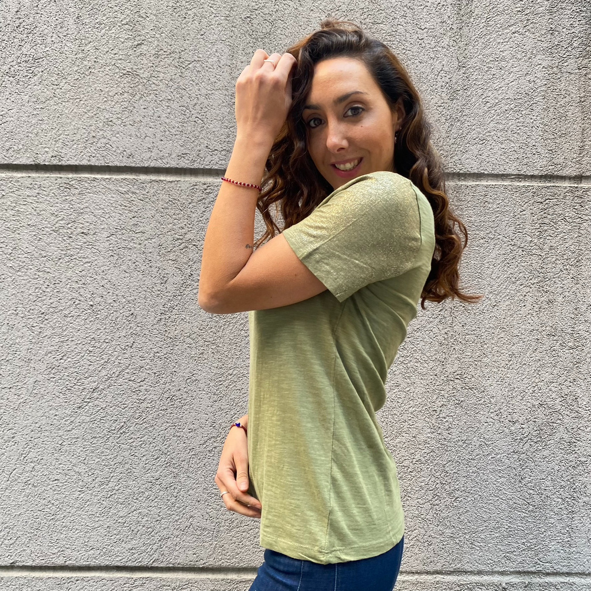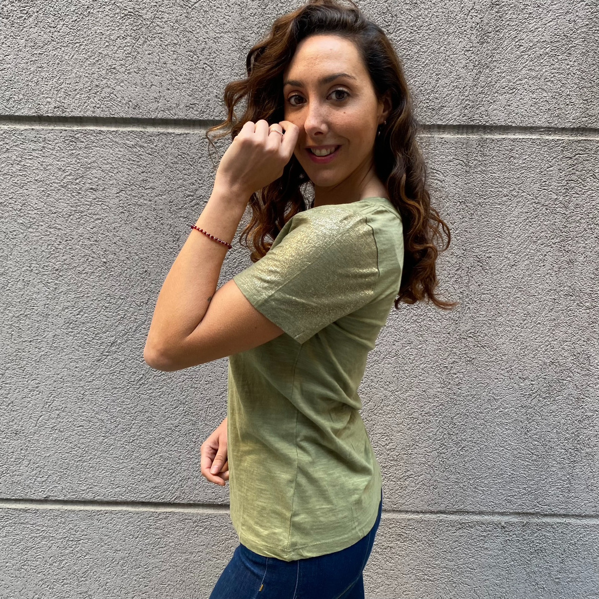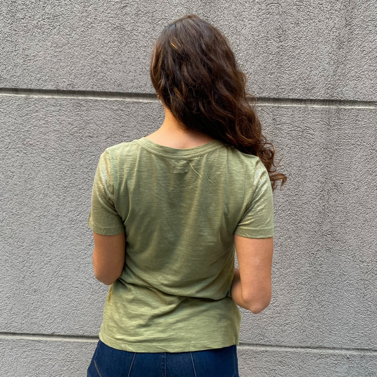 3) Blusa Truecraft Basica Brillitos en Manga Verde