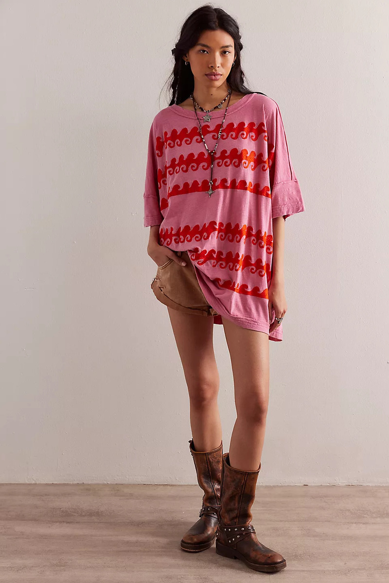 REMERA OVERSIZED MANGA CORTA BORDADO OLAS