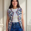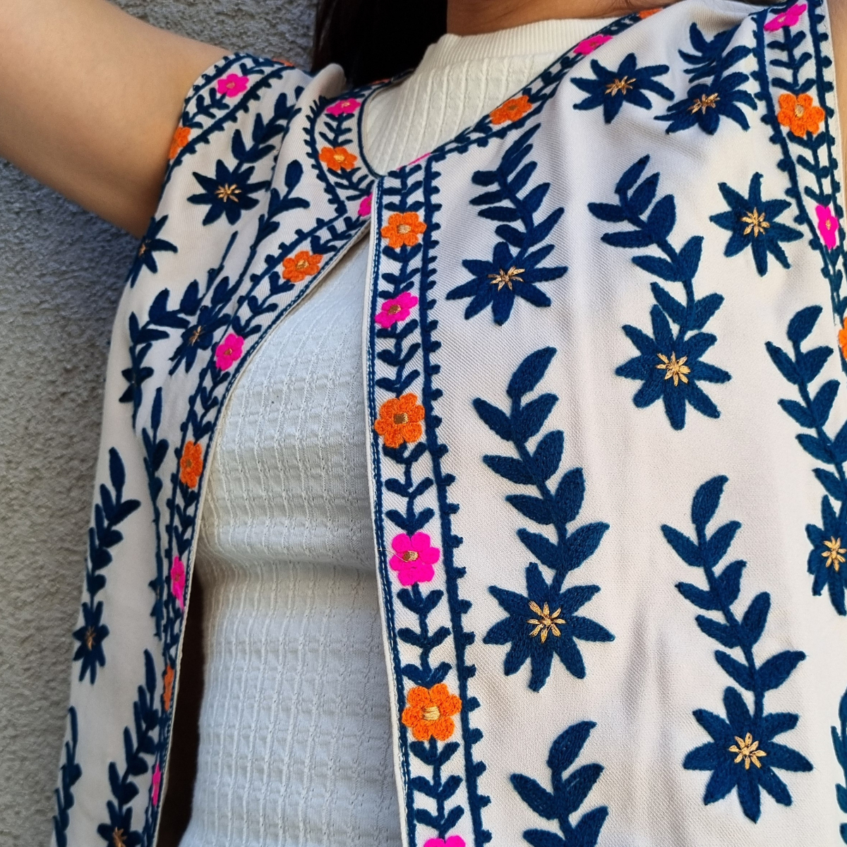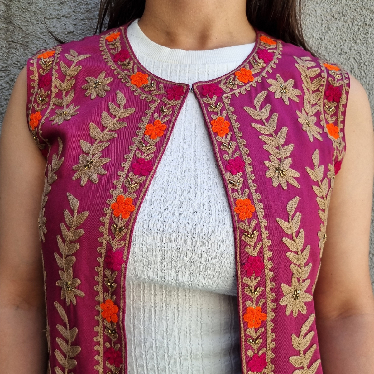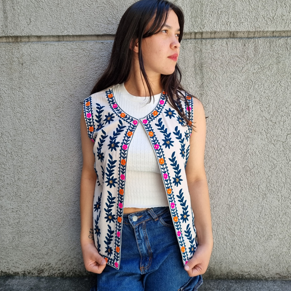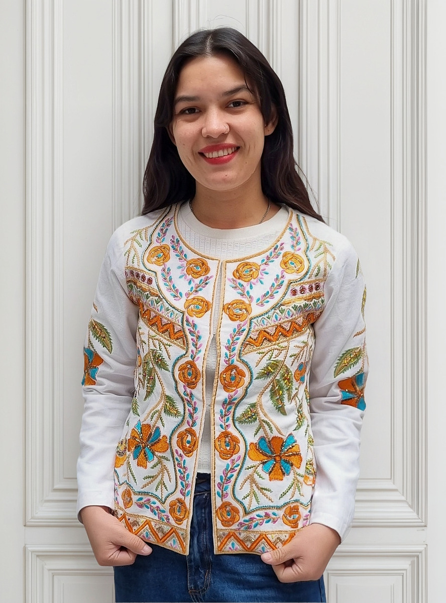 Chaqueta hindú bordada con canutillos y broches, abotonada y forrada.