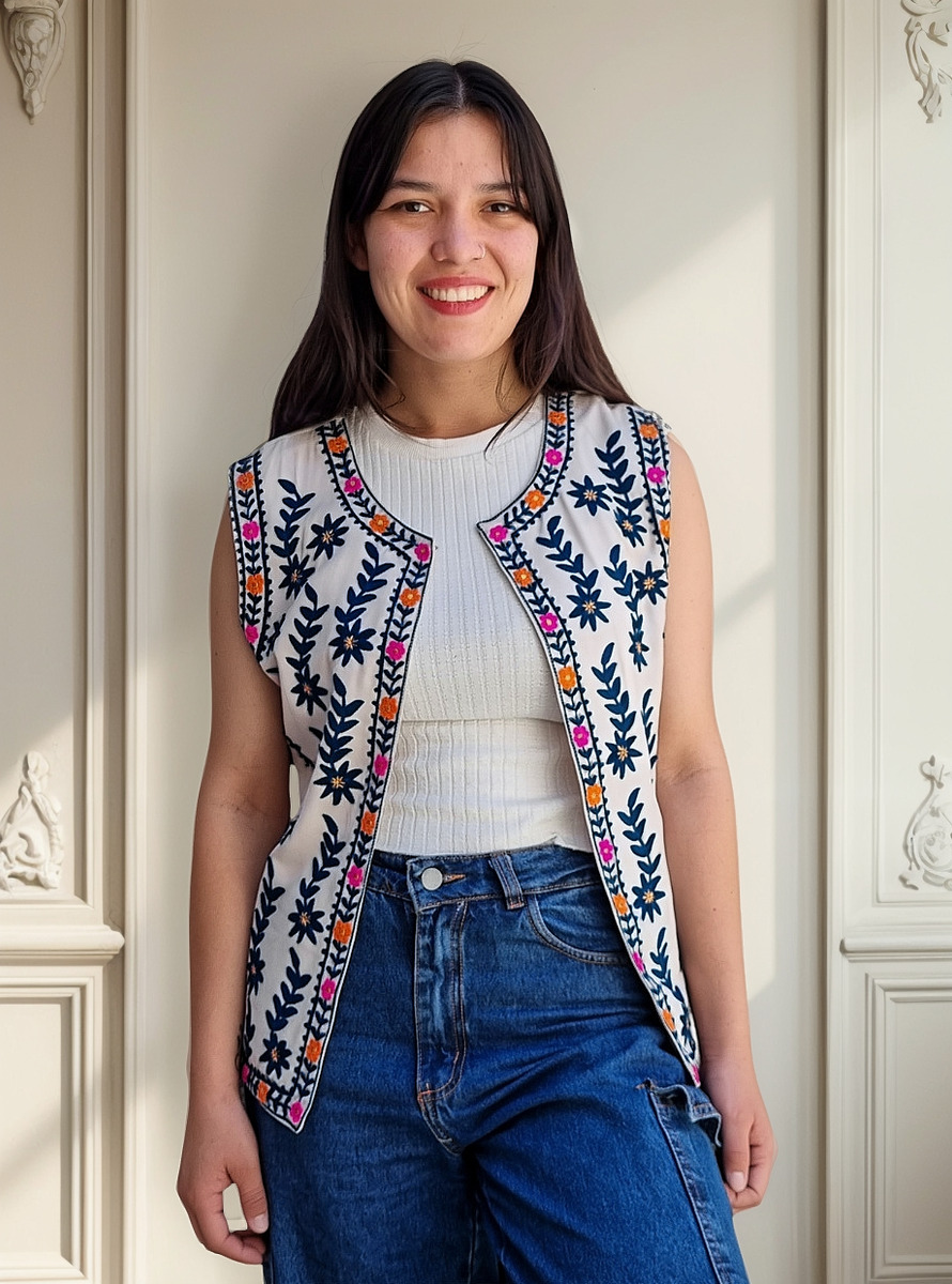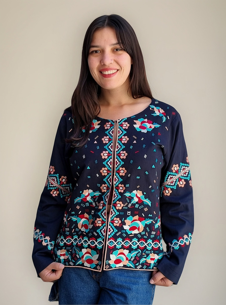 SACO CHAQUETAS BORDADO ROMBOS %100 ALGODÓN
