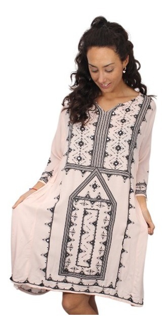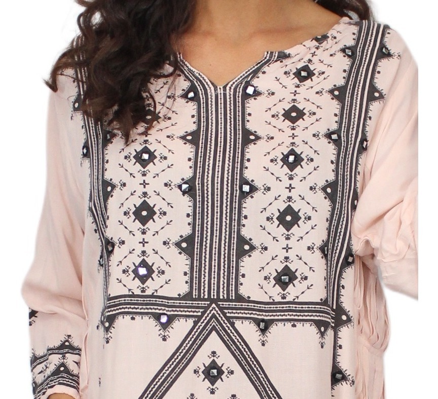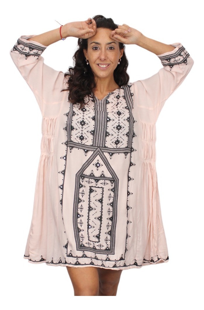 Túnica vestido print con espejitos bordados.