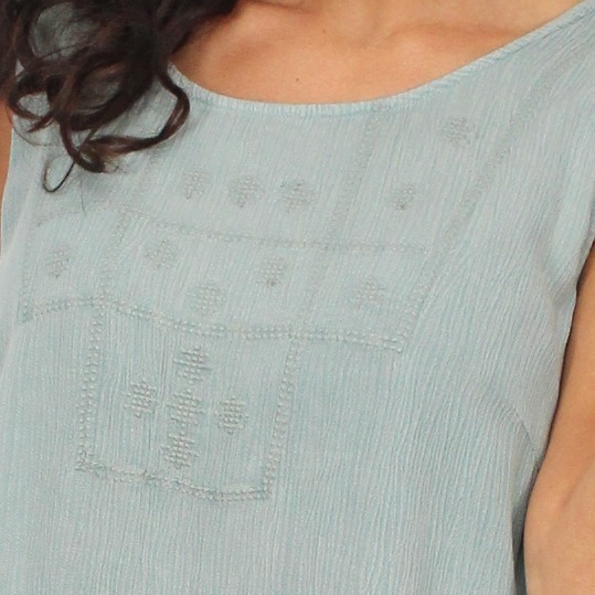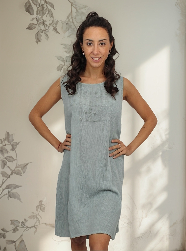 Vestido de bambula con bordado en el pecho.