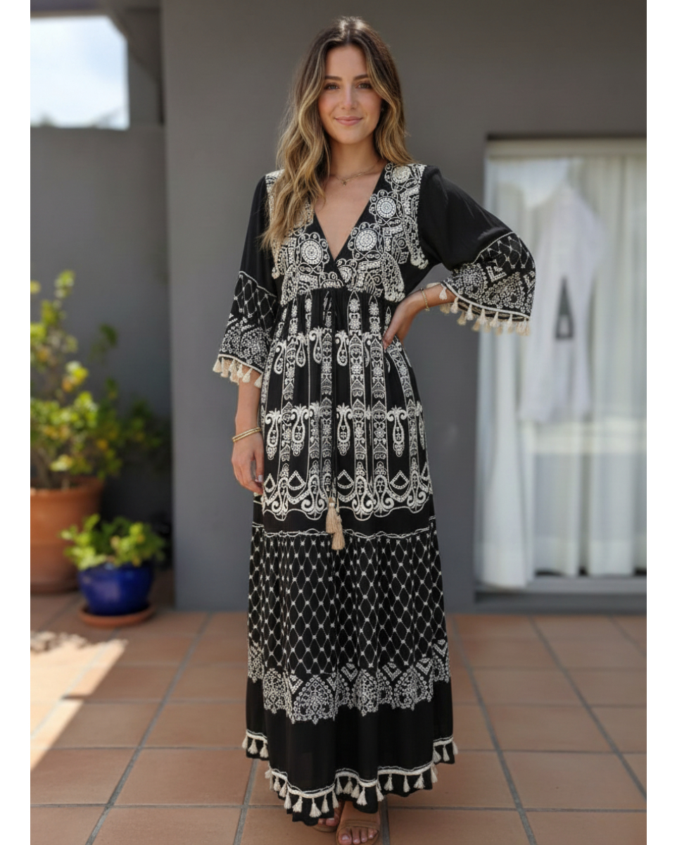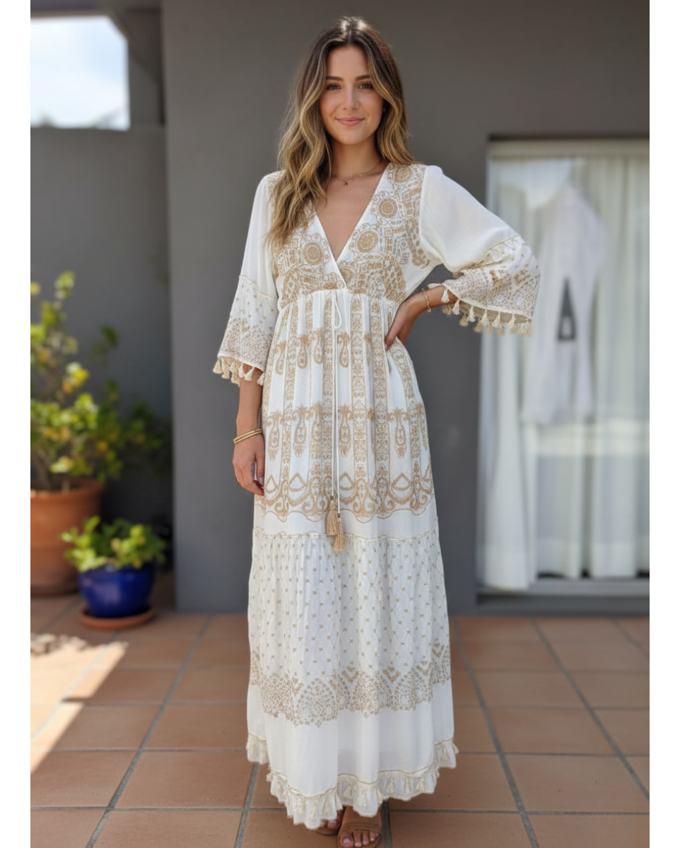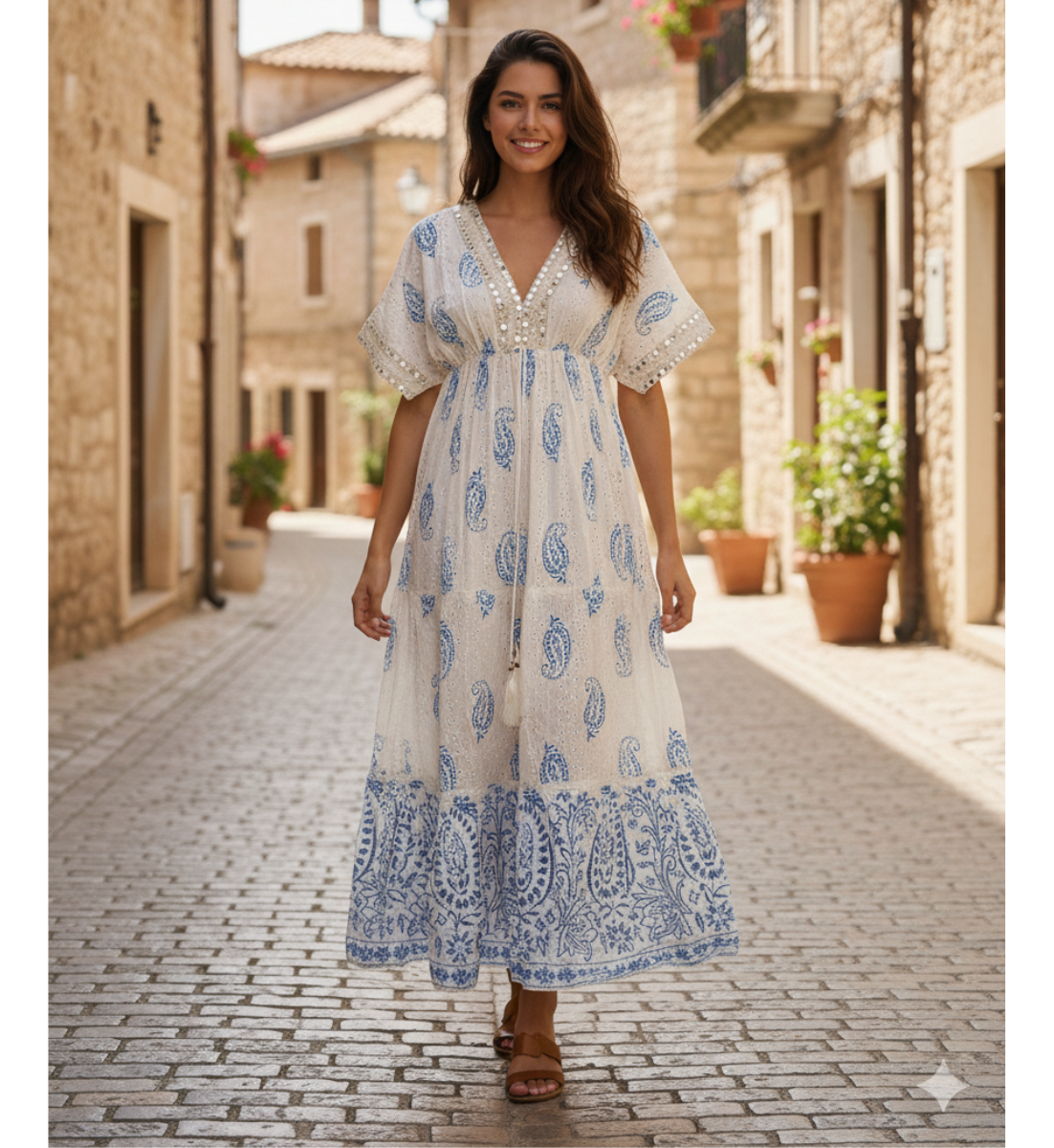 VESTIDO LARGO BORDADO BRODERIE MANGA CORTA