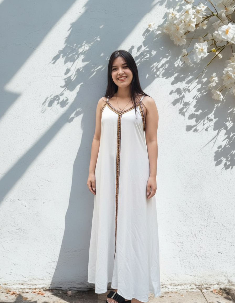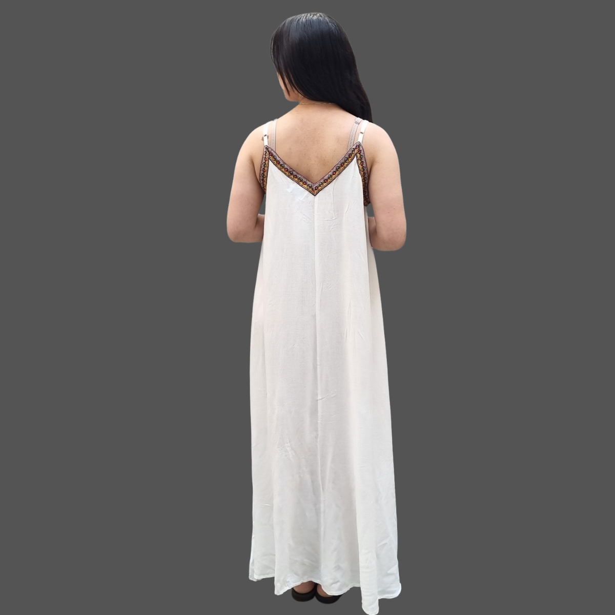 VESTIDO LARGO BORDADO CON TIRITAS REGULABLES