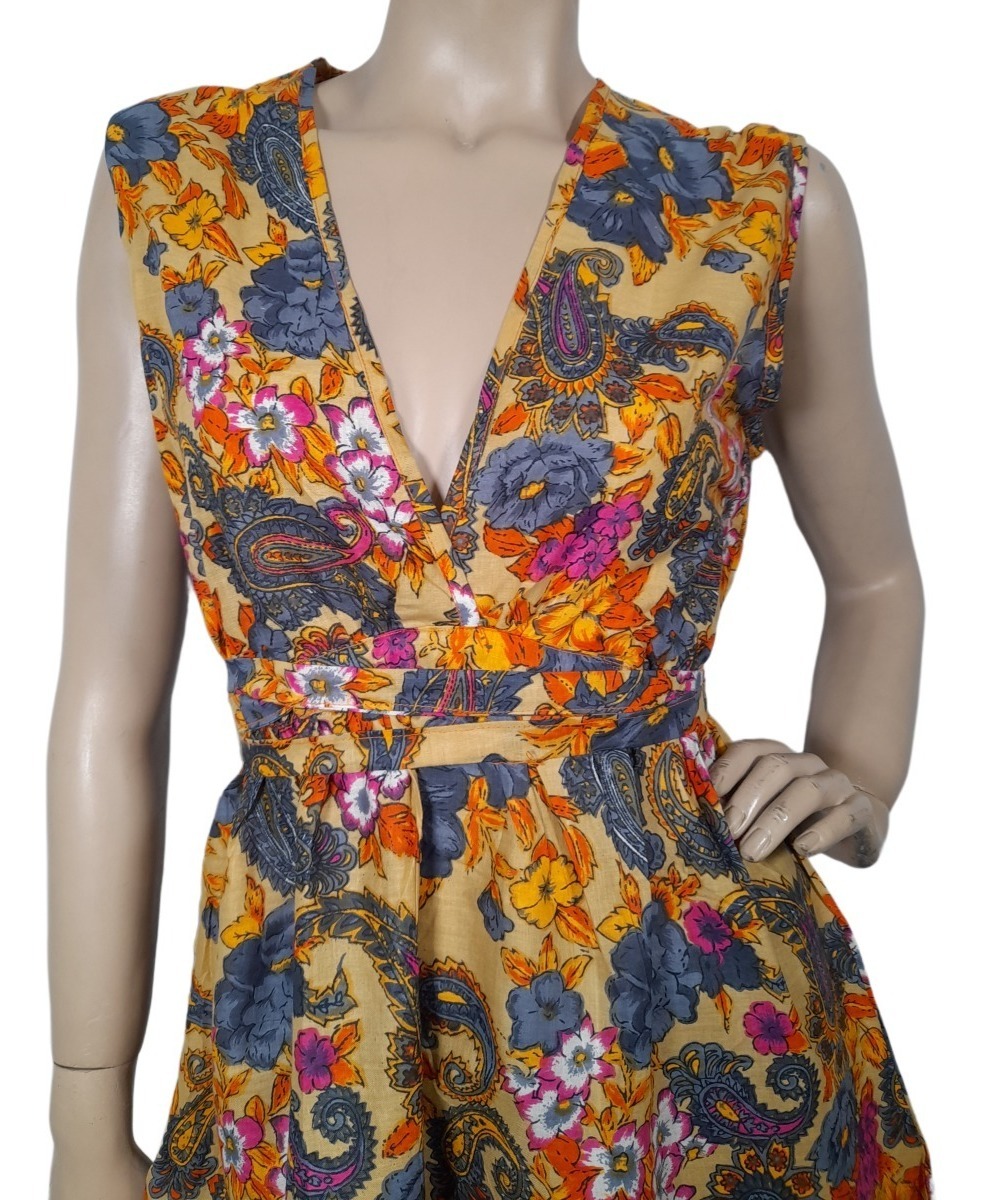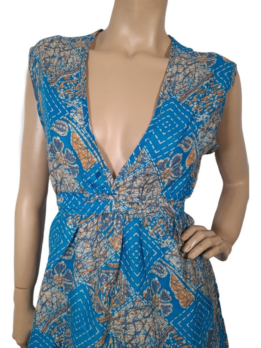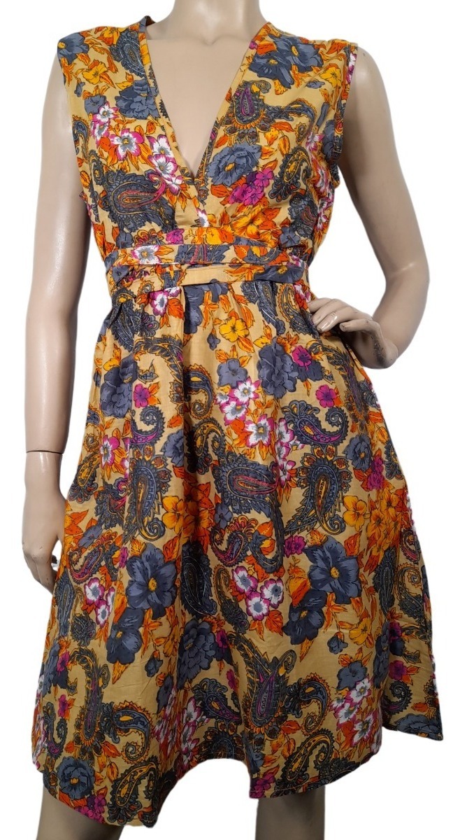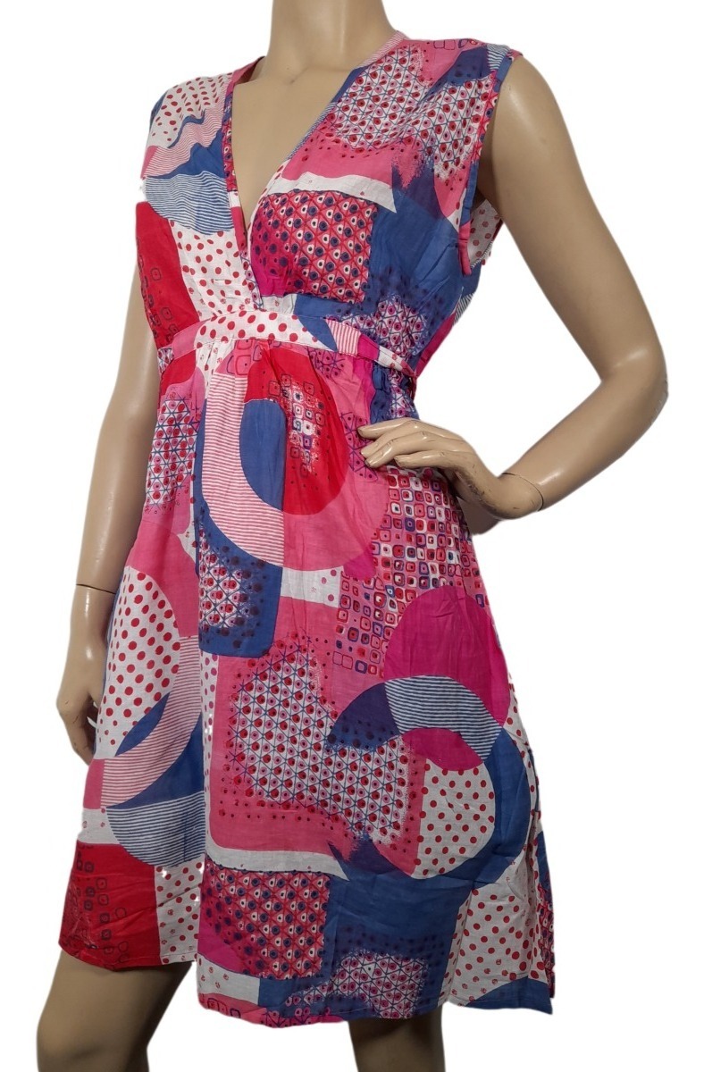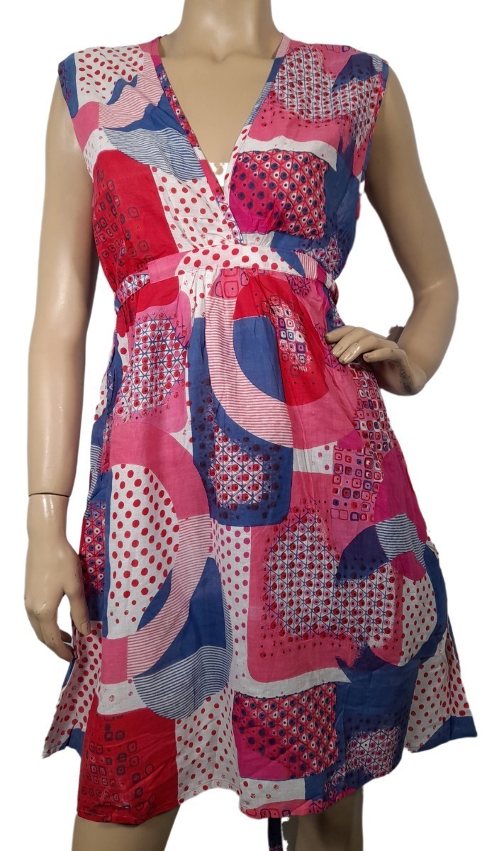 Vestido estampado con cintura fruncida y lazos para ajustar.